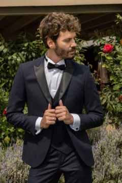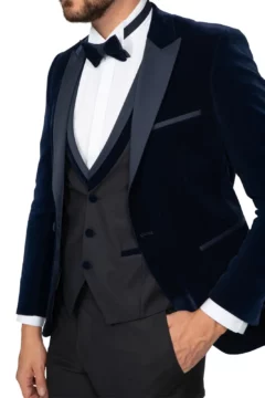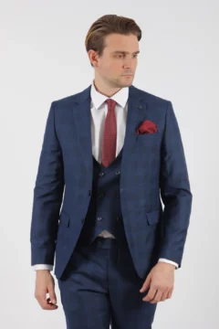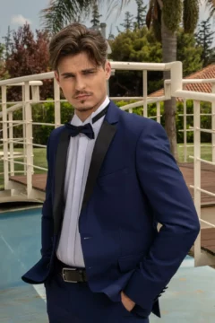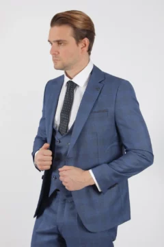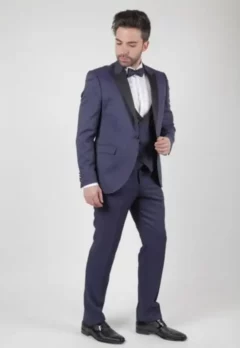 Ανδρικό Γαμπριάτικο Κοστούμι Μπλε Slim Fit Με Αφαιρούμενα Πέτα SU-14