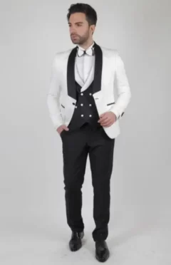 Ανδρικό Κοστούμι Λευκό Μαύρο Πέτο Στενή Γραμμή Kapralos Noble 3505