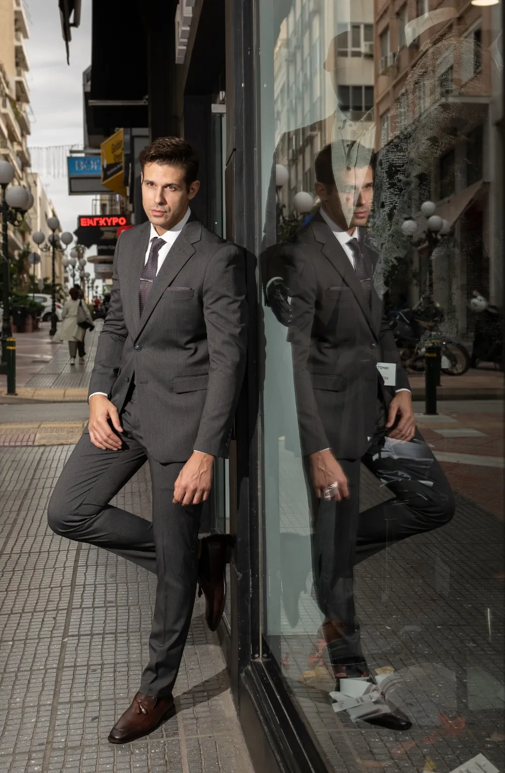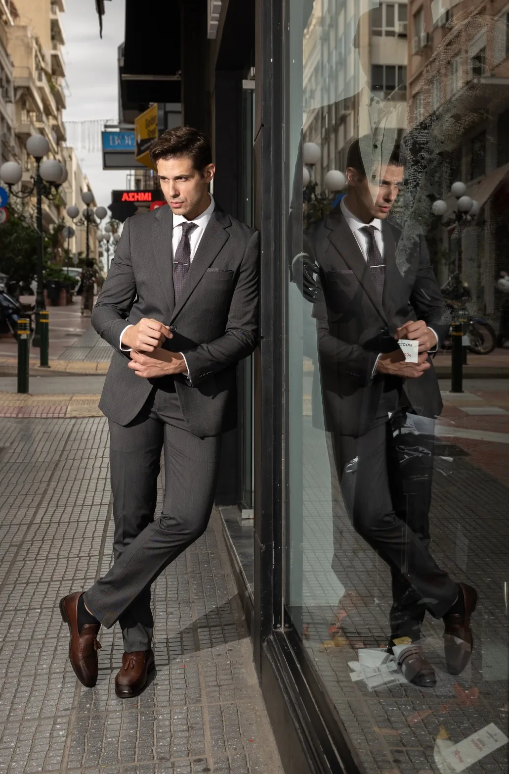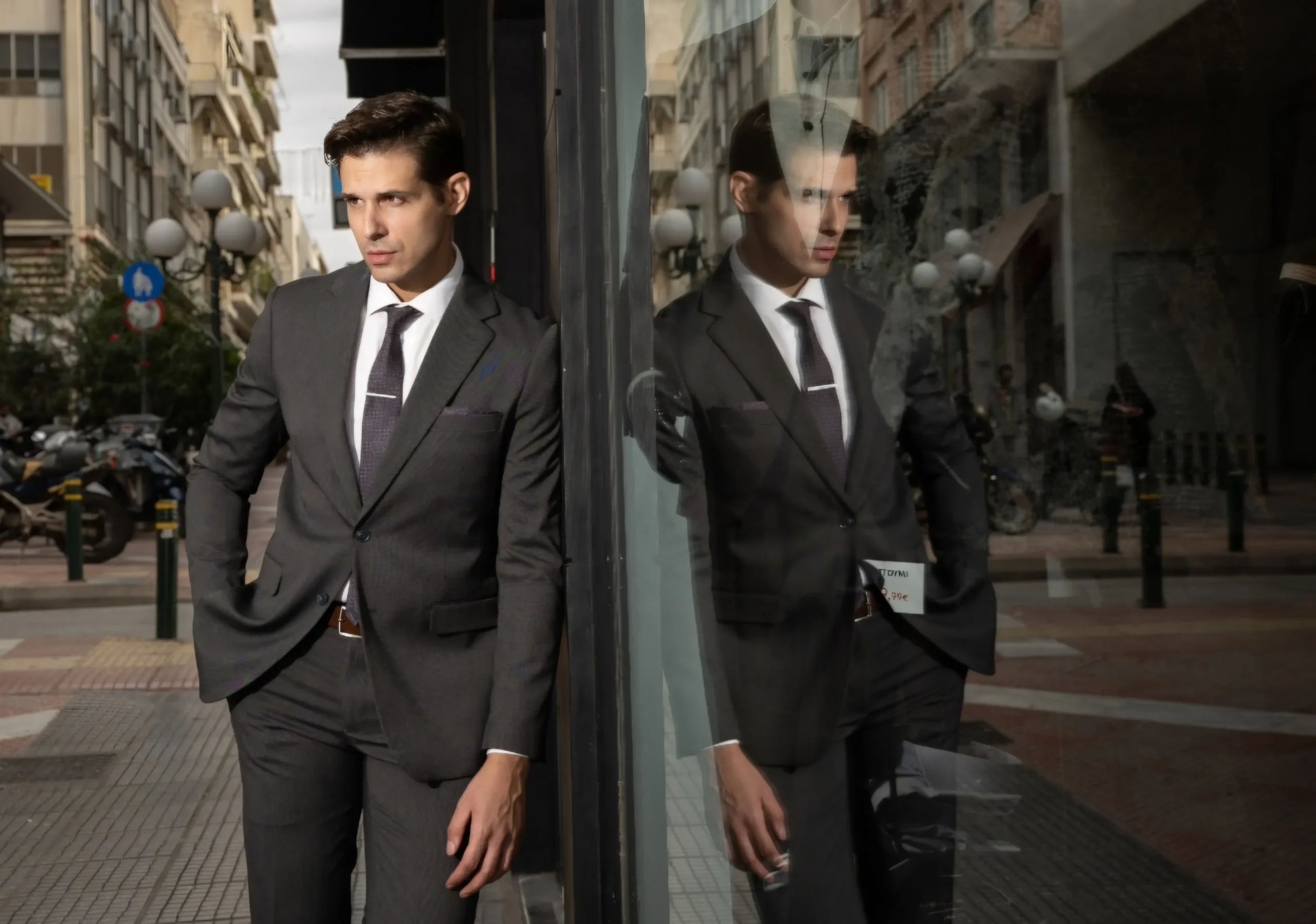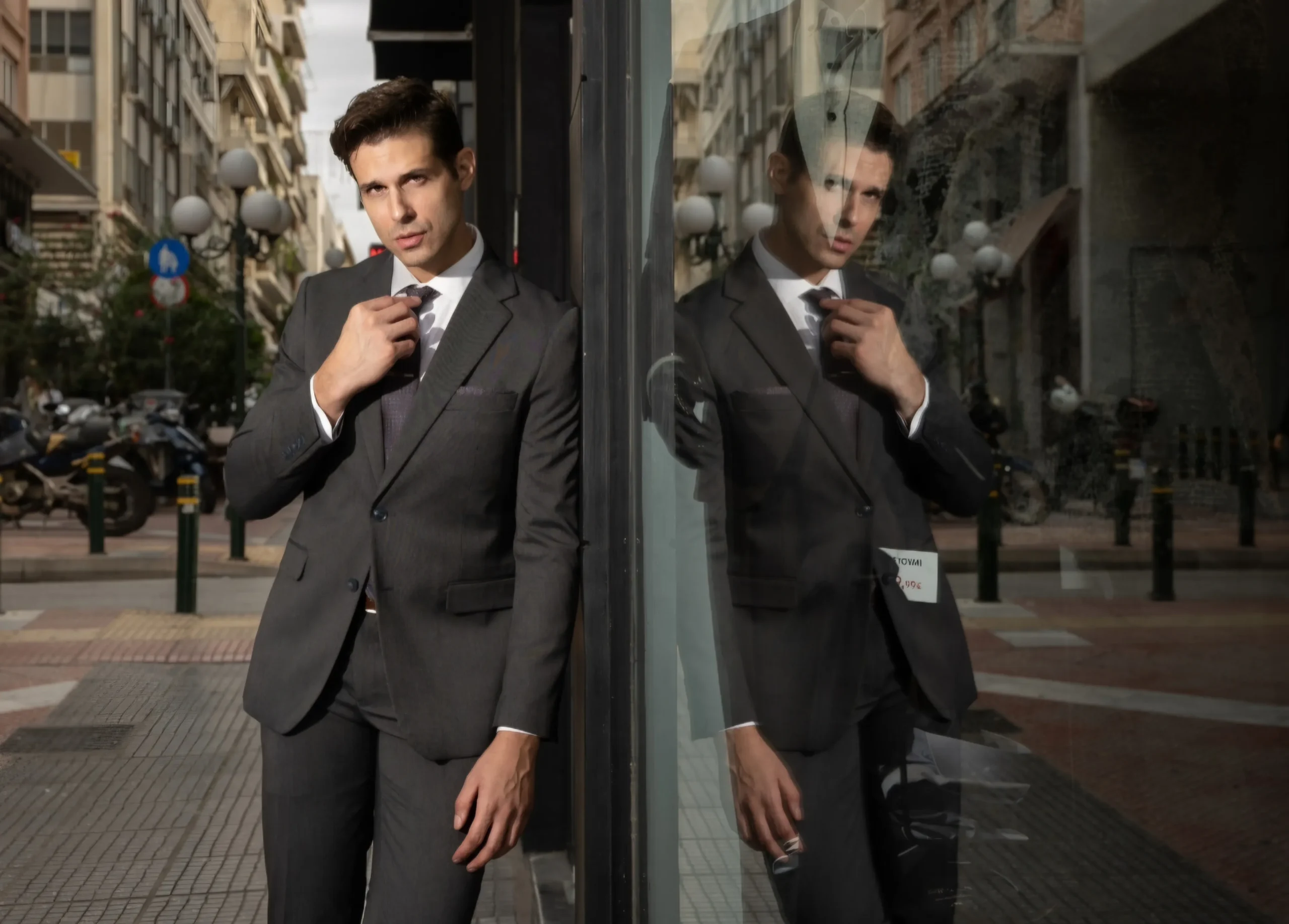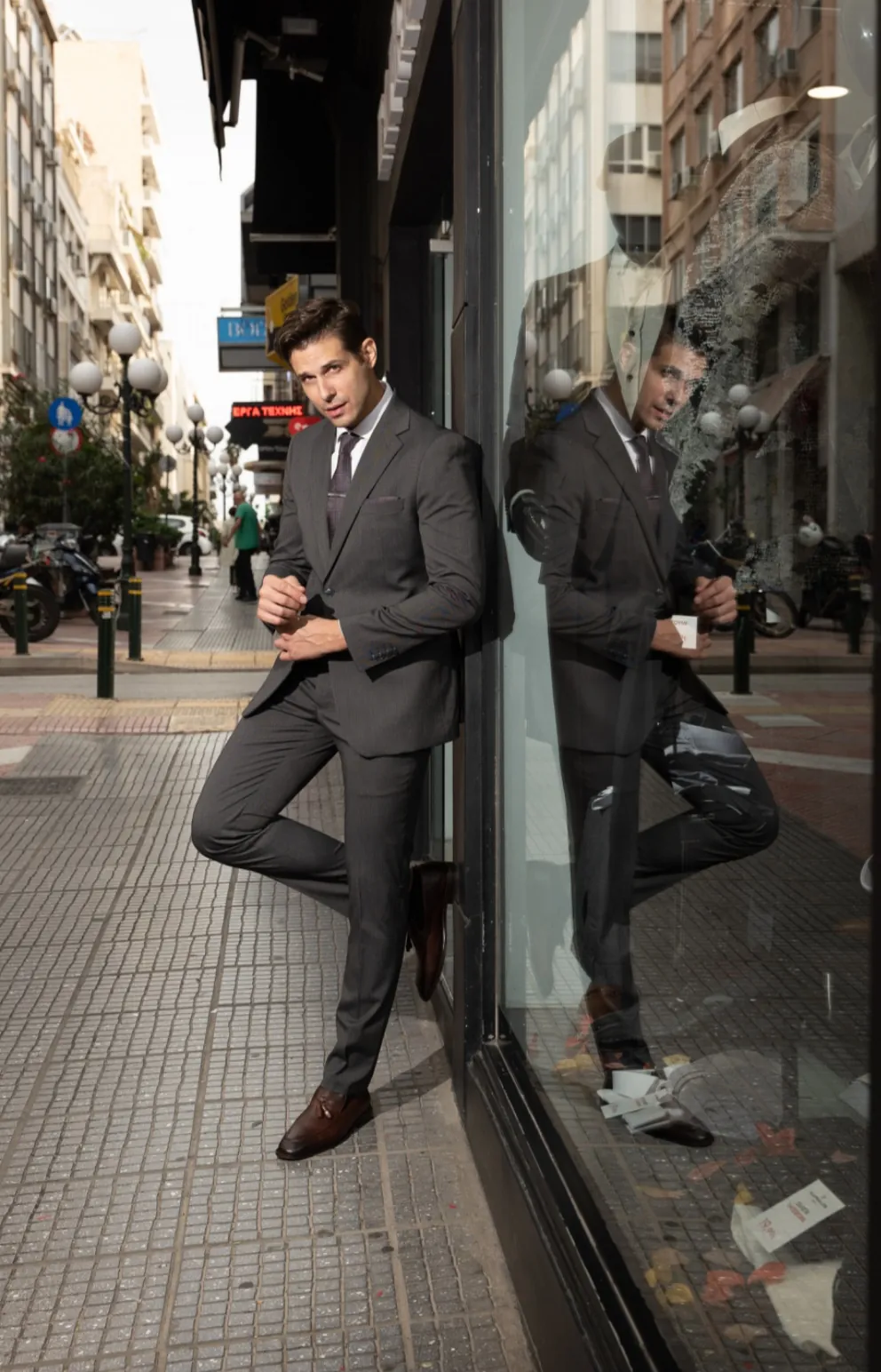 Μοναδικό κοστούμι με δυό κουμπιά & εφαρμογή που αγκαλιάζει το σώμα. Κατάλληλο για business look ή για μια επίσημη εμφάνιση