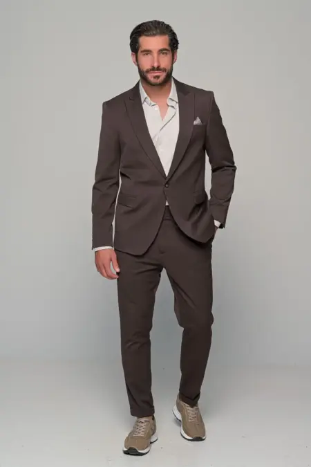 Ανδρικό Slim Fit Κοστούμι Alessandro Ben Tailor Καφέ