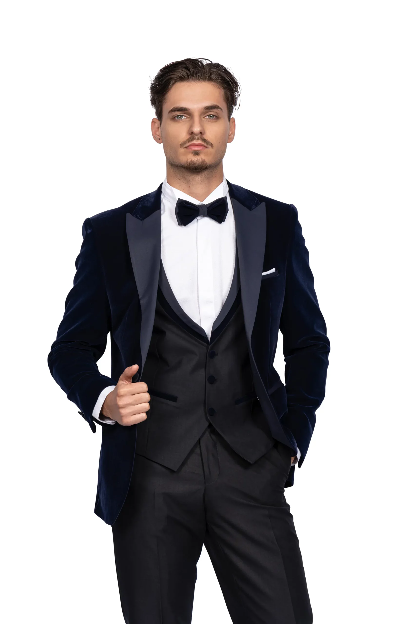 Men's Wedding Suit Blue Slim Fit With Removable Throw SU-14