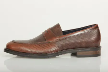 Ανδρικό Δερμάτινο Παπούτσι Penny Loafer Καφέ Diamond Pattern 624-2