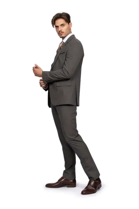 Κοστούμι Ανδρικό Ανοιχτό Καφέ Με Σκούρο Καφέ Γιλέκο 157