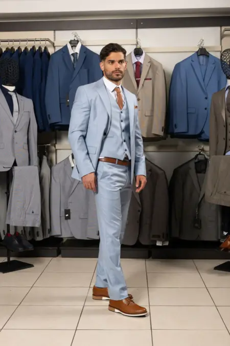 Κοστούμι Γαλάζιο στενής γραμμής με γιλέκο #127