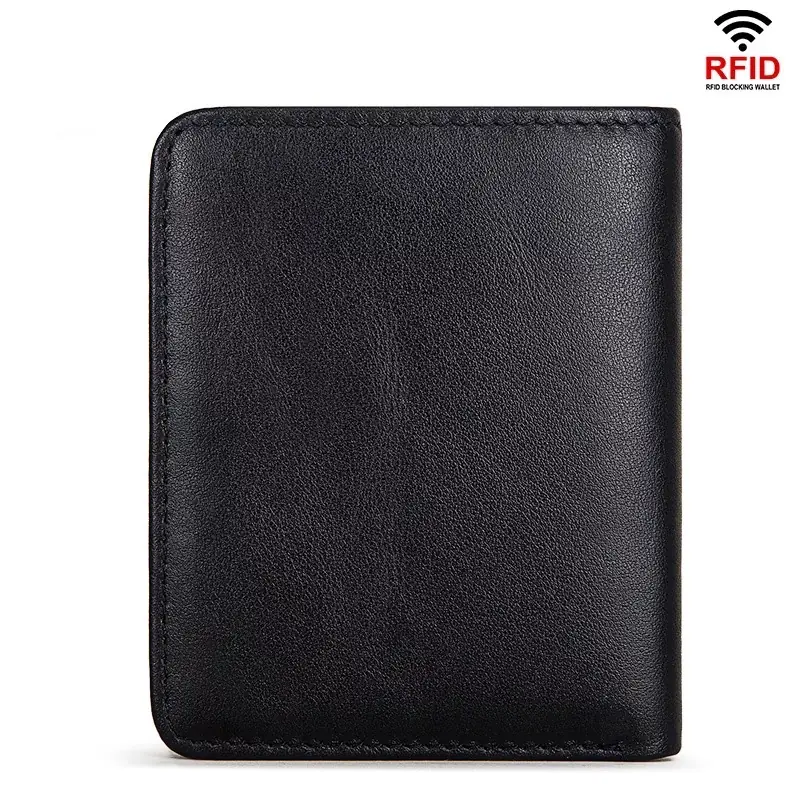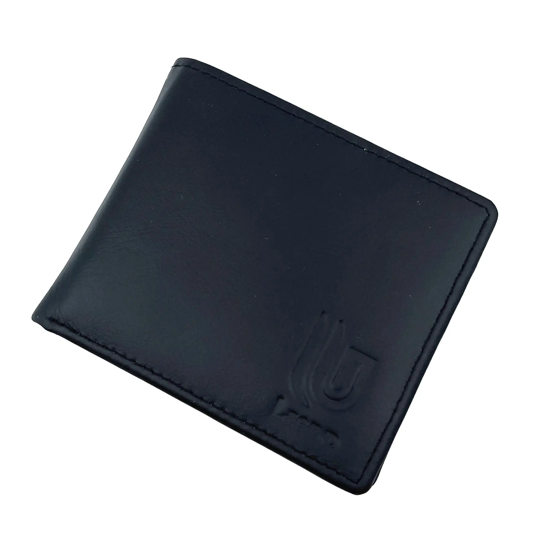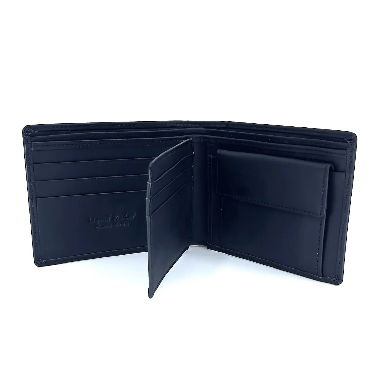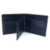 Δερμάτινο πορτοφόλι σε διαστάσεις που χωράει την ελληνική ταυτότητα, από μαλακό δέρμα μοσχάρι σε χρώμα μαύρο.