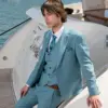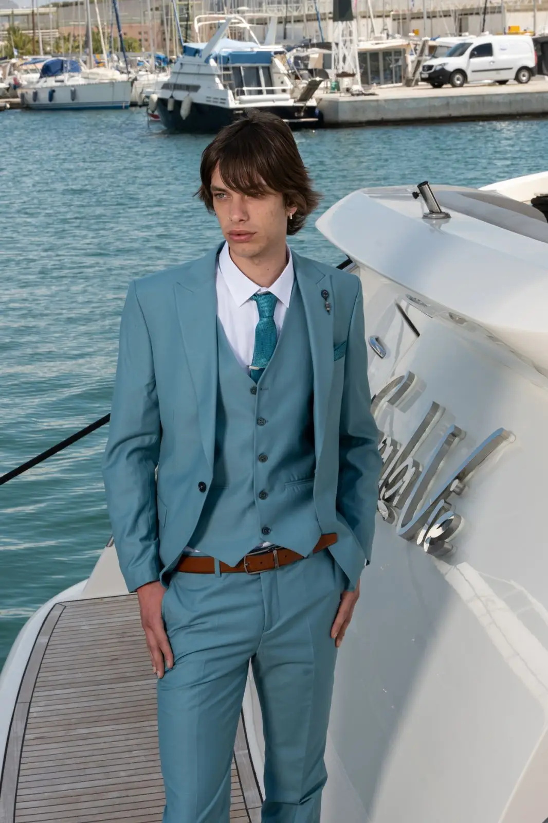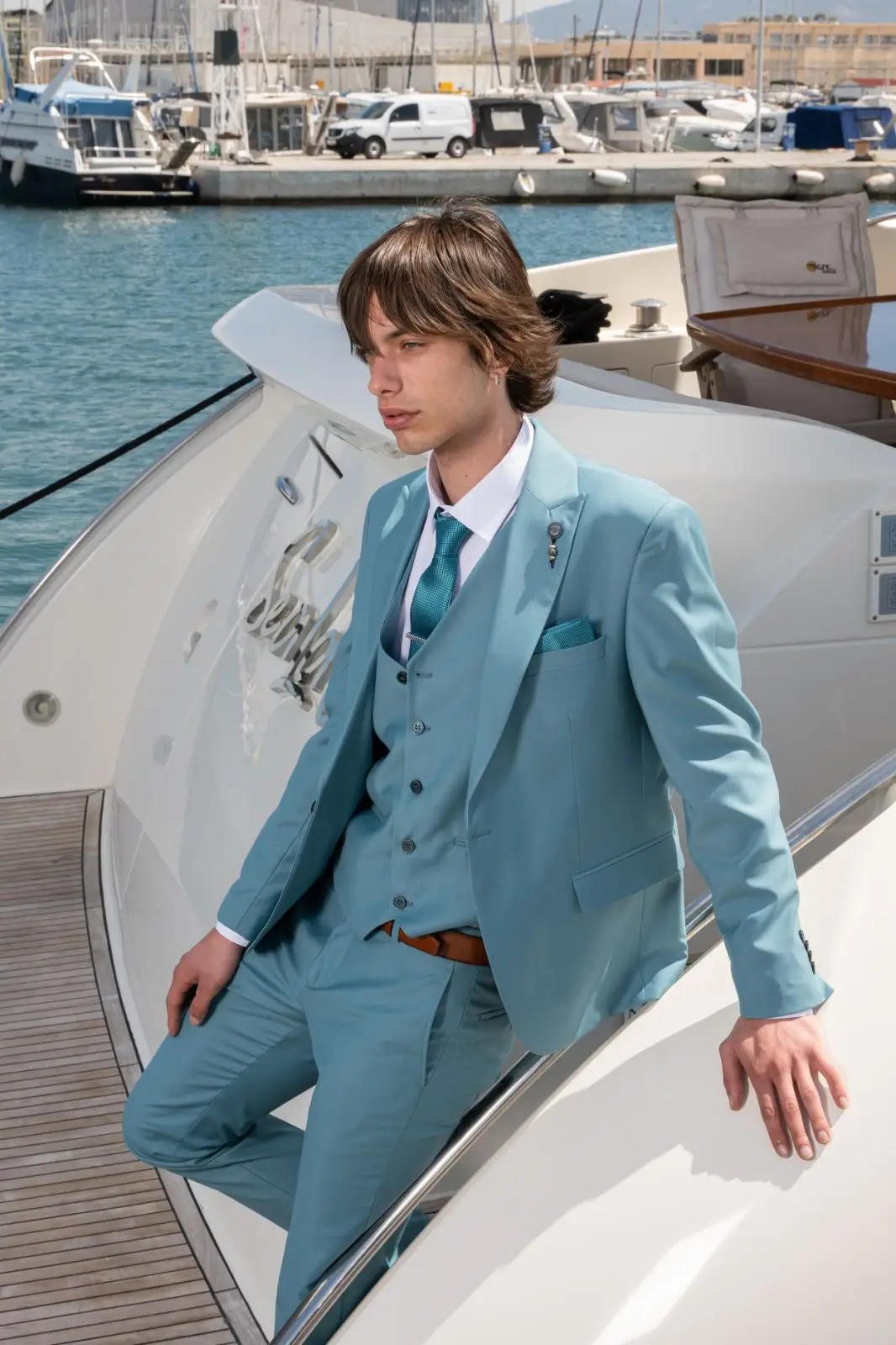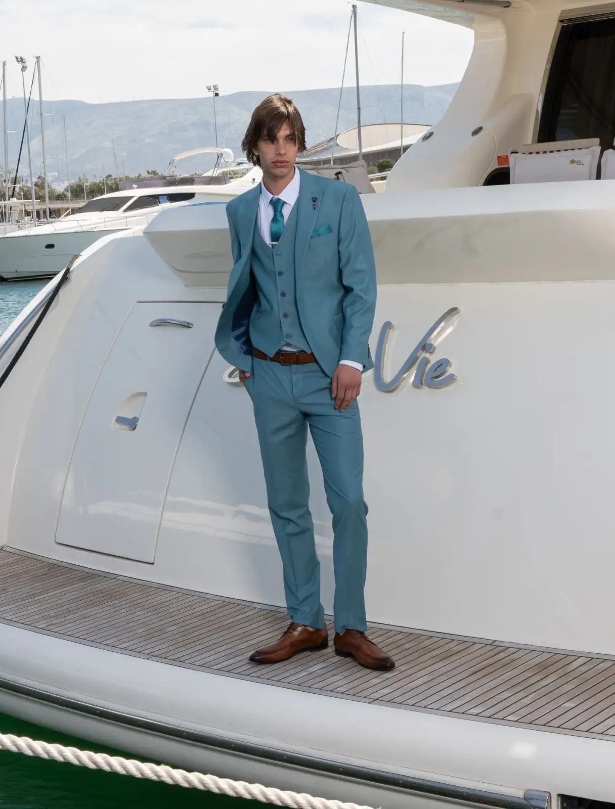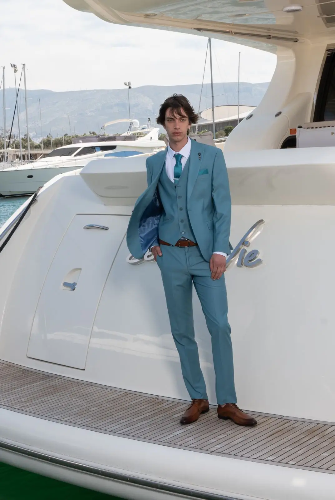 Η γραμμή είναι μοντέρνα slim fit και η τιμή αφορά σακάκι, παντελόνι και γιλέκο.
