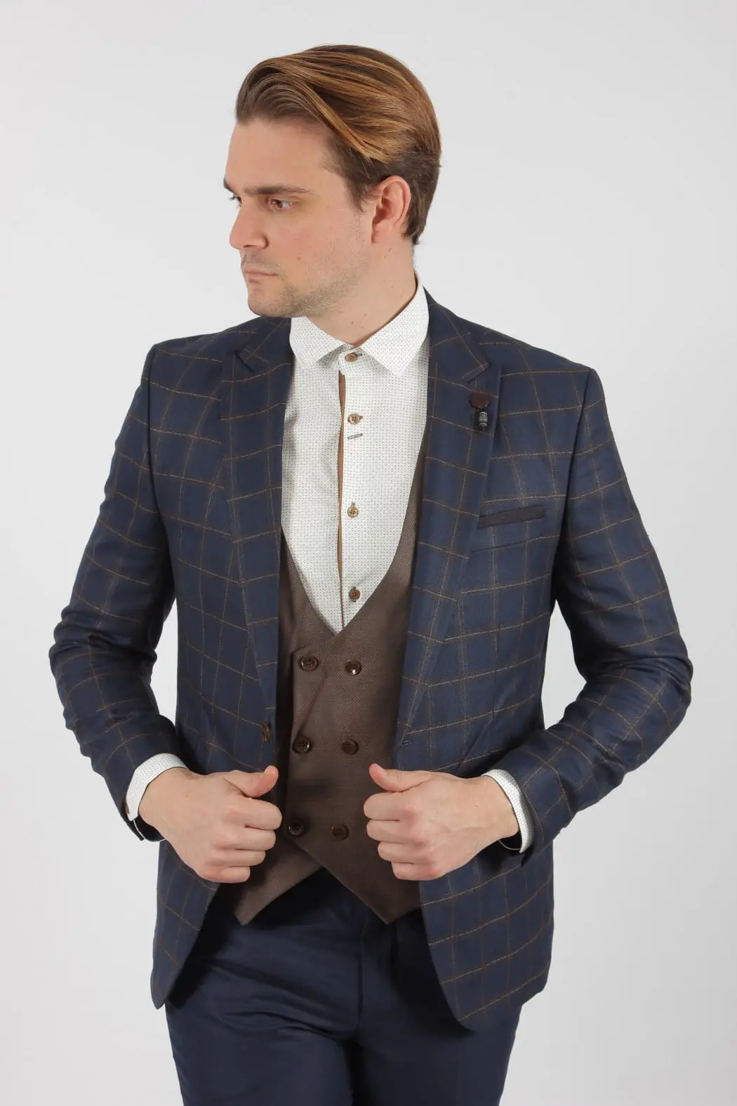 Men's Suit Blue Plaid Slim Fit Senso Diverso 293-06