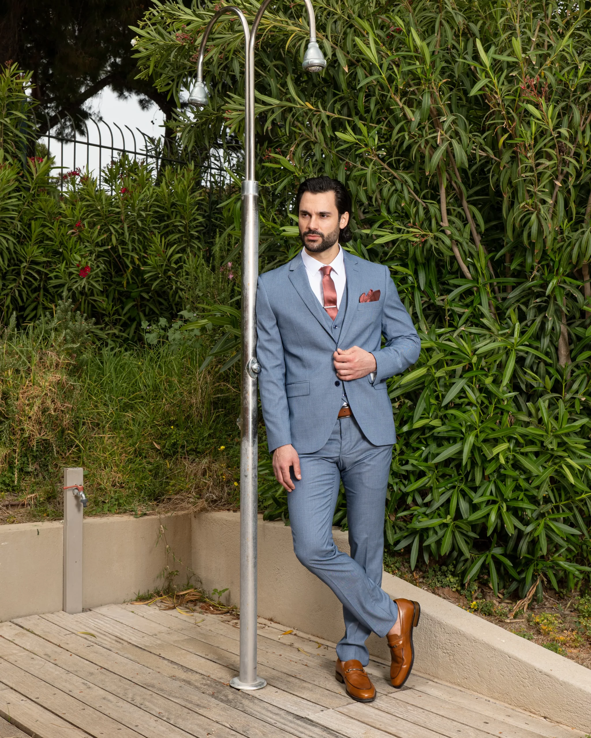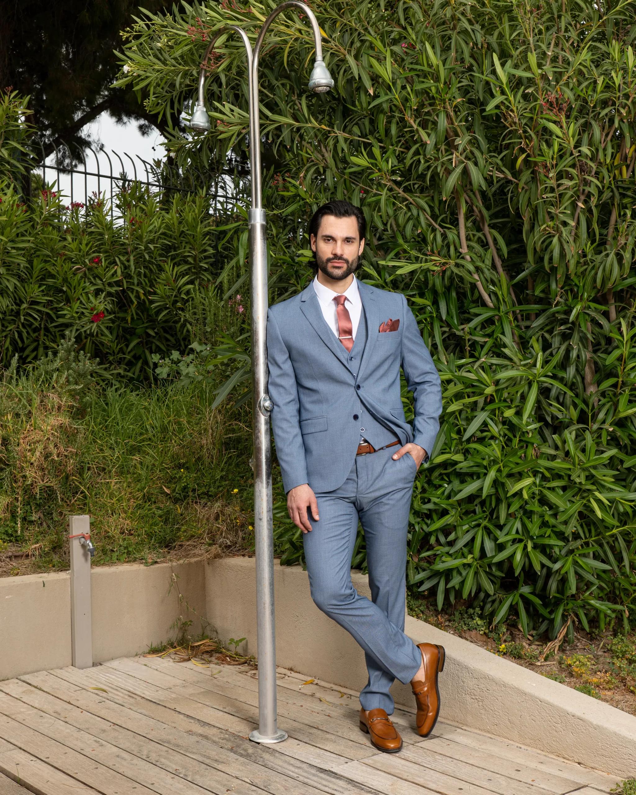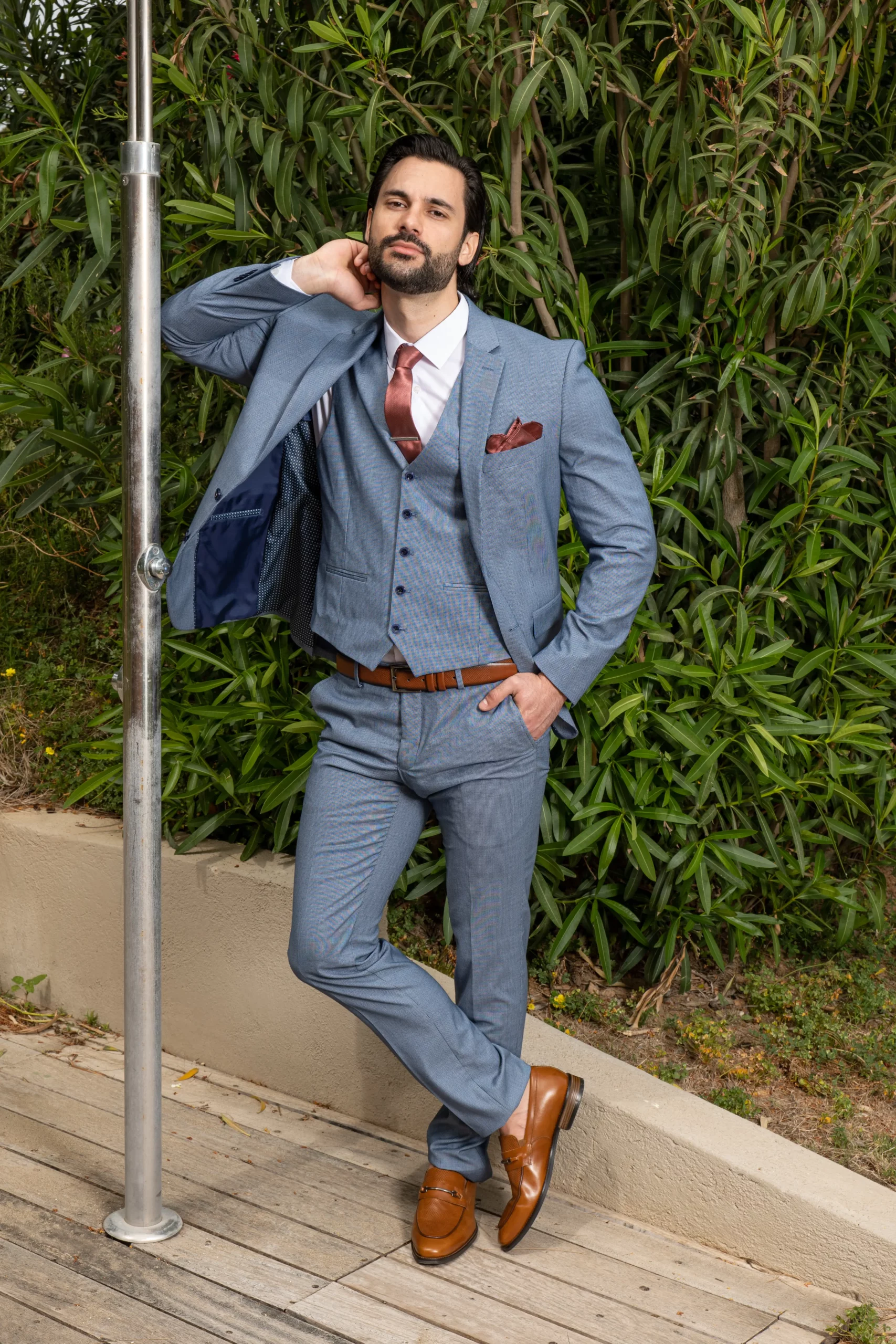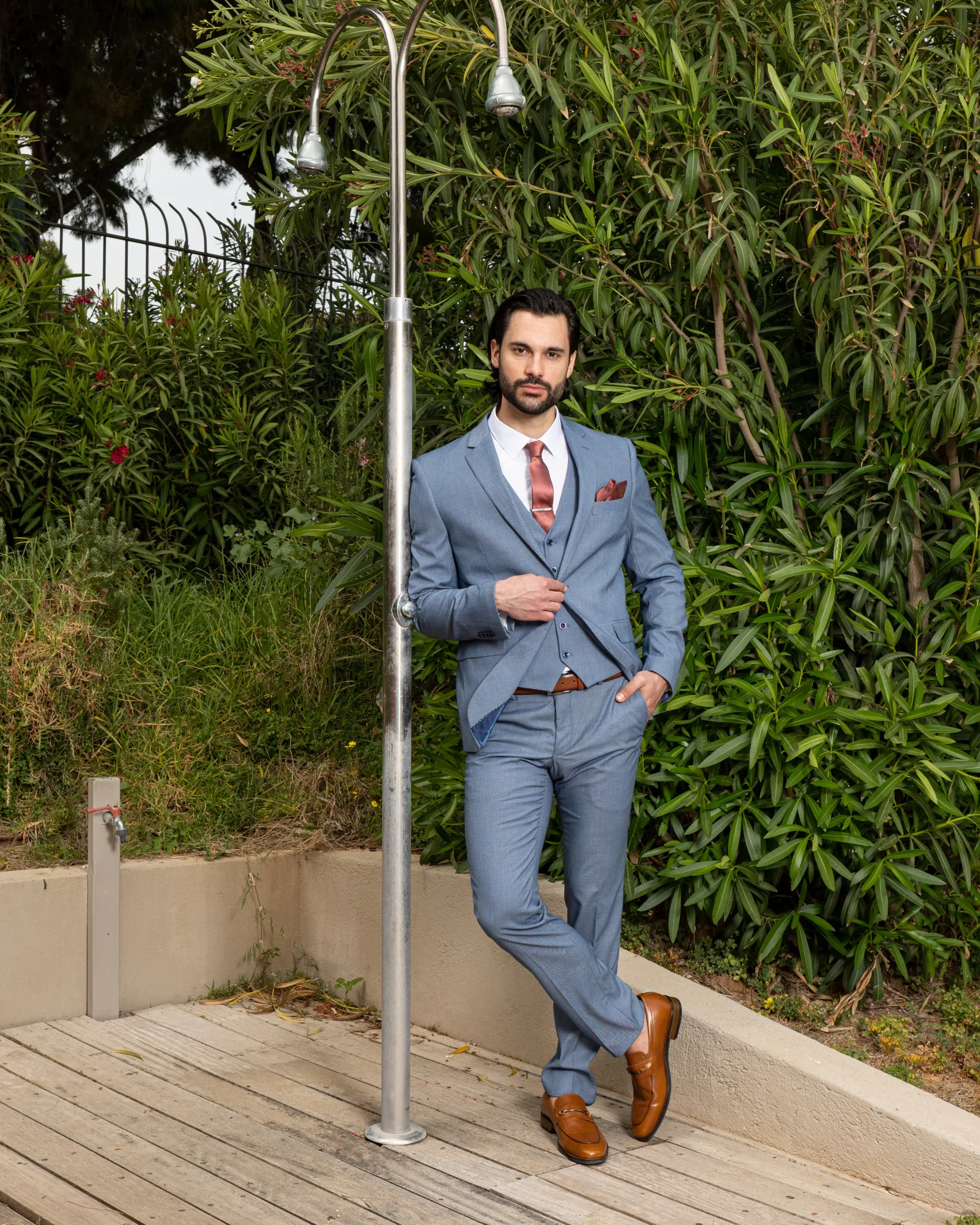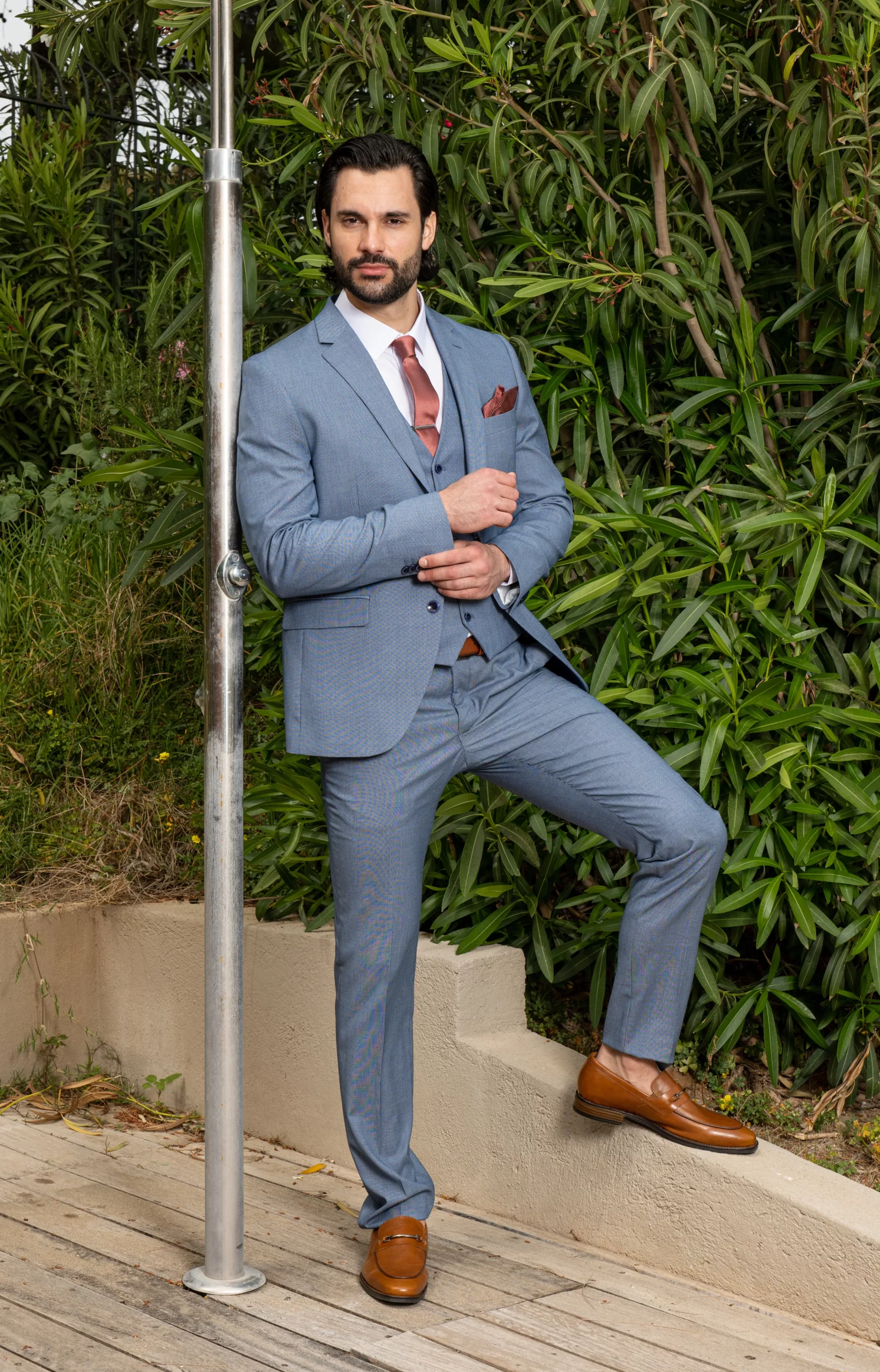 Εξαιρετικής ποιότητας δίκουμπο ανδρικό κοστούμι Antonio Miro σε ραφ χρώμα της συλλογής μας SS24.