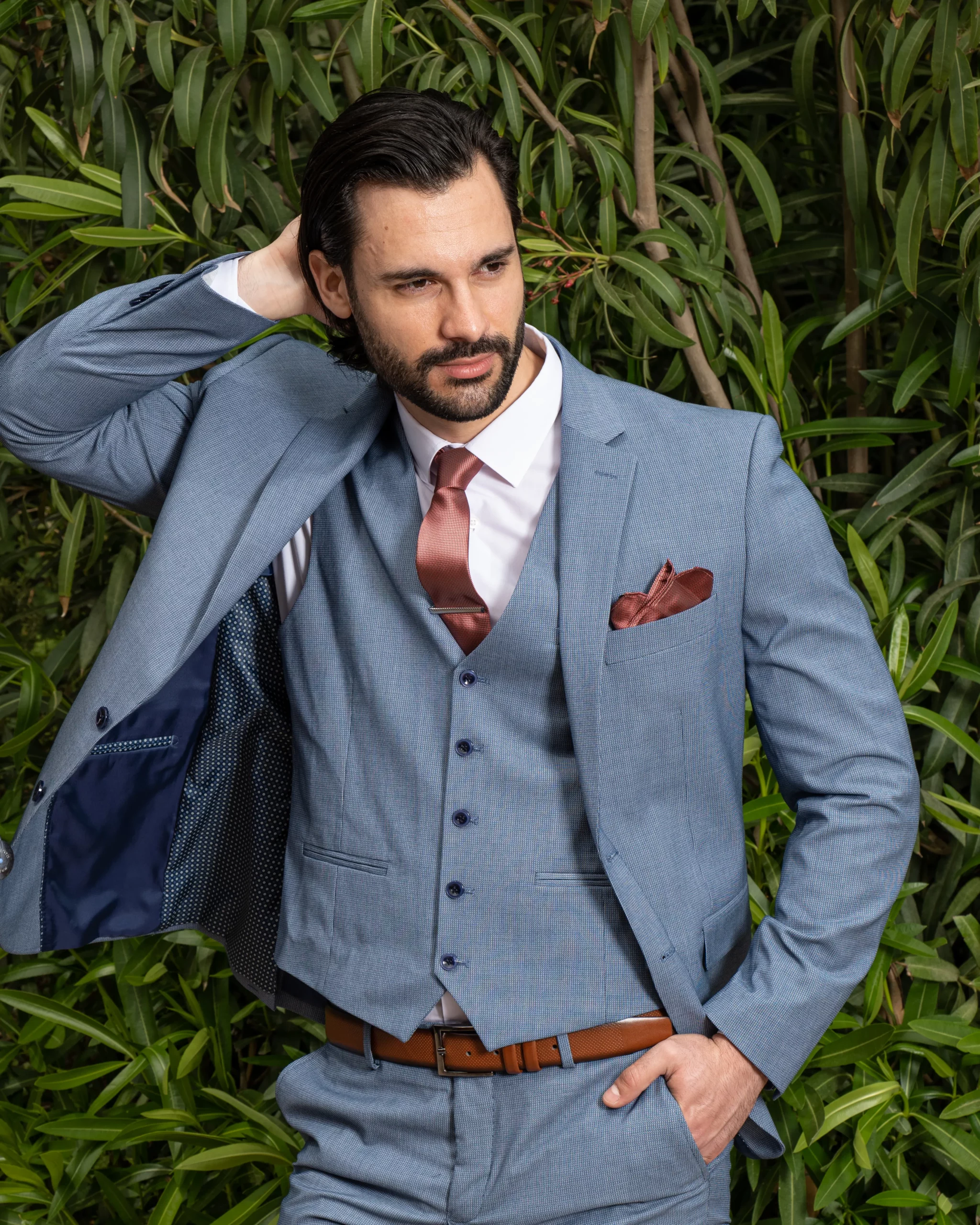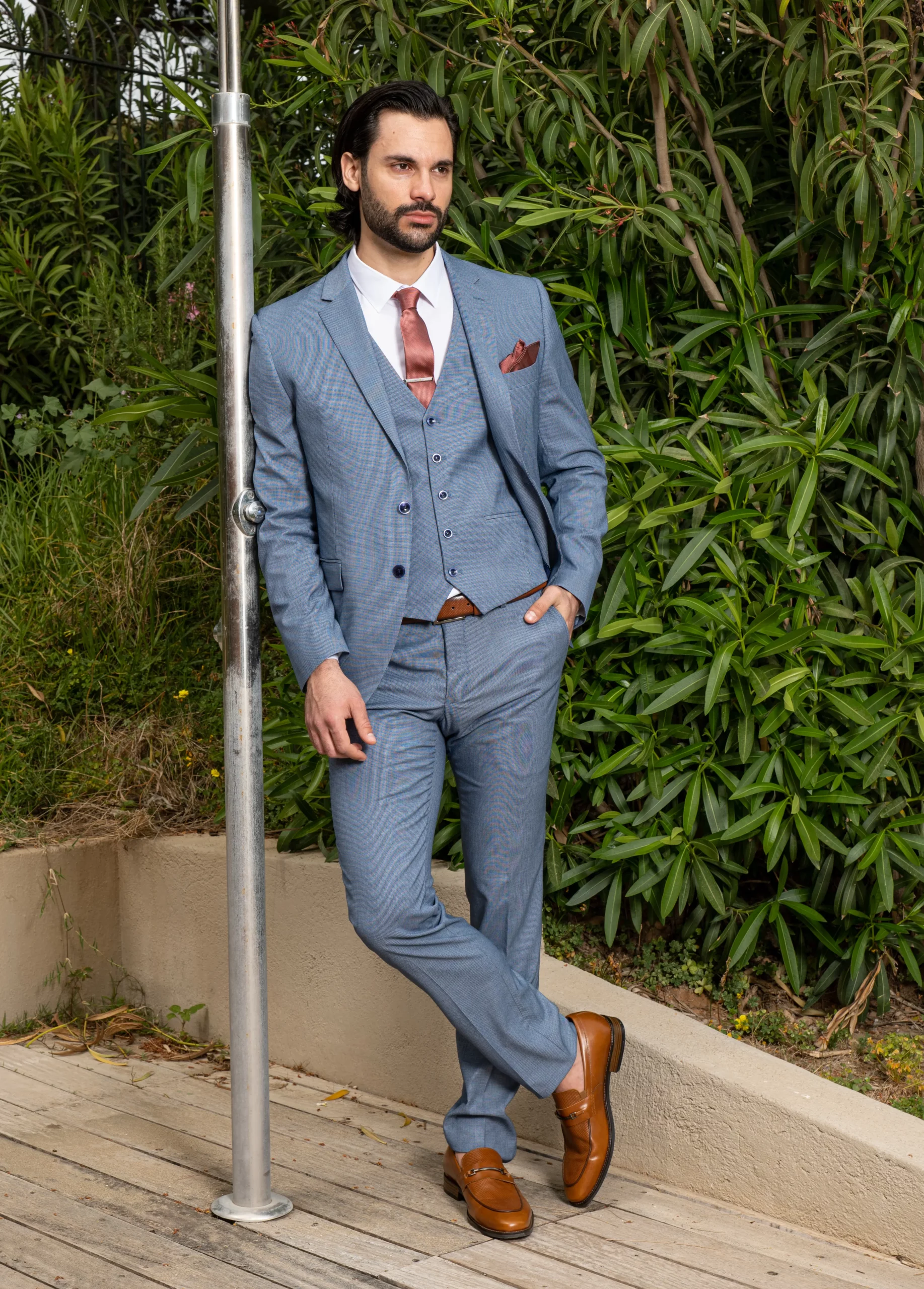 Το ραφ σακάκι και παντελόνι αποτελεί μία δυναμική επιλογή που προβάλει αυτοπεποίθηση.