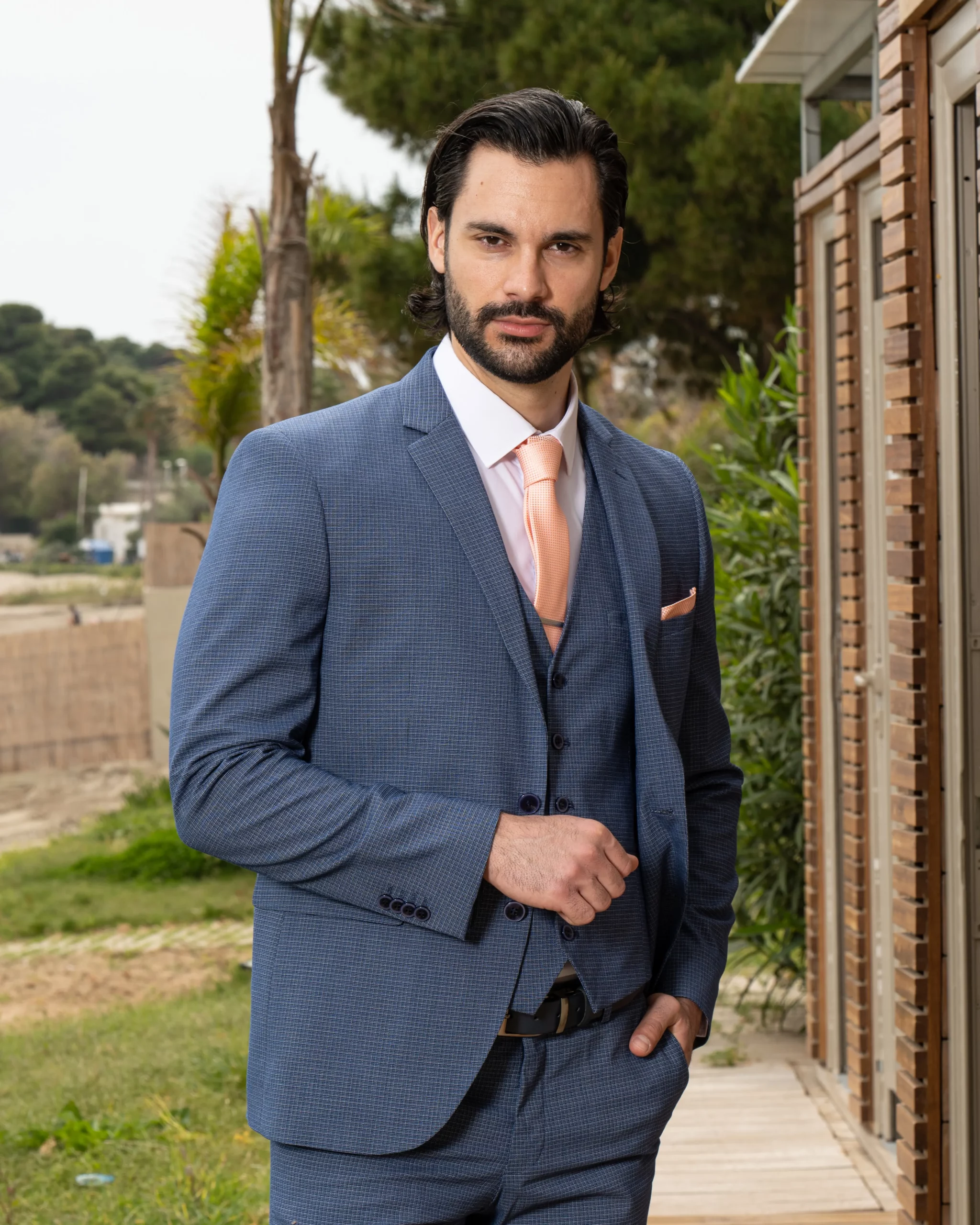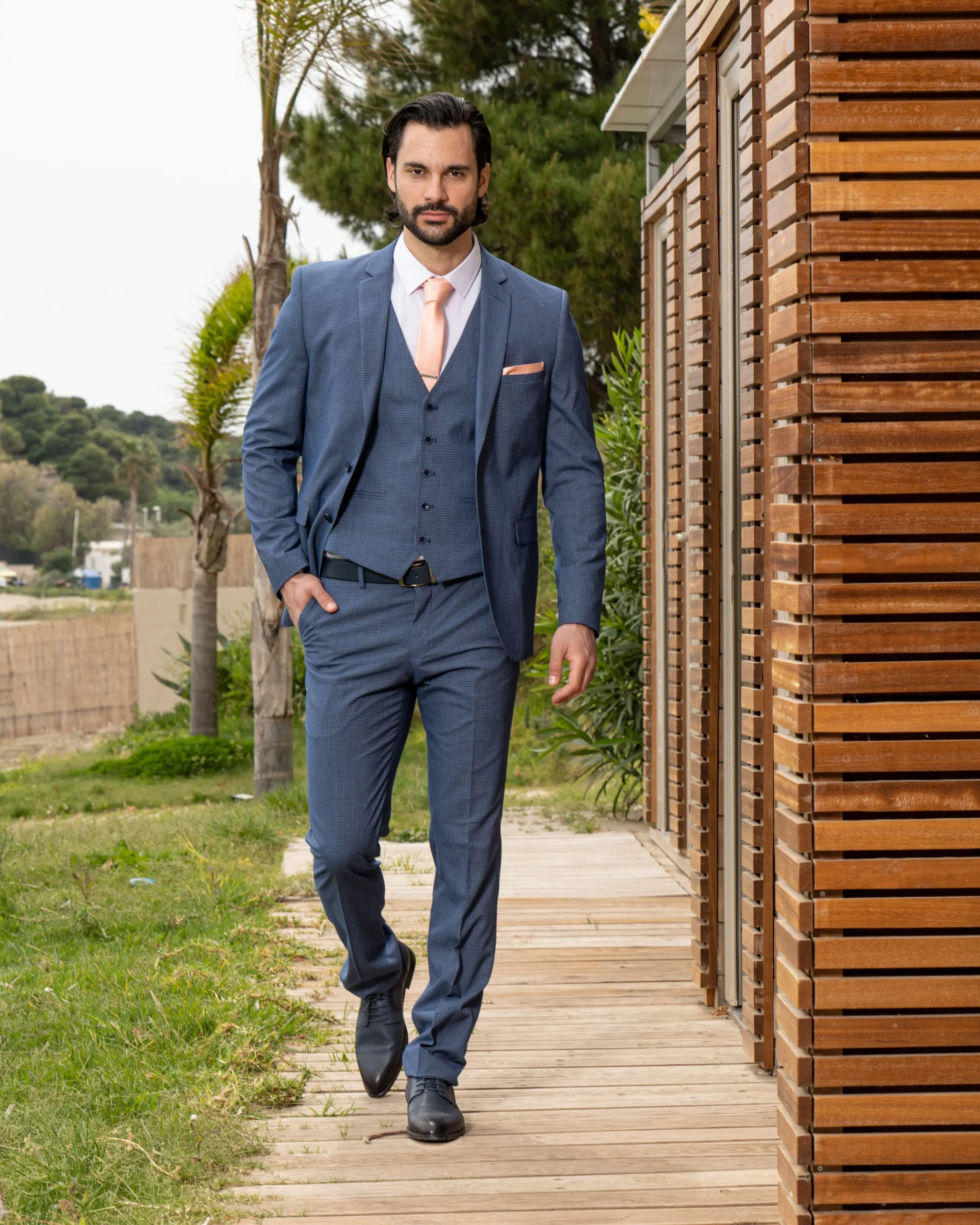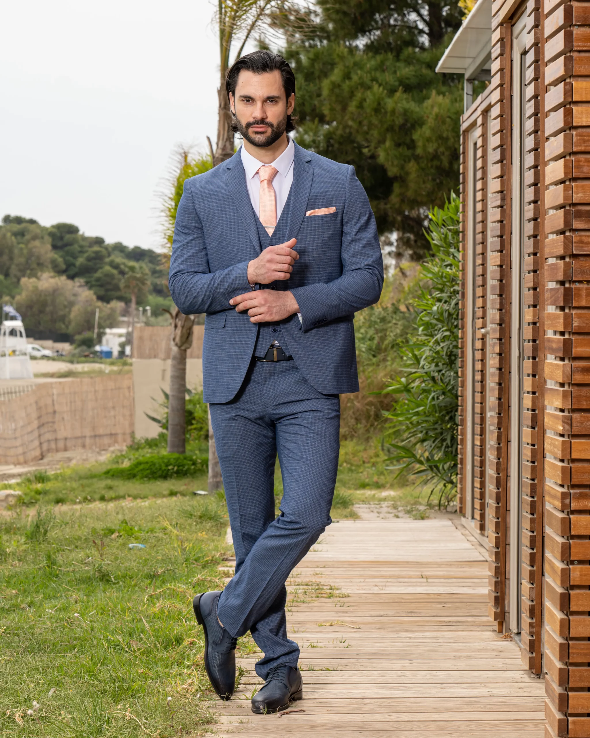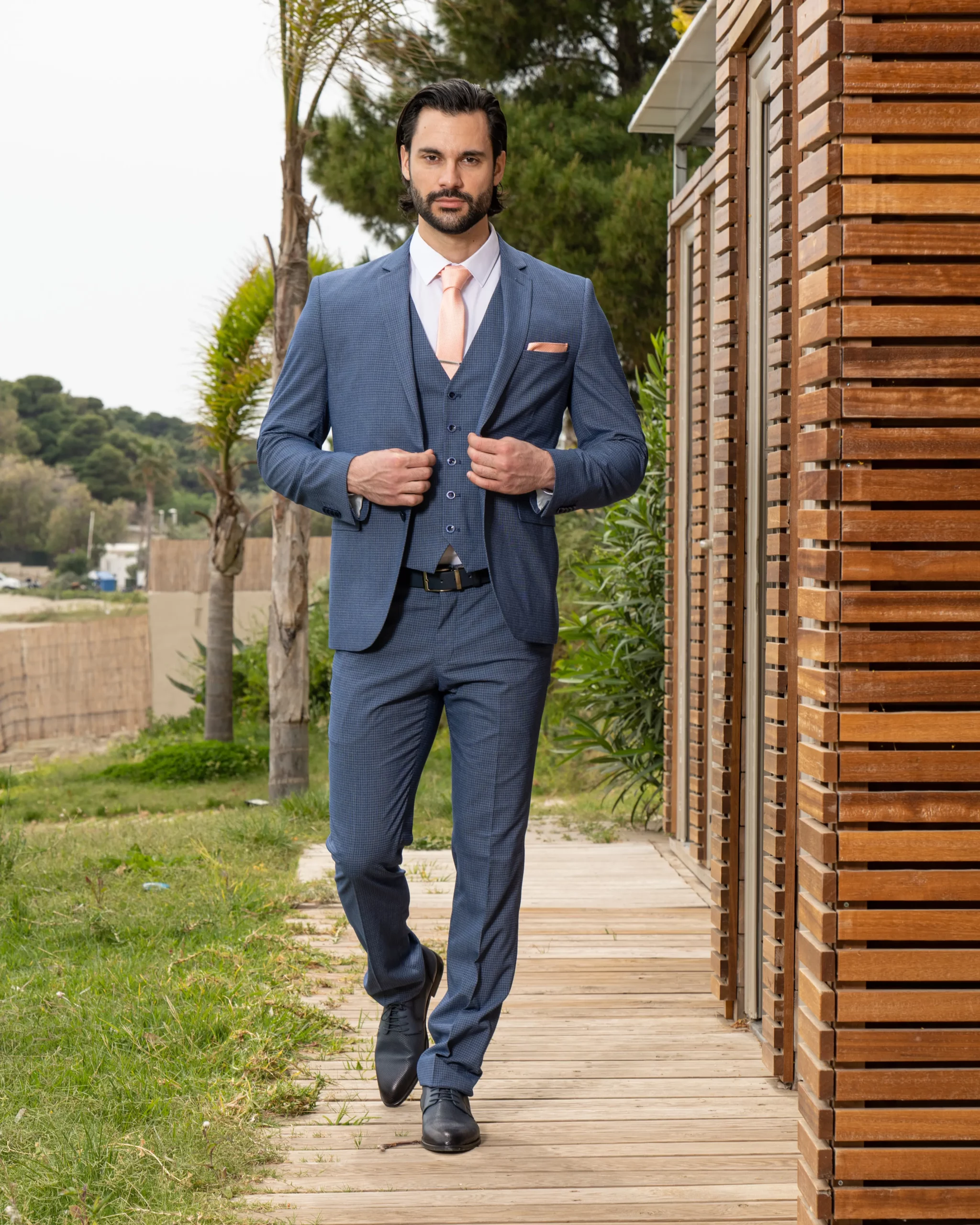Το μπλε σακάκι και παντελόνι αποτελεί ένα κλασικό συνδυασμό που δεν έχει απογοητεύσει ποτέ, ενώ η slim fit γραμμή του αγκαλιάζει το κορμί και κολακεύει τον κάτοχο.
