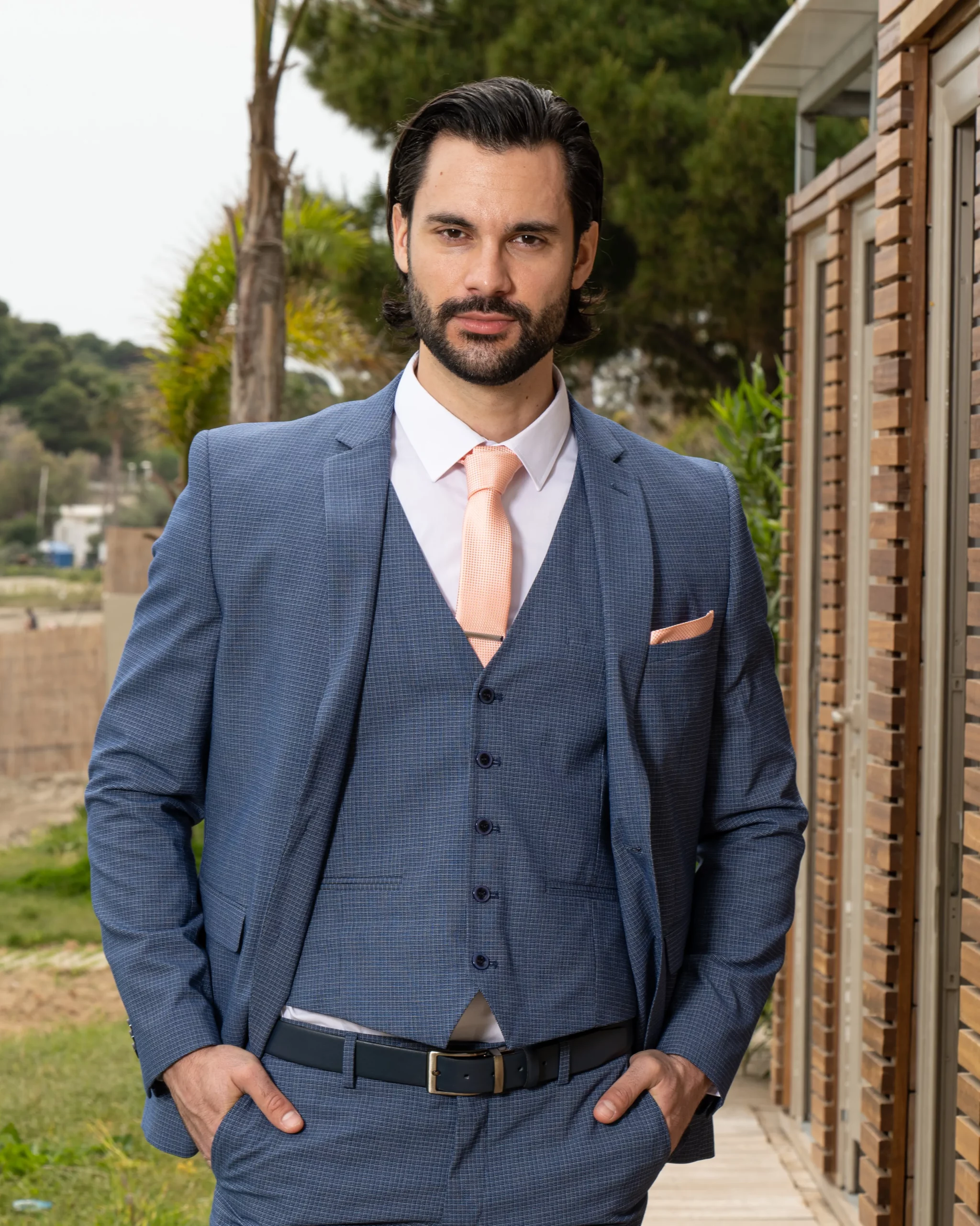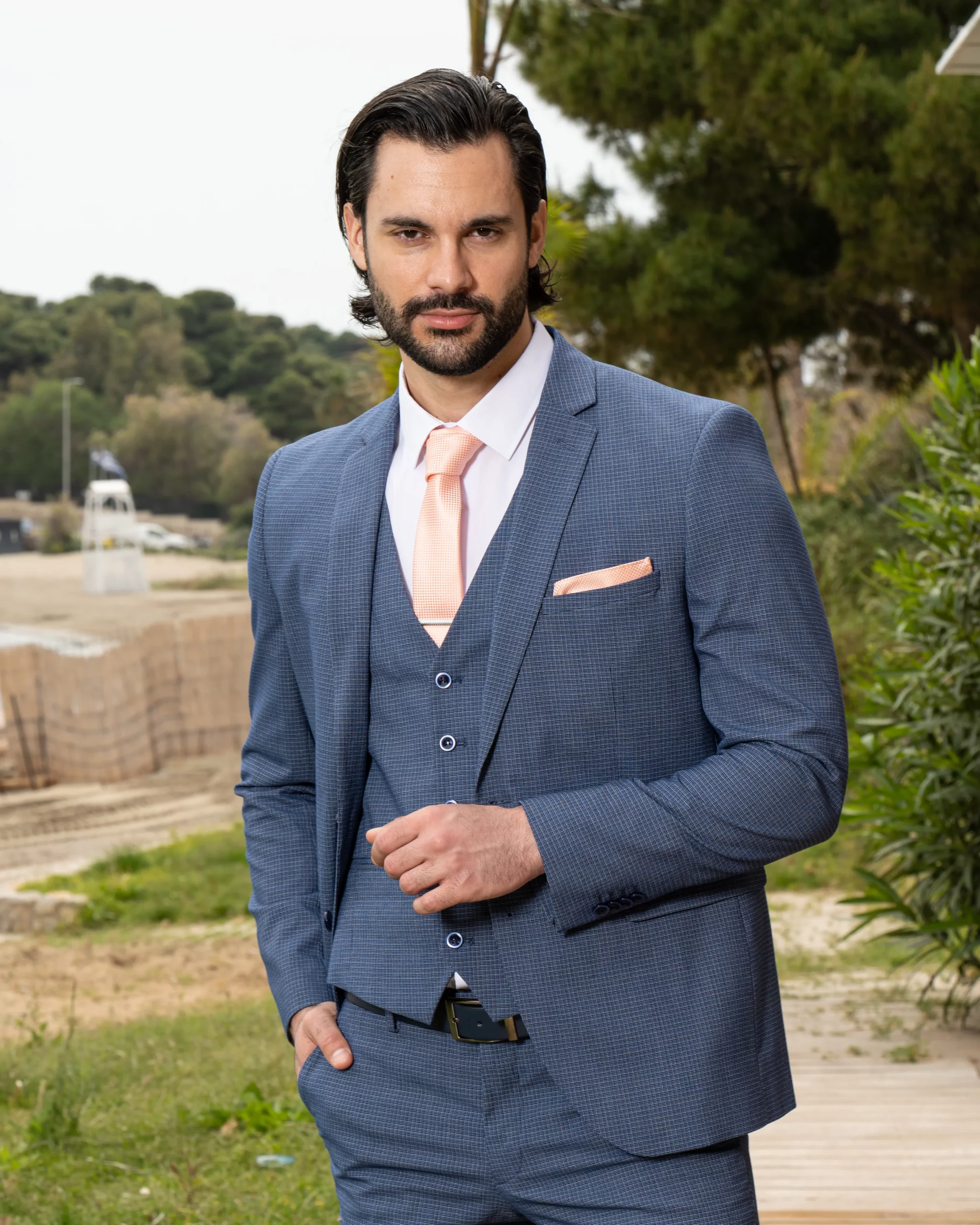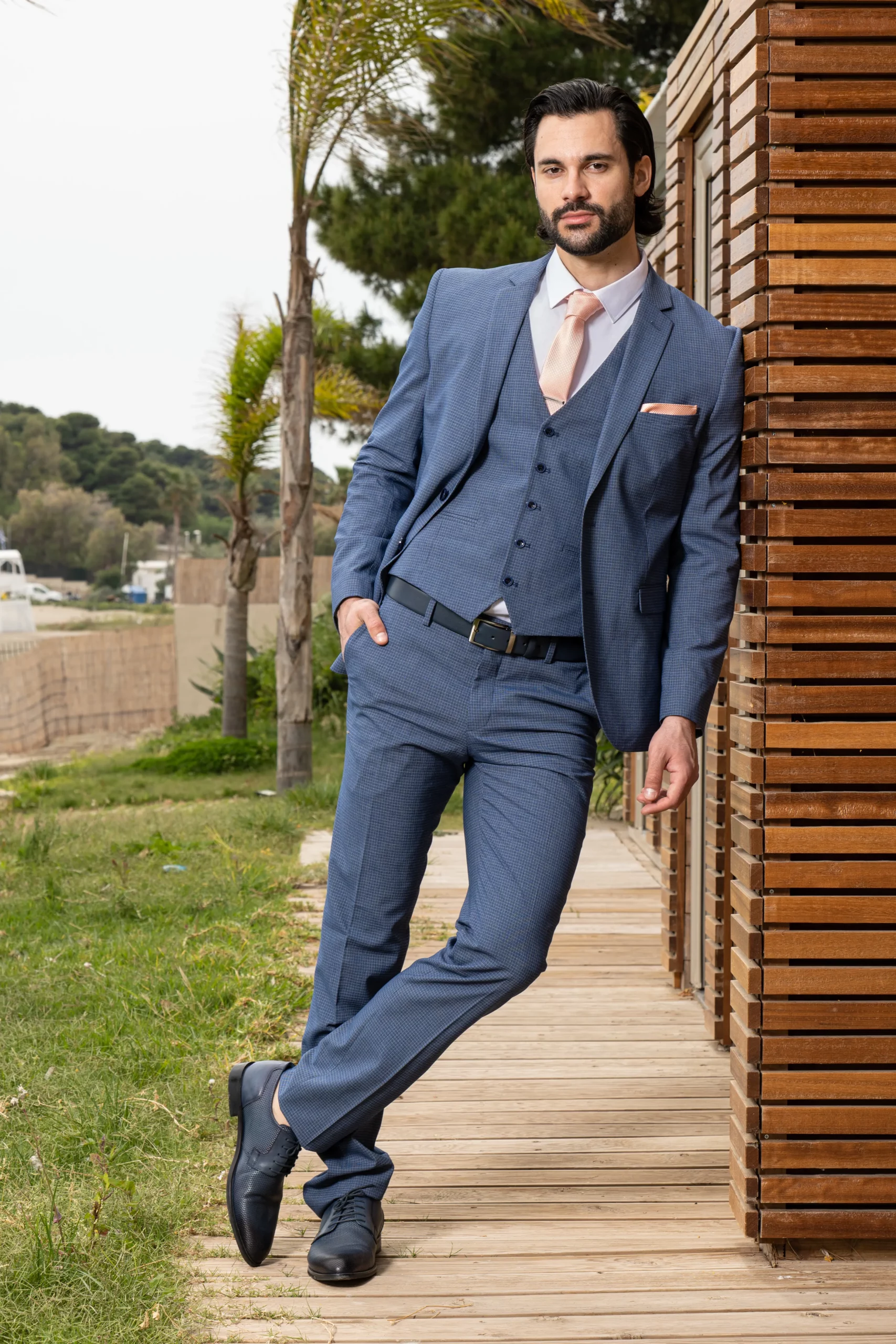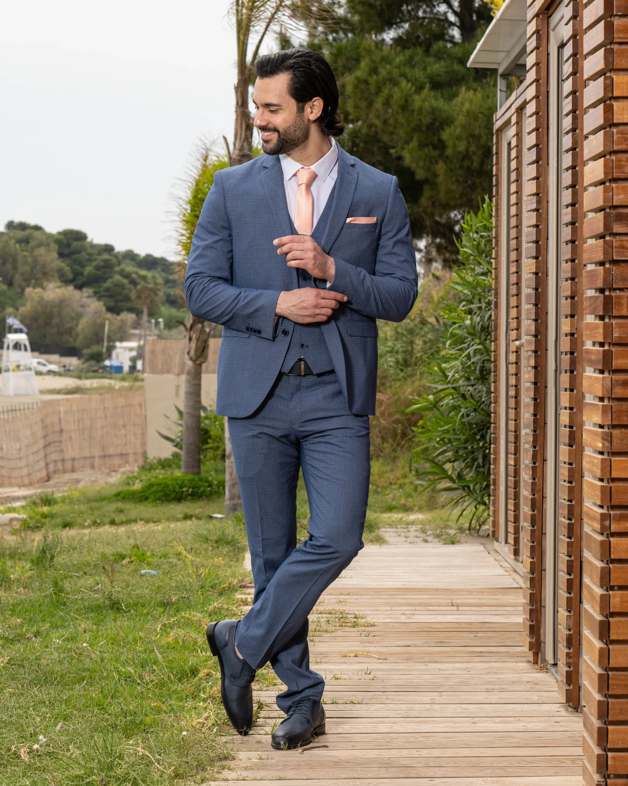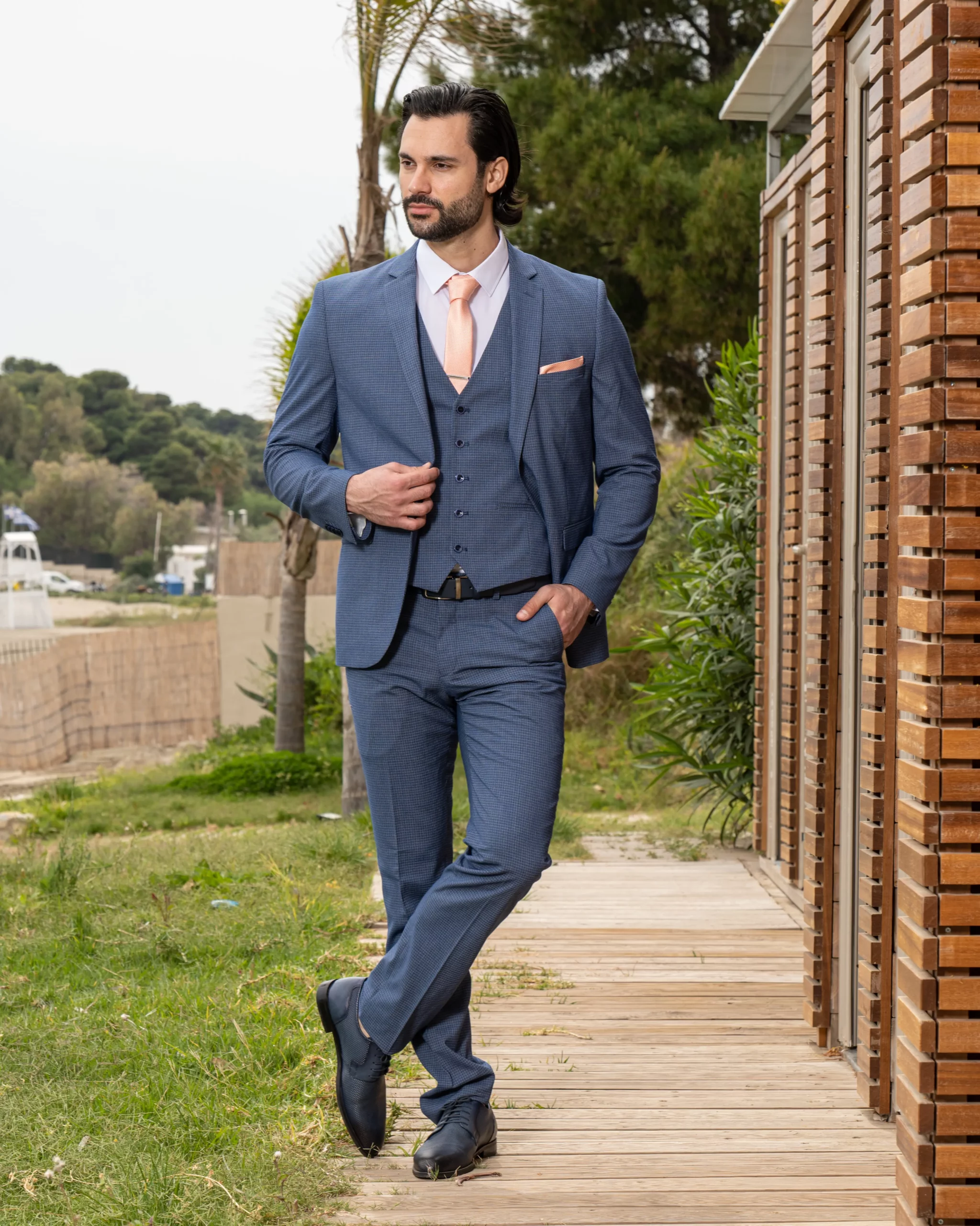 Το μπλε σακάκι και παντελόνι αποτελεί ένα κλασικό συνδυασμό που δεν έχει απογοητεύσει ποτέ, ενώ η slim fit γραμμή του αγκαλιάζει το κορμί και κολακεύει τον κάτοχο.