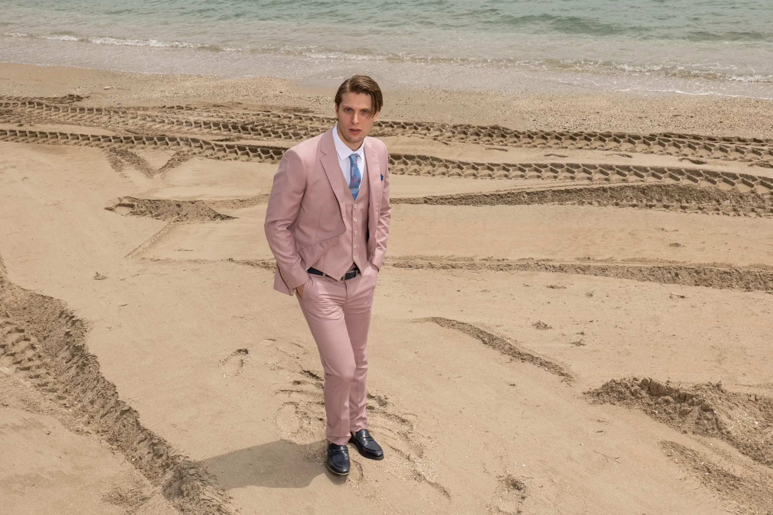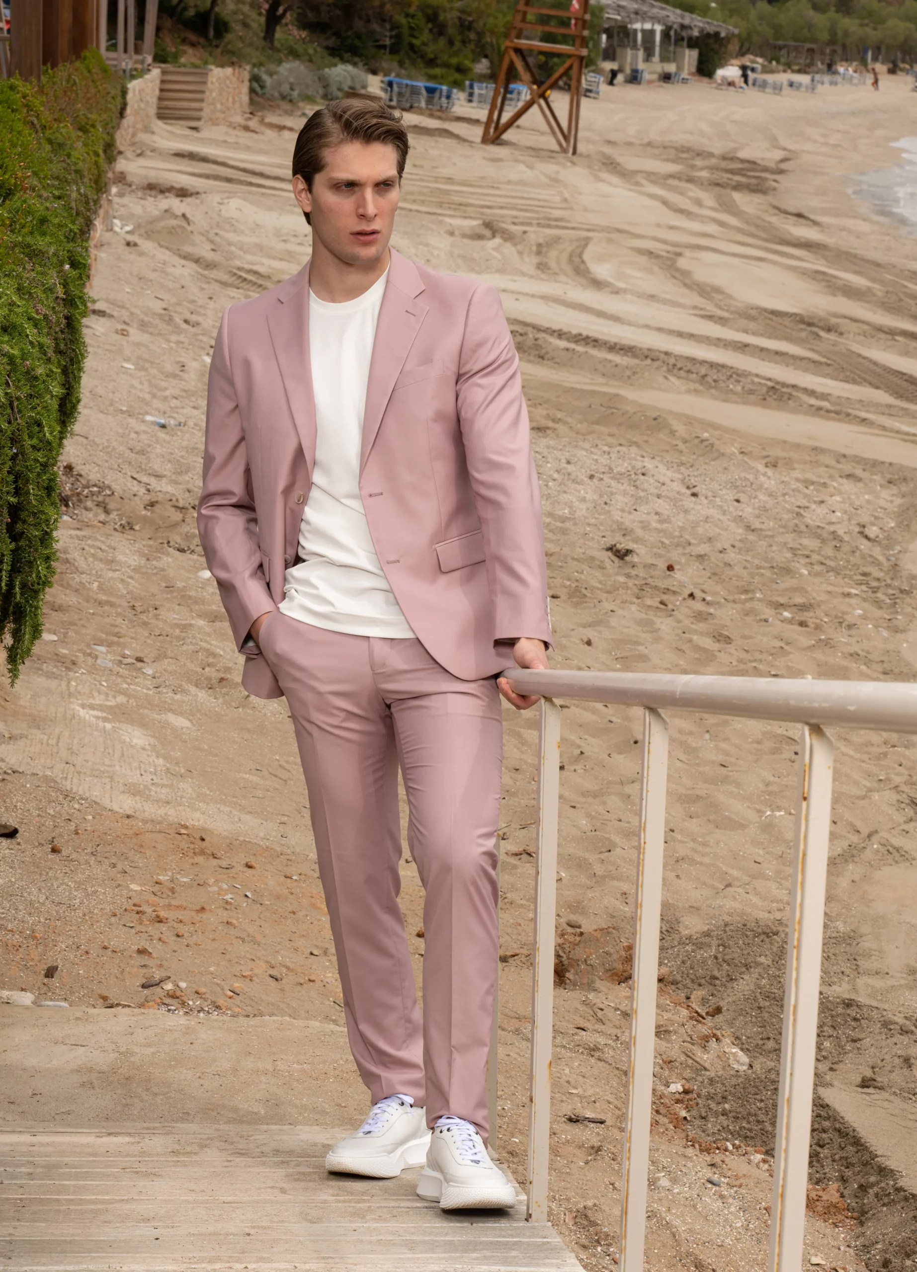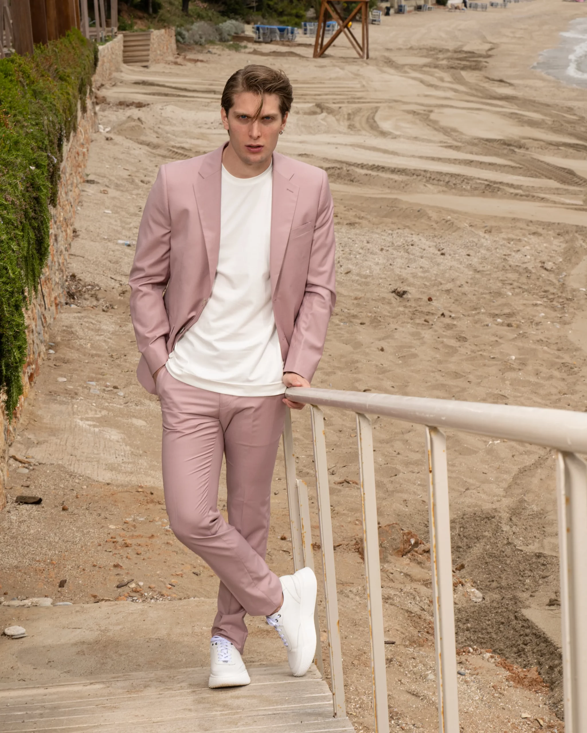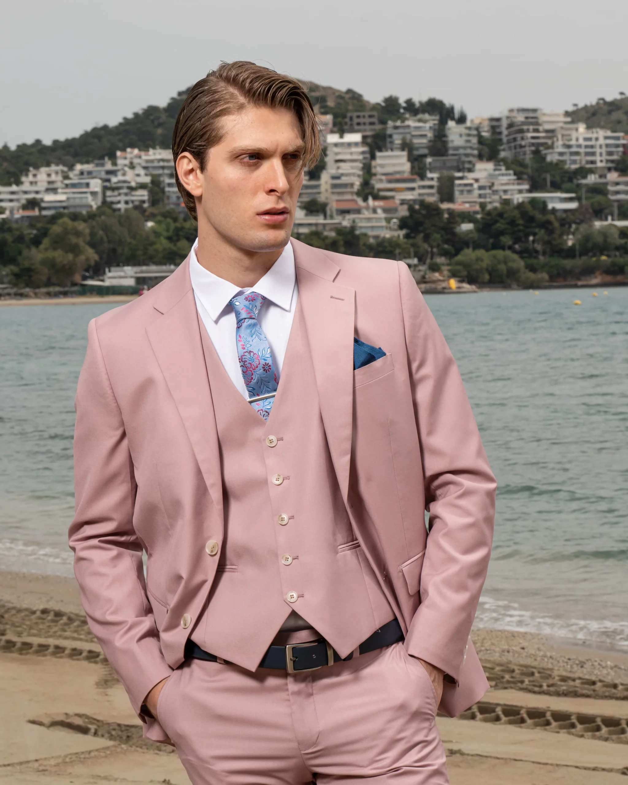 Εξαιρετικής ποιότητας ανδρικό κοστούμι Artisti Italiani σε δροσερό ροζ χρώμα της συλλογής μας SS24.