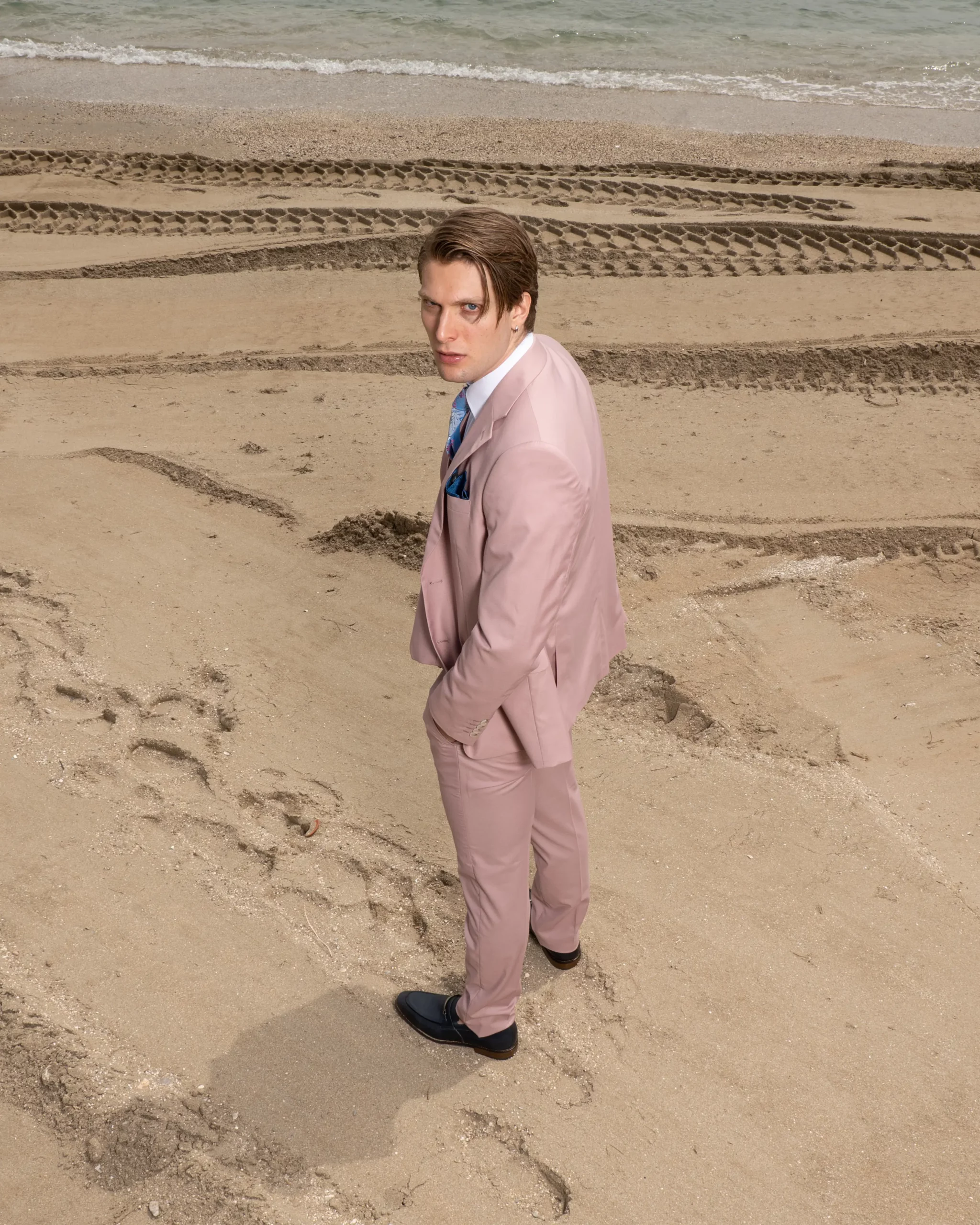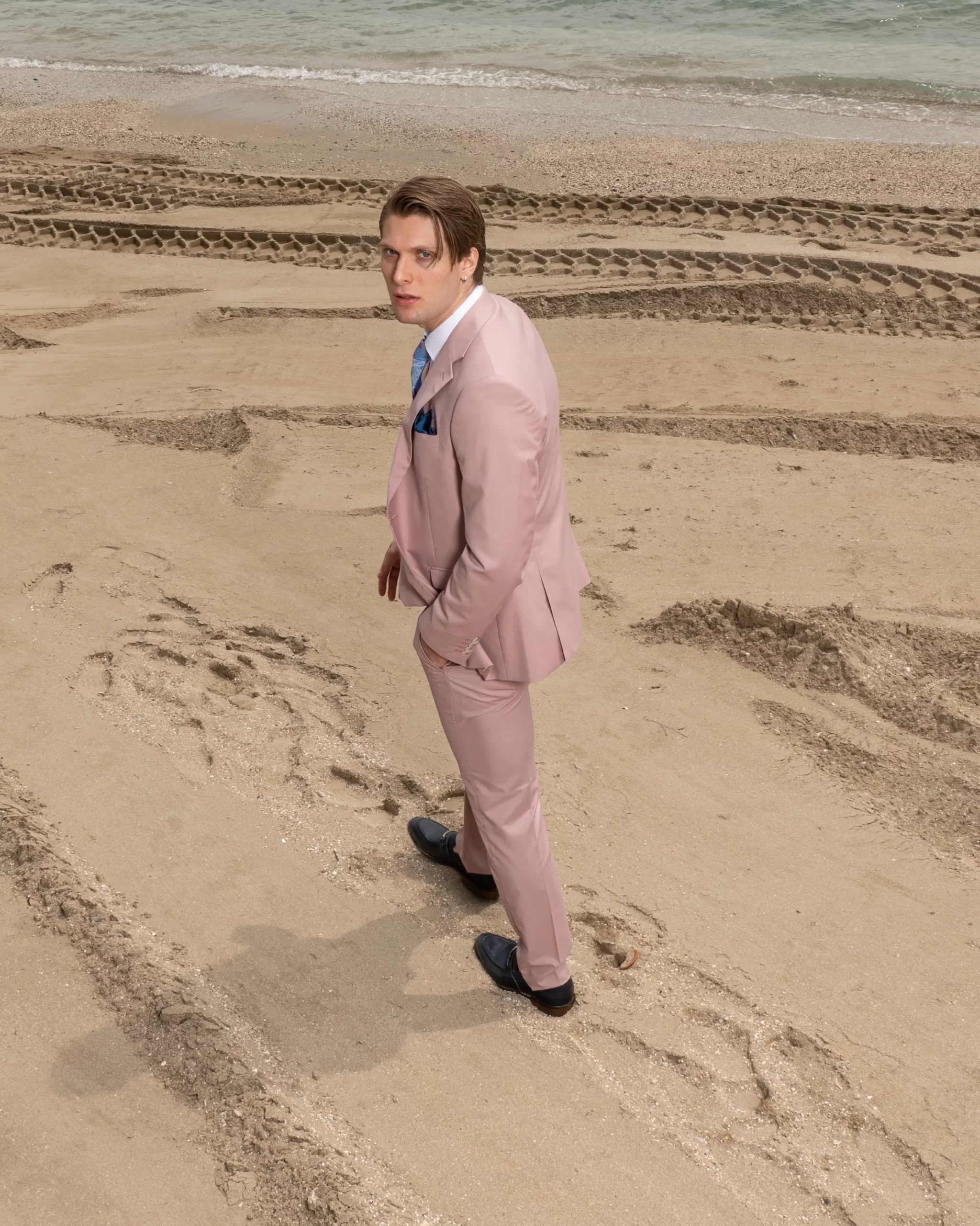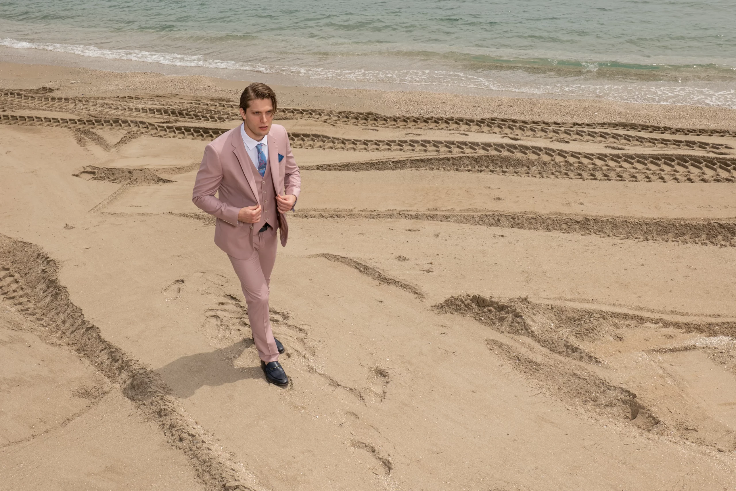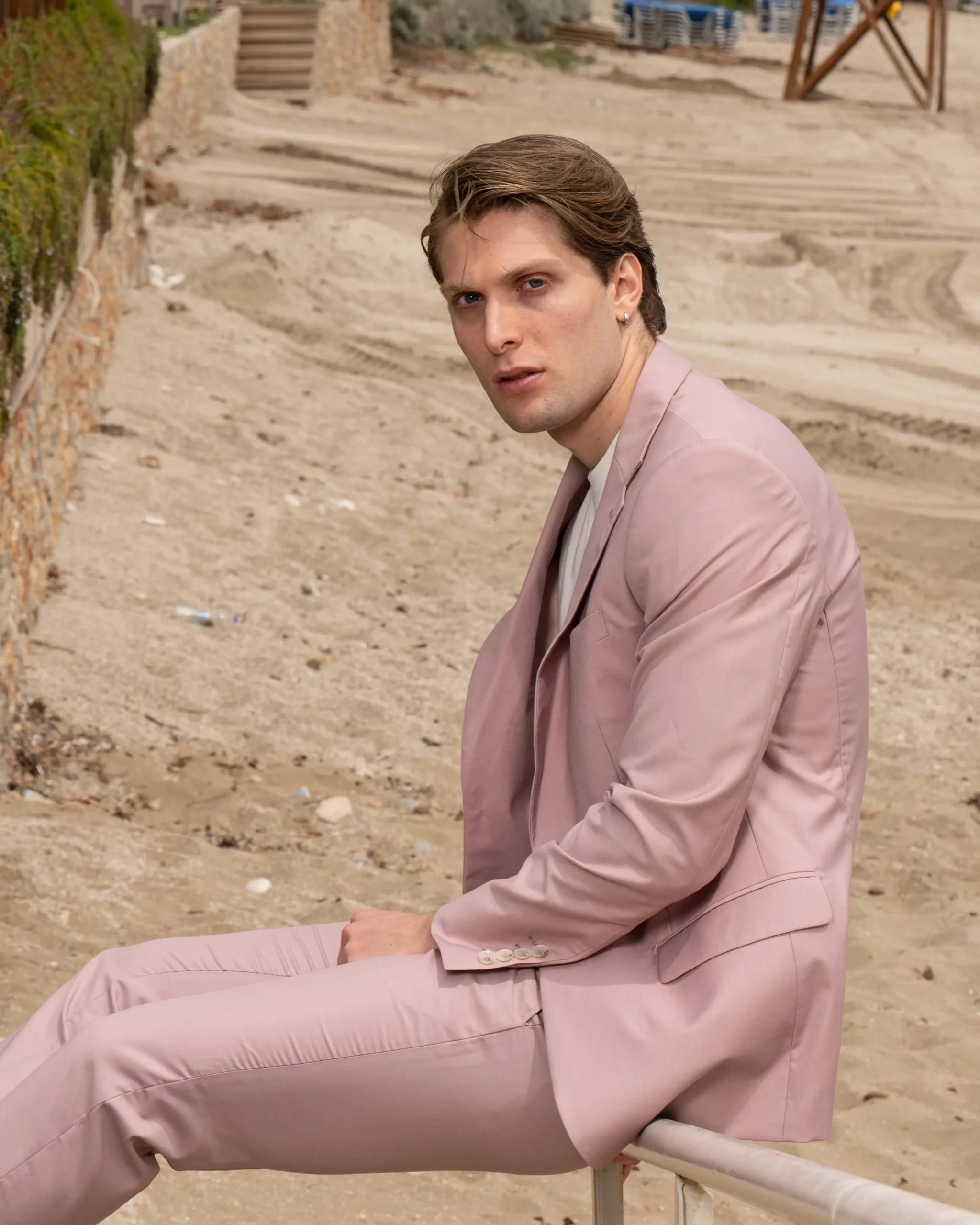Εξαιρετικής ποιότητας ανδρικό κοστούμι Artisti Italiani σε δροσερό ροζ χρώμα της συλλογής μας SS24.