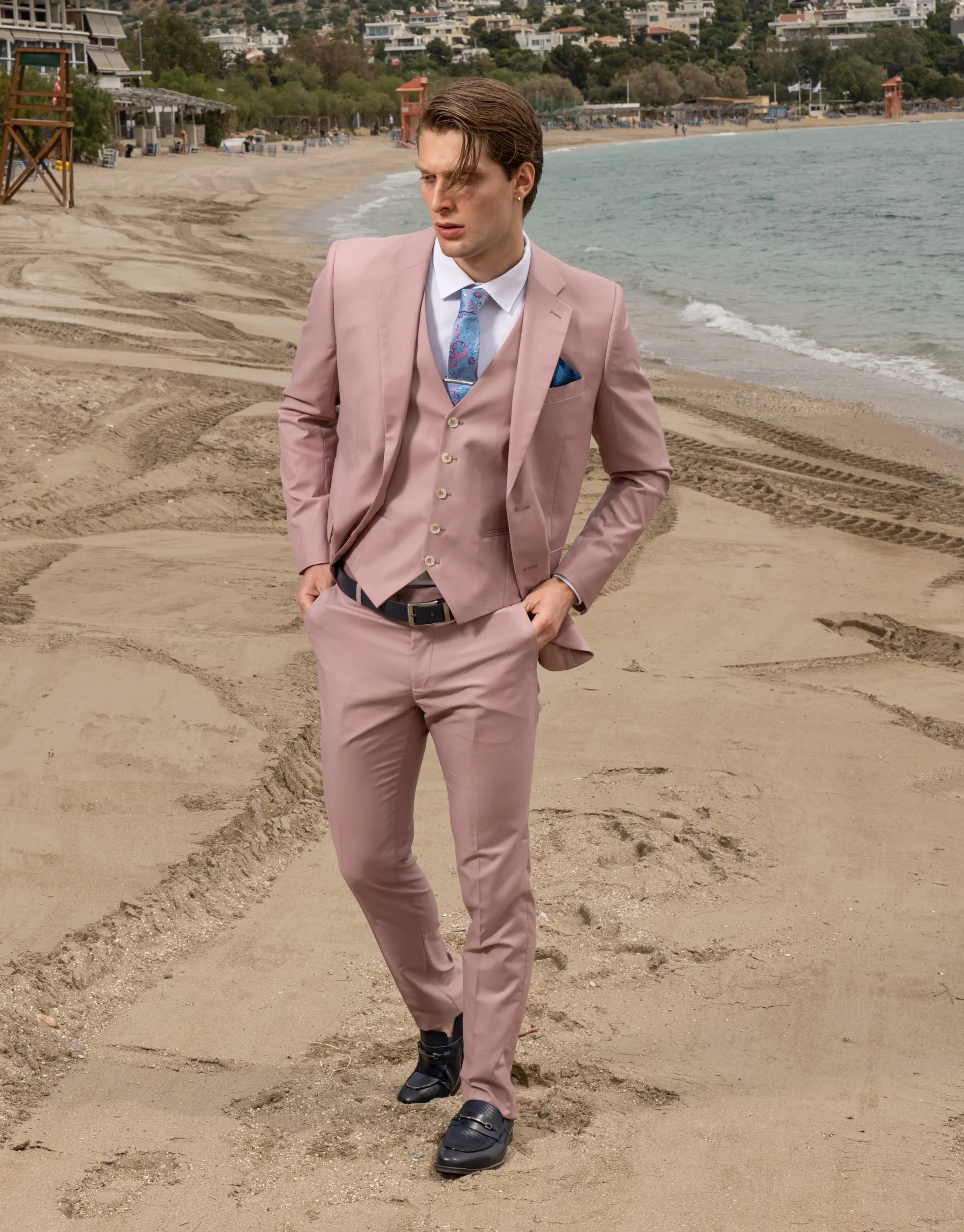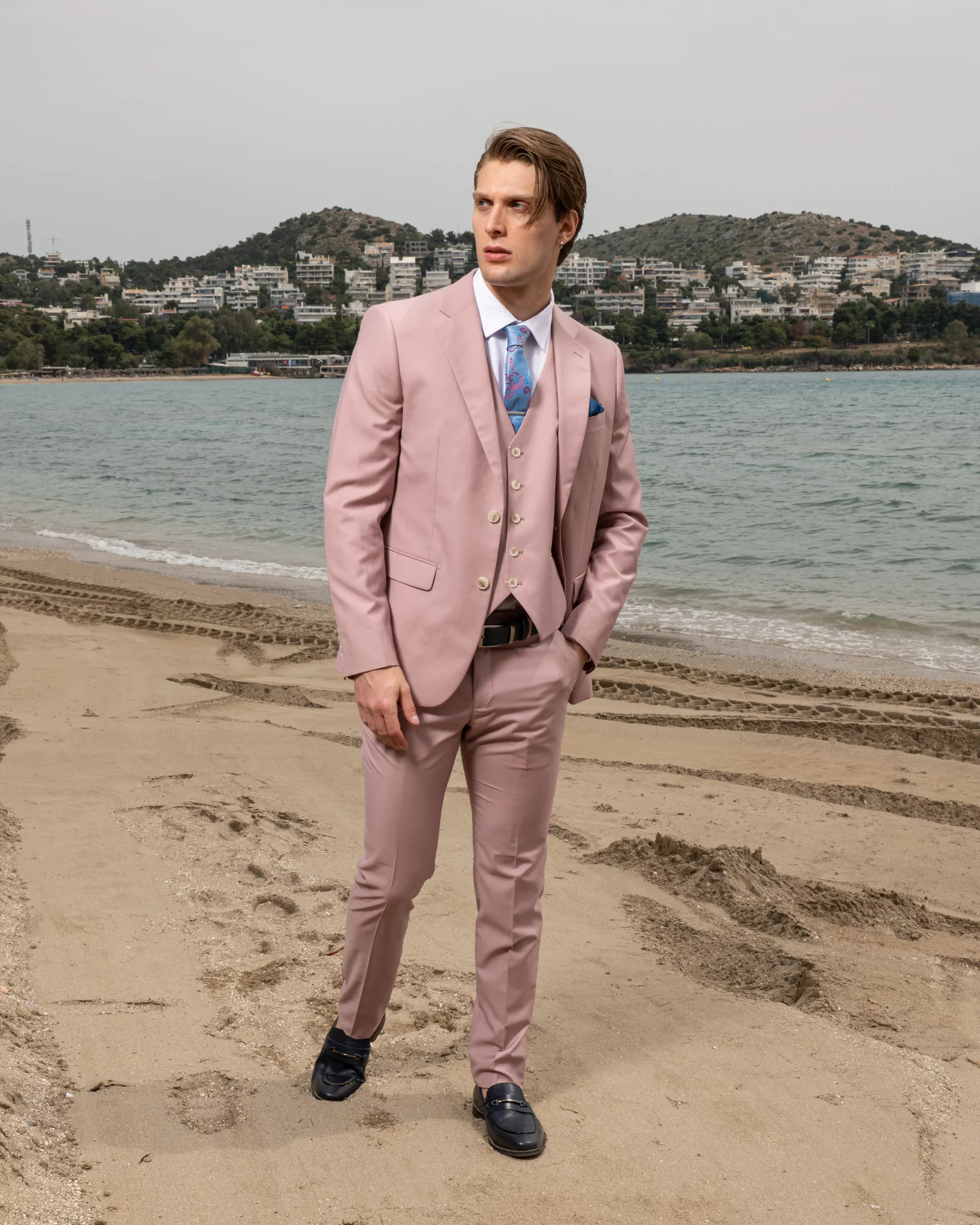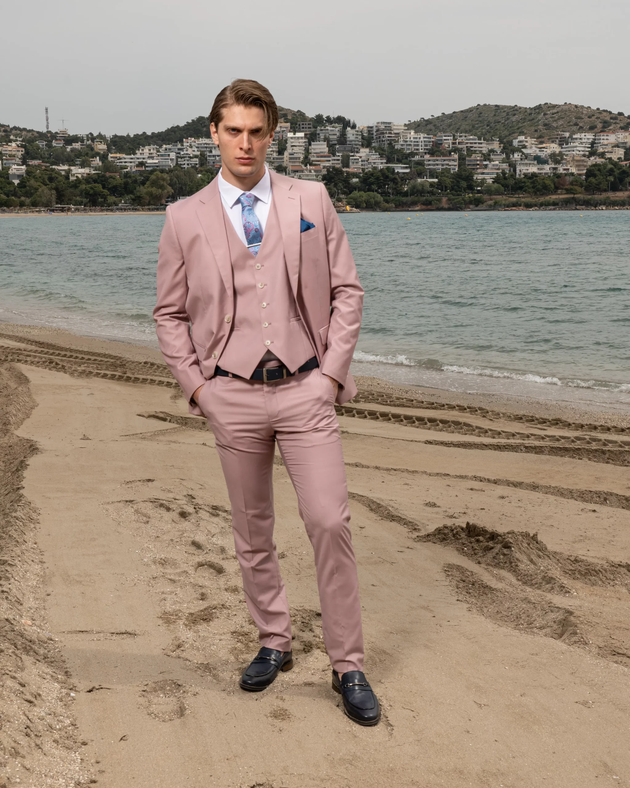 Το κοστούμι είναι κλασσικής ιταλικής ραφής με slim fit γραμμή που κολακεύει τη φιγούρα σας και μπορεί να φορεθεί είτε με το γιλέκο του ή χωρίς γιλέκο για ποιο ανεπίσημες εξόδους.