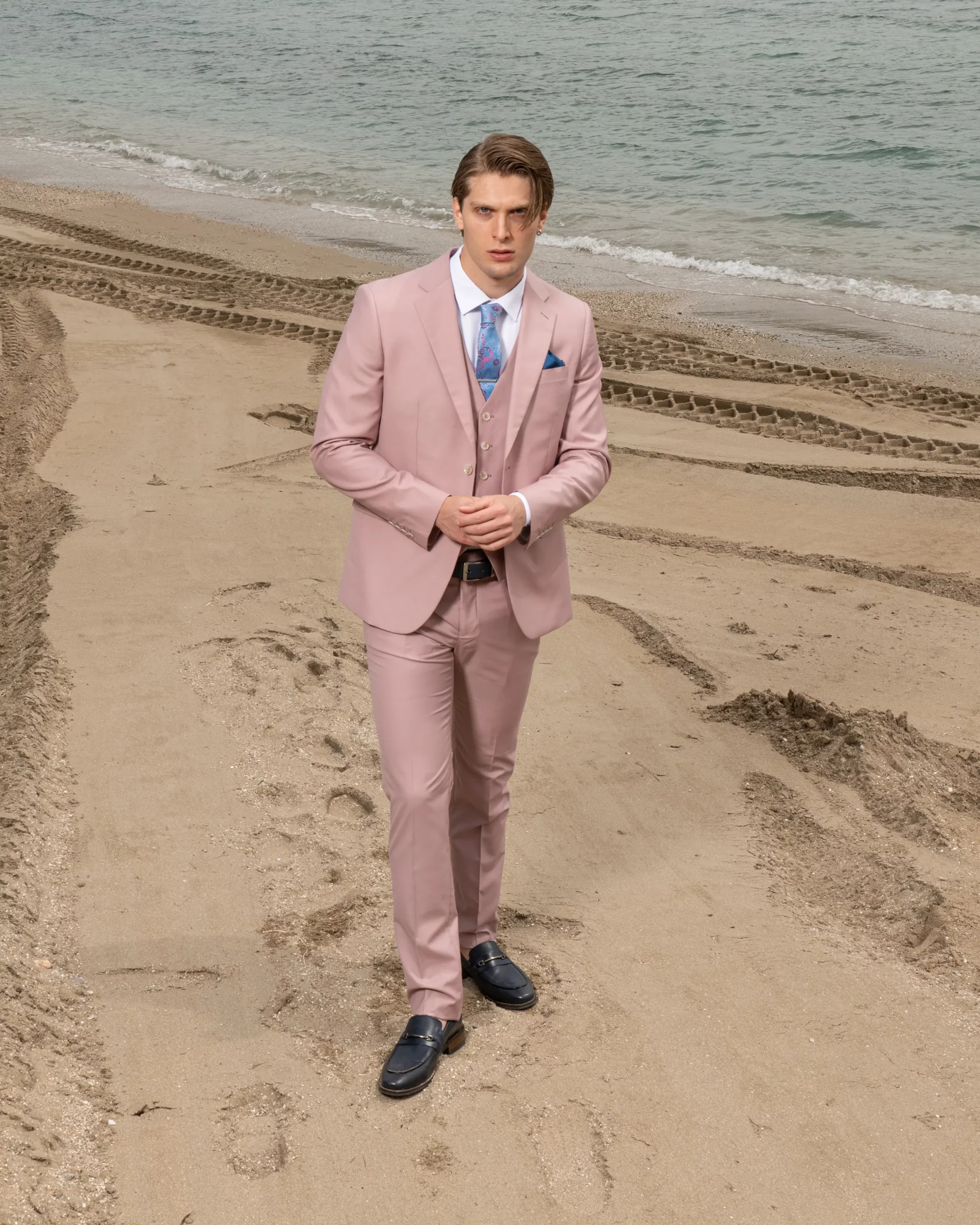 Ανδρικό Slim Fit Κοστούμι Artisti Italiani Με Γιλέκο SS-89.Pink