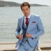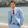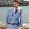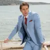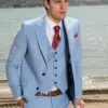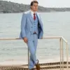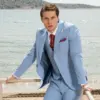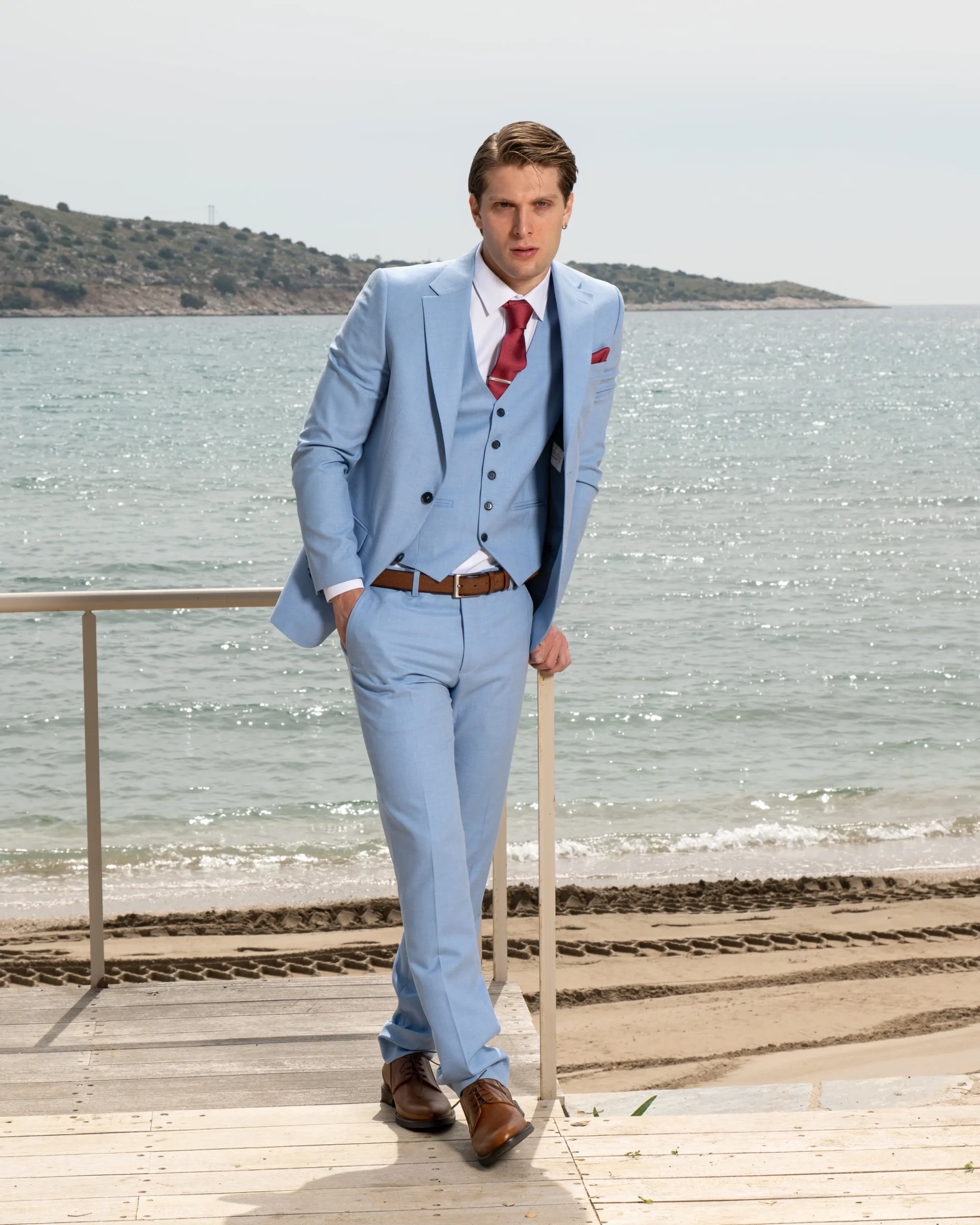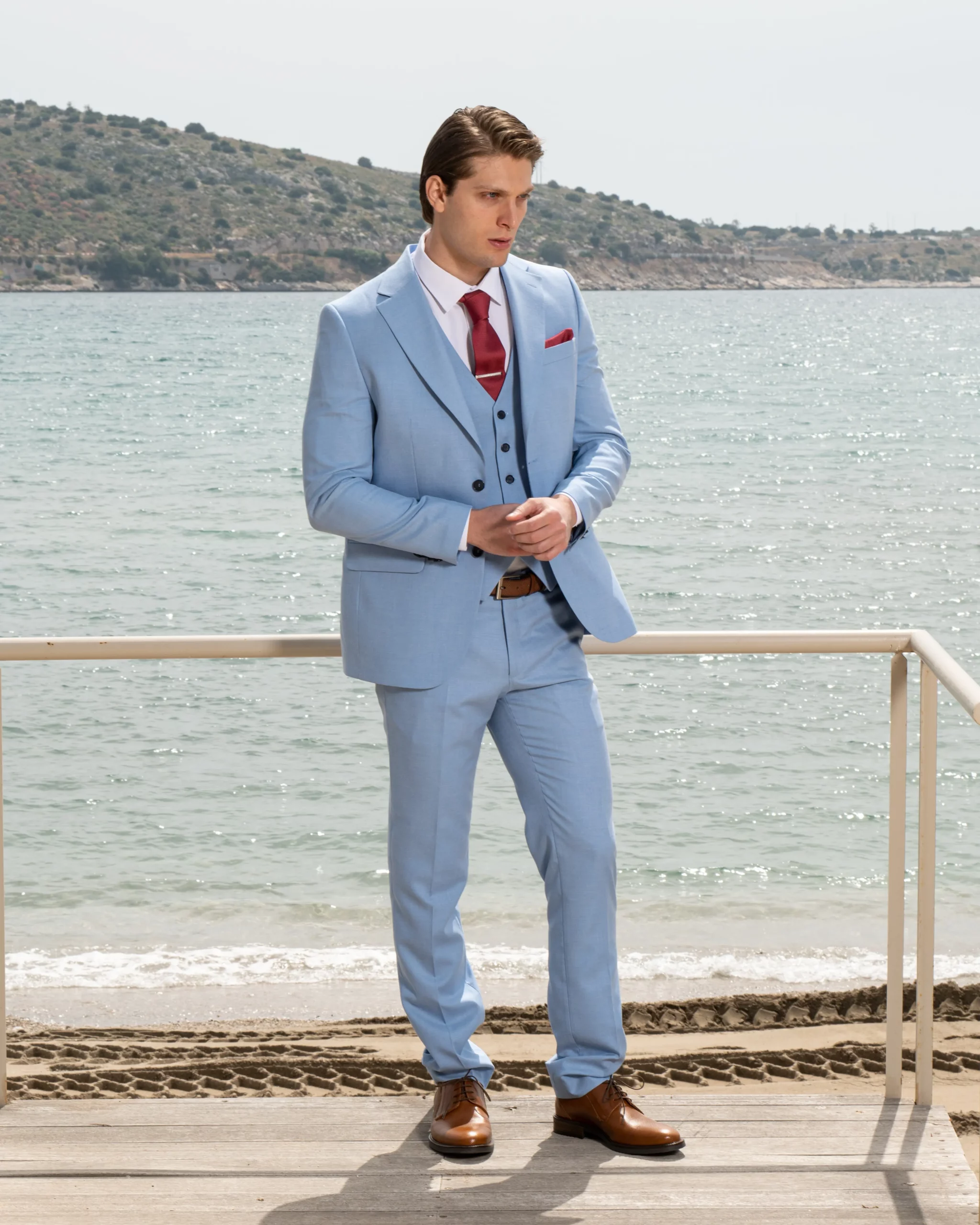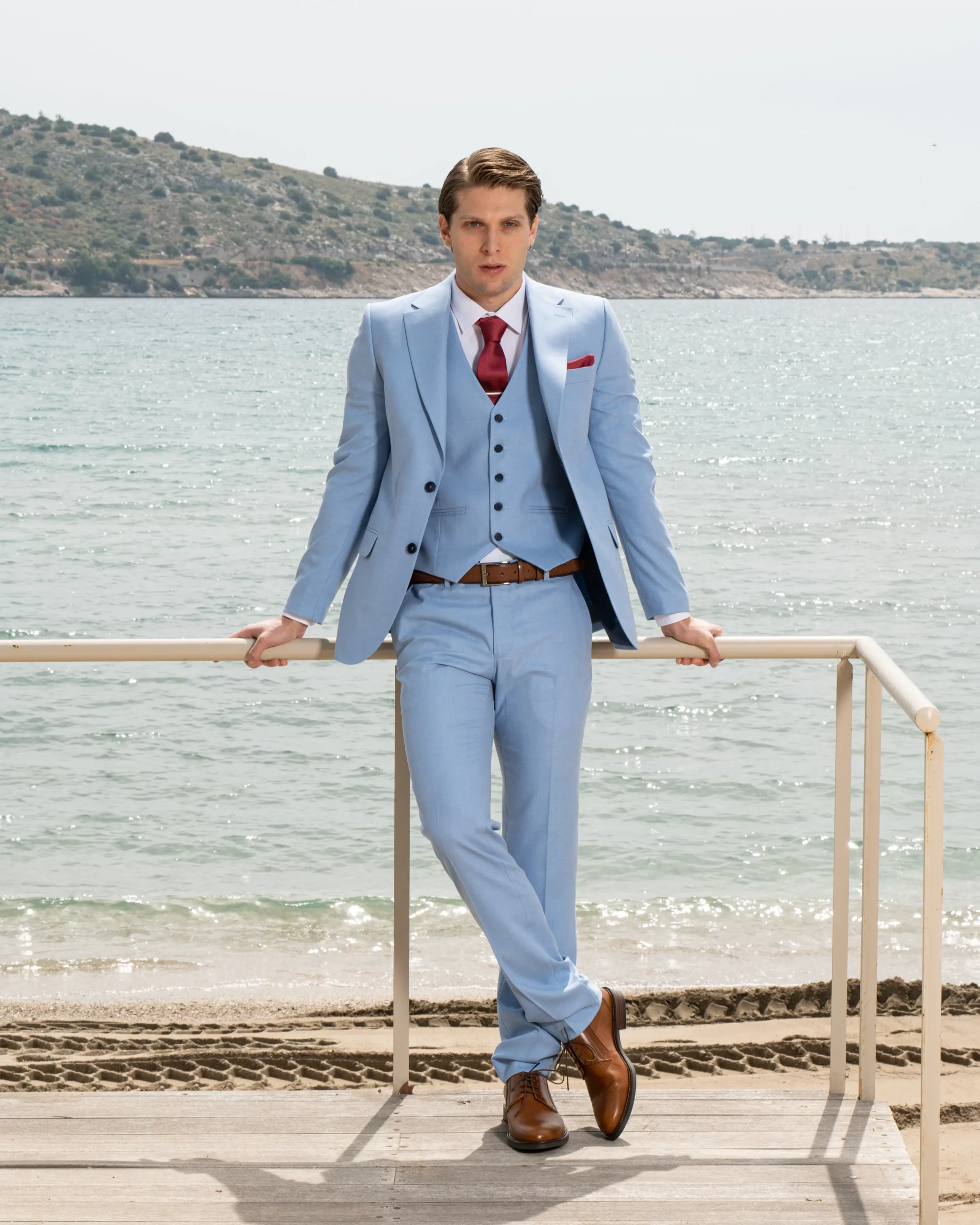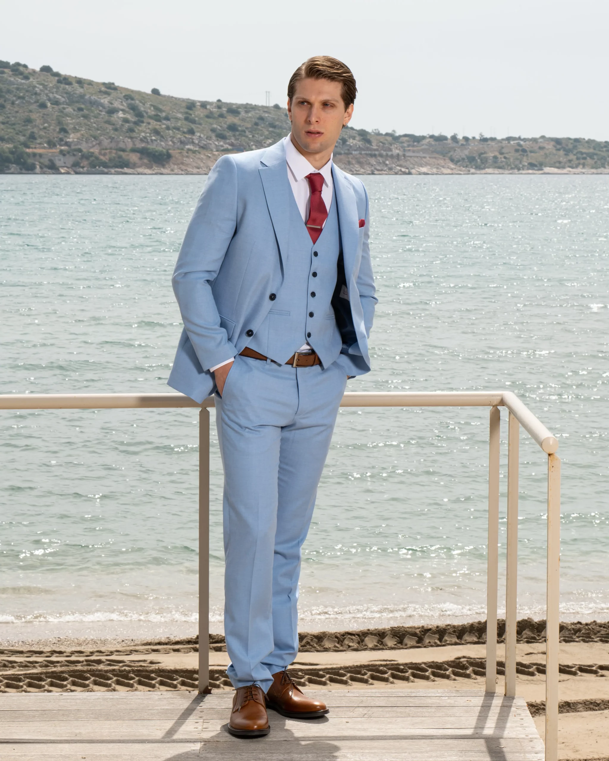 Εξαιρετικής ποιότητας δίκουμπο ανδρικό κοστούμι Tessuti σε σιέλ χρώμα της συλλογής μας SS24.