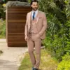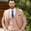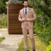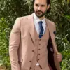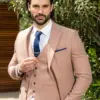 Εξαιρετικής ποιότητας δίκουμπο ανδρικό κοστούμι Tessuti σε μπεζ χρώμα της συλλογής μας SS24.
