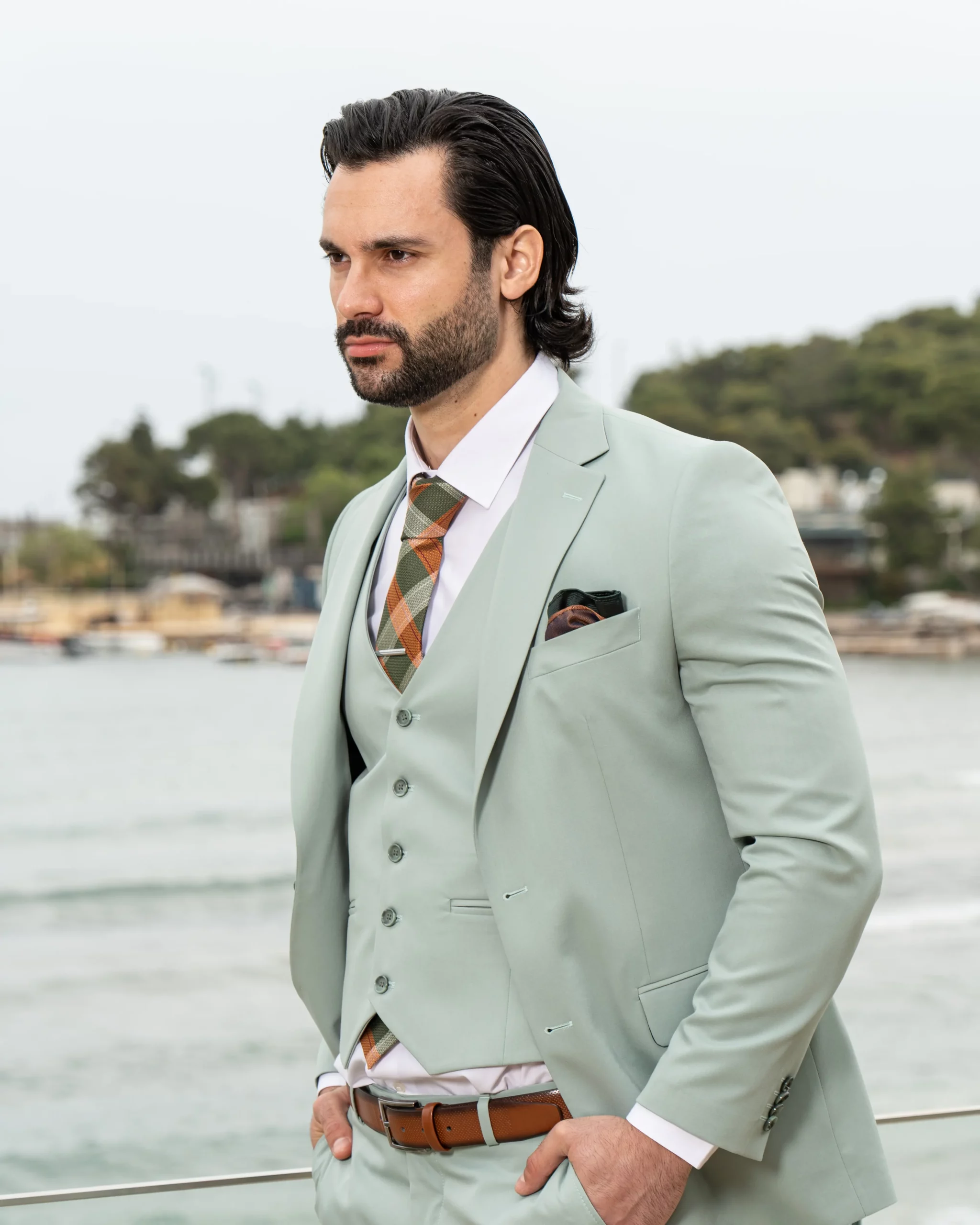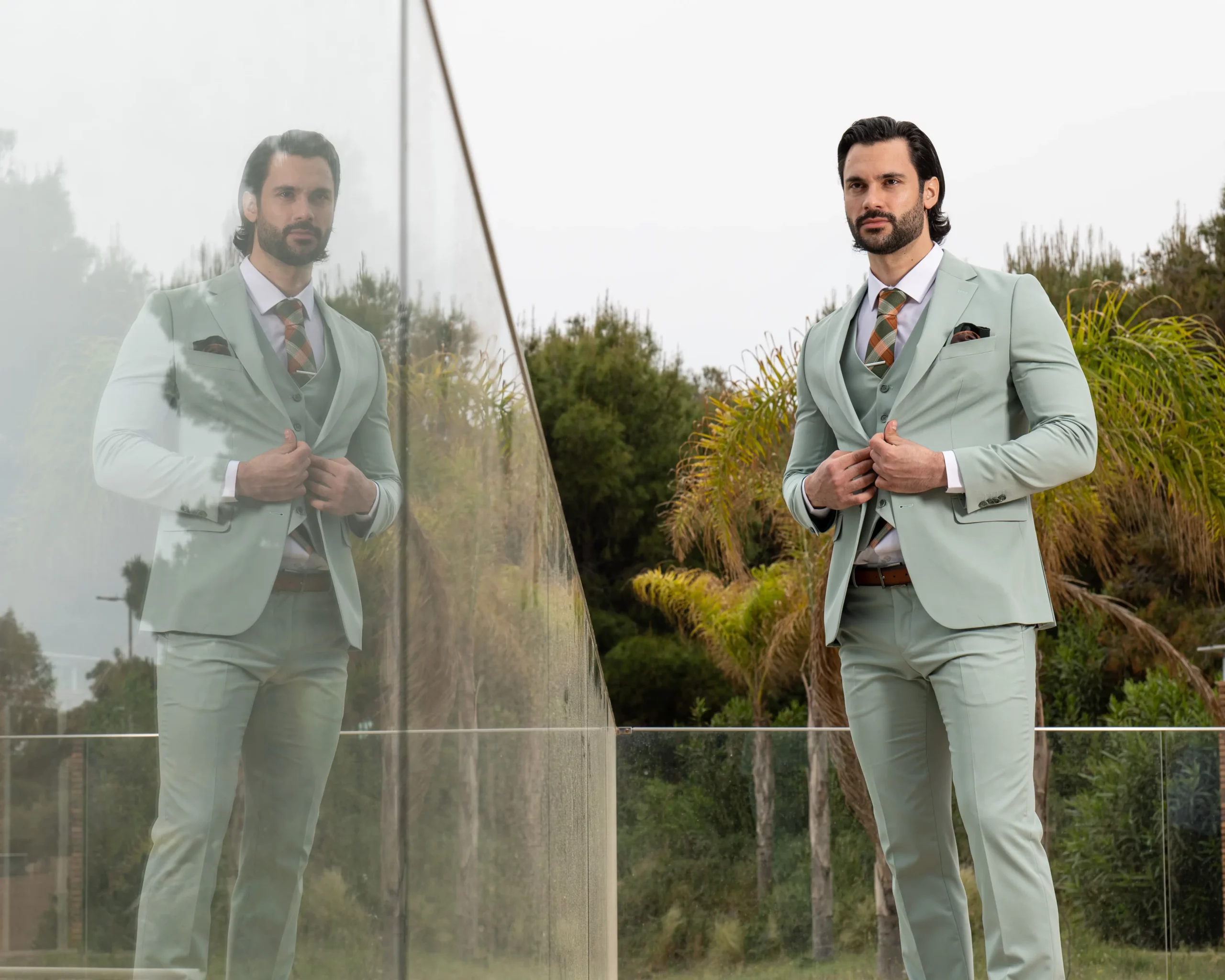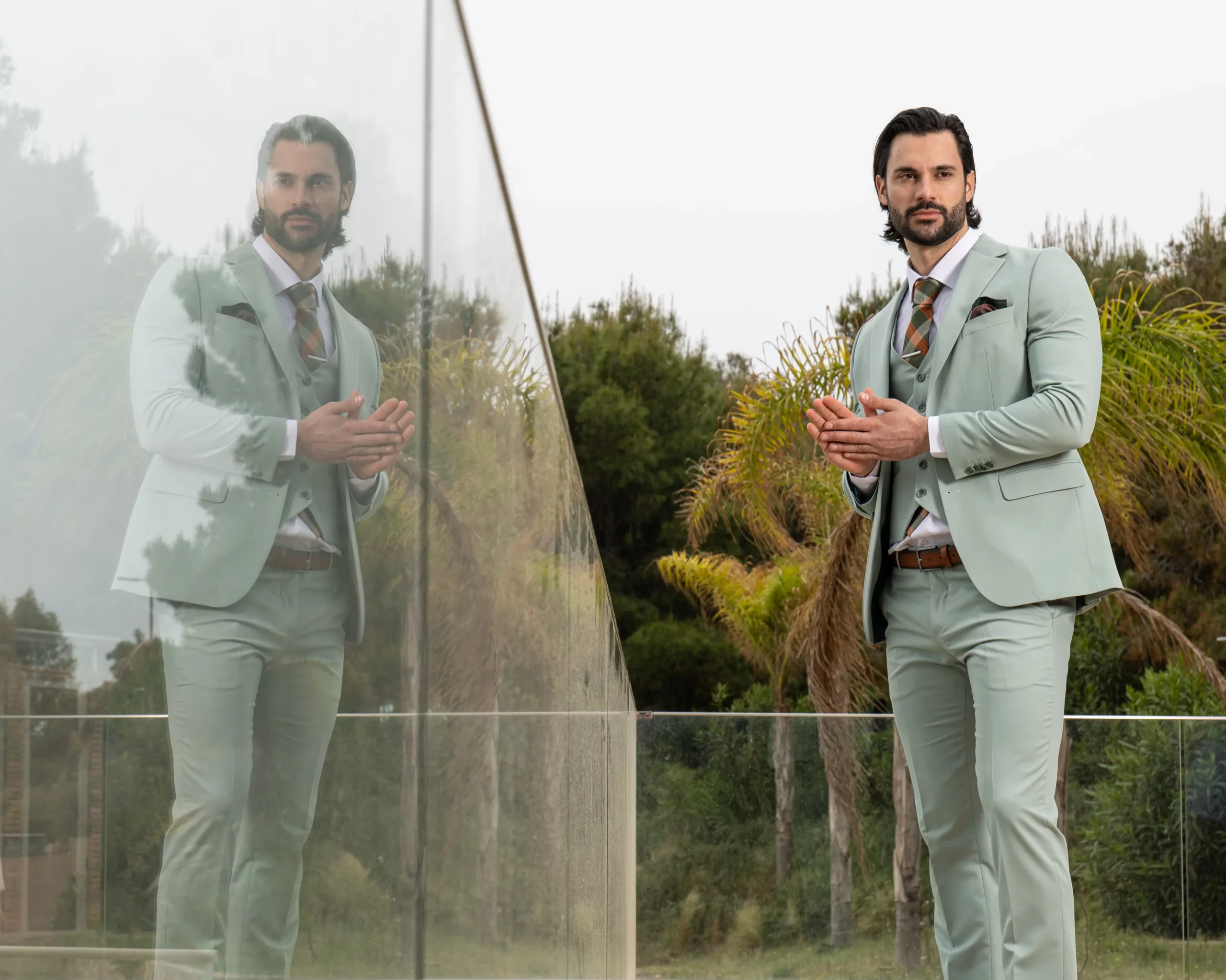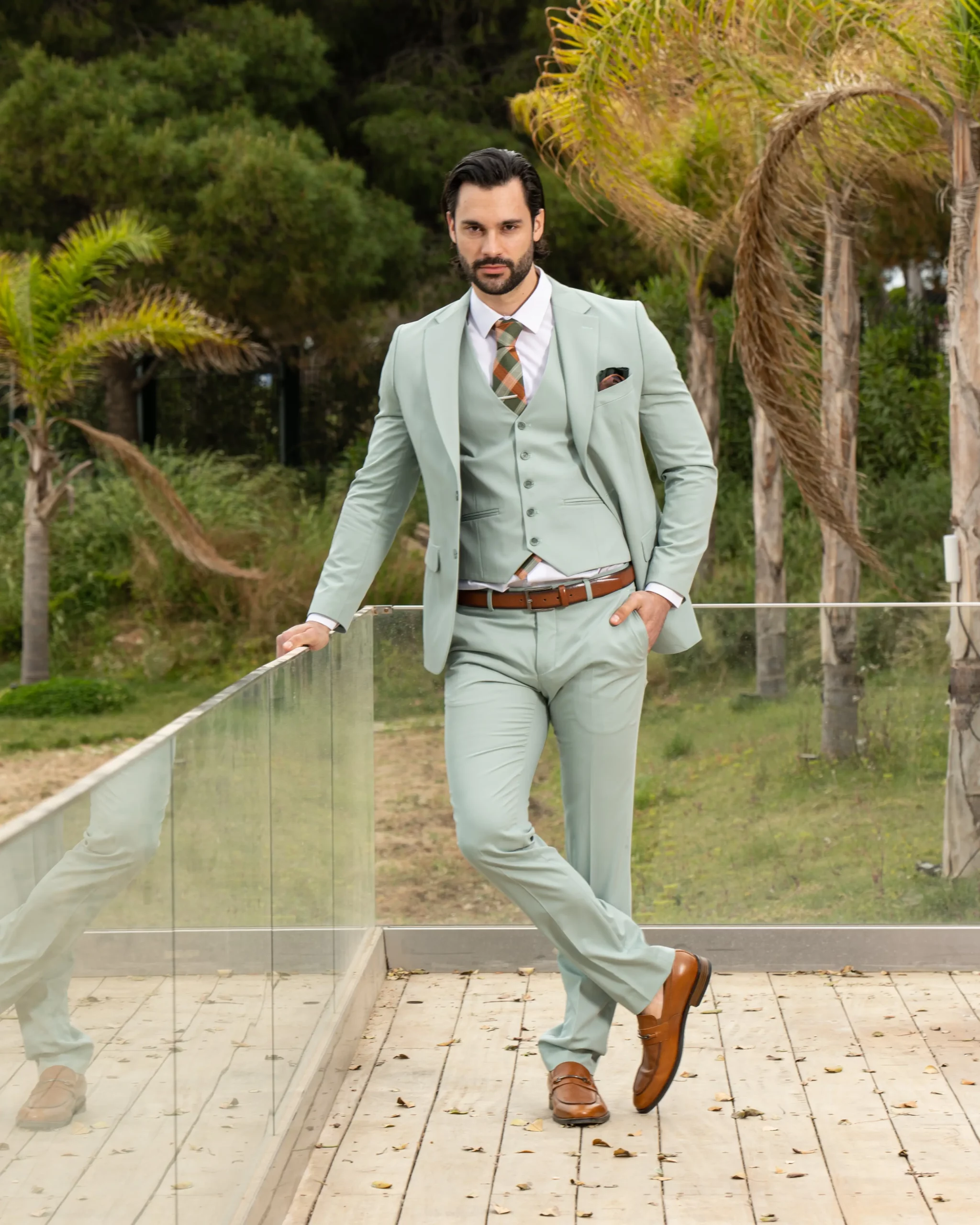 Εξαιρετικής ποιότητας ανδρικό κοστούμι Tessuti σε χρώμα μέντα της συλλογής μας SS24.