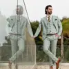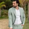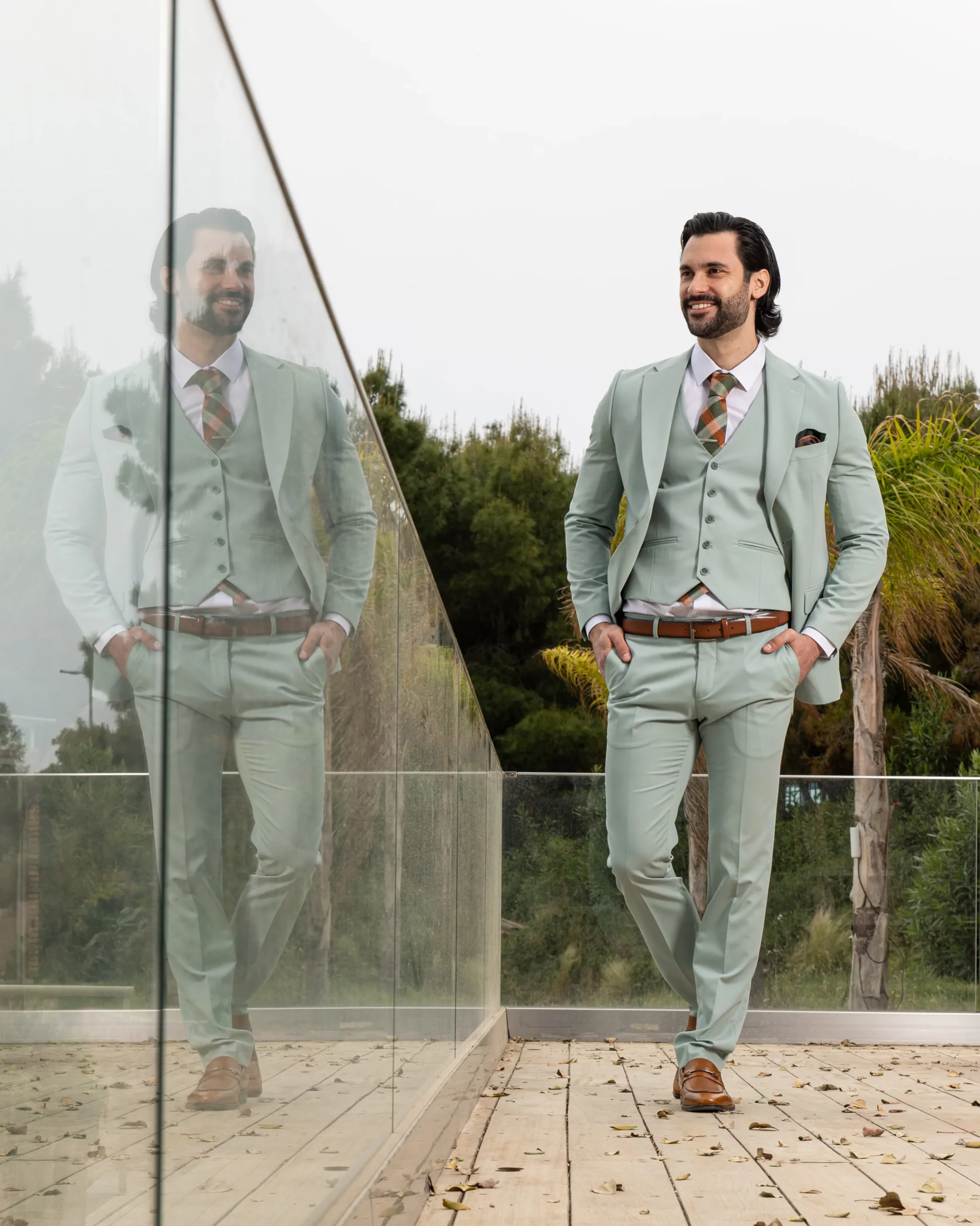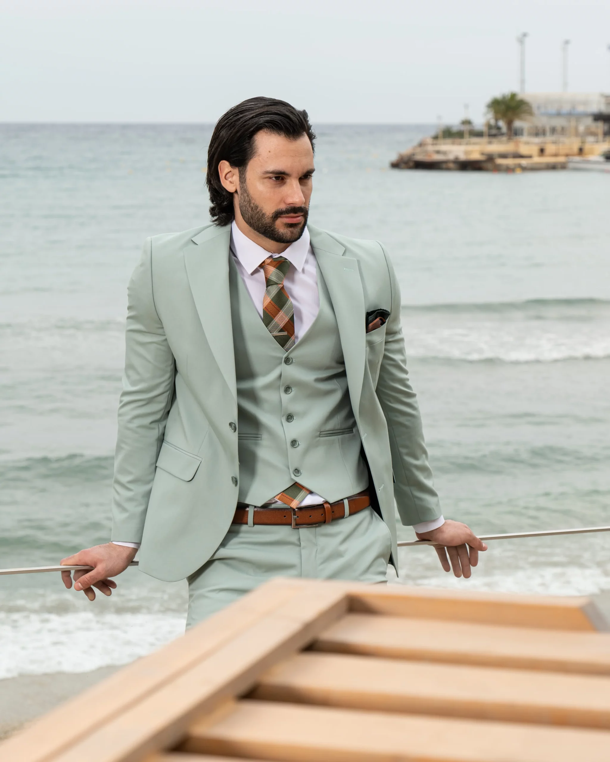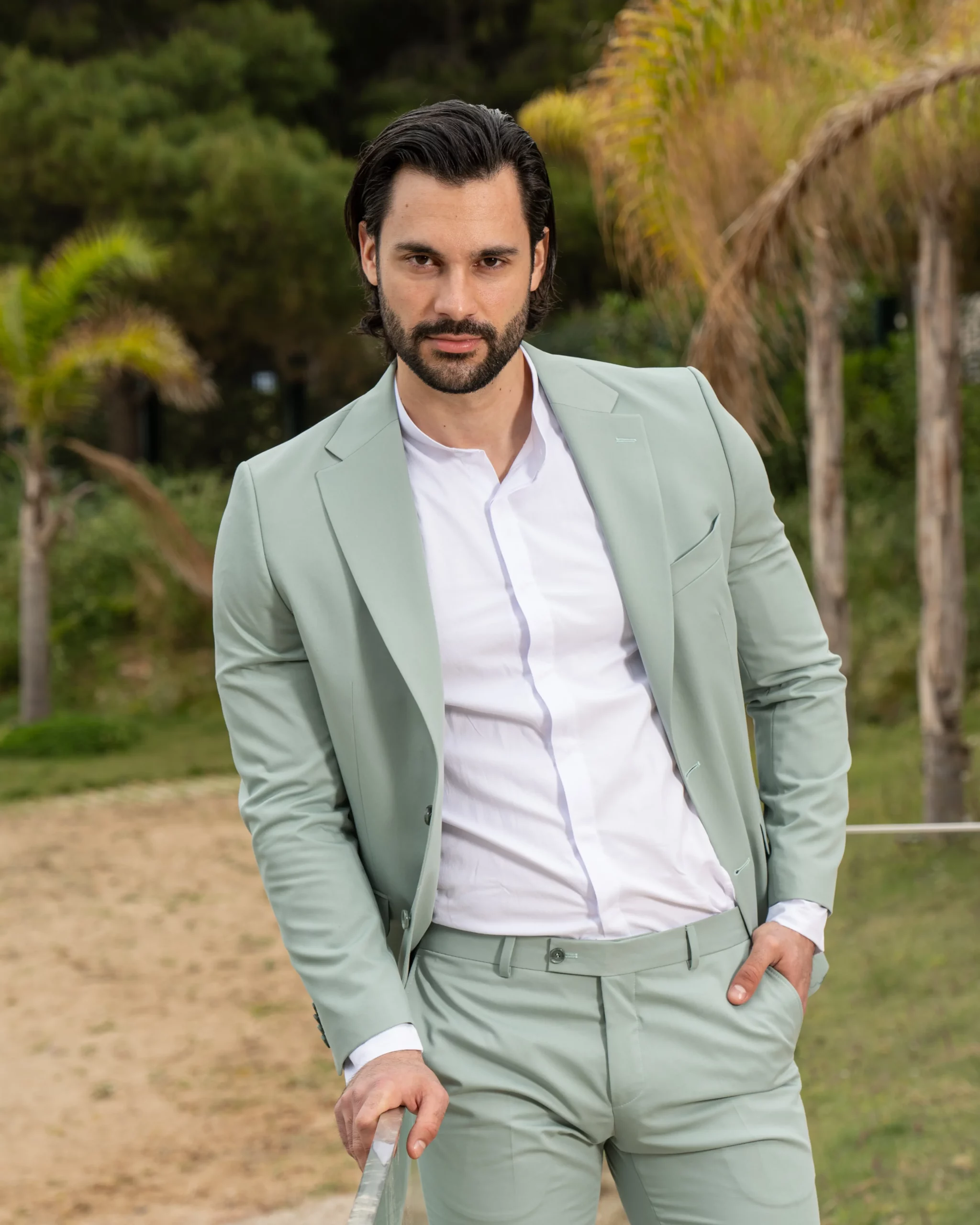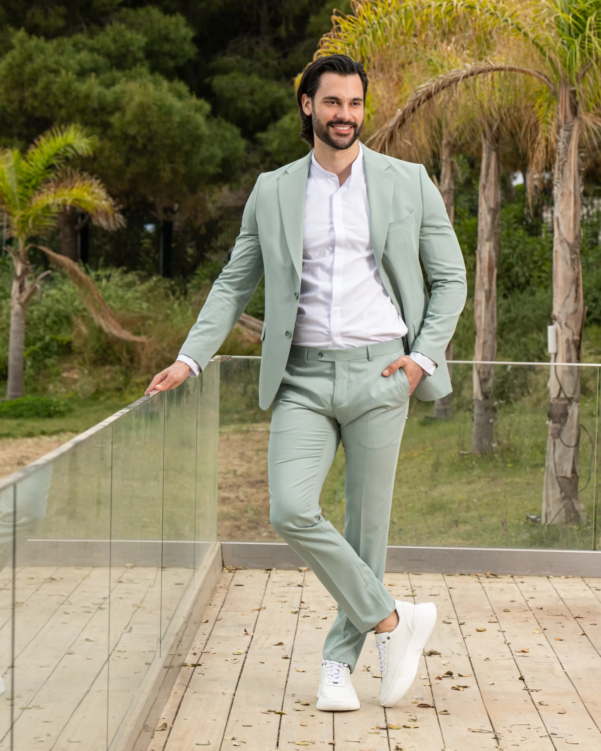 Το χρώμα της μέντας δίνει ένα δροσερό τόνο στο σακάκι και παντελόνι, ενώ η slim fit γραμμή του αγκαλιάζει το σώμα και κολακεύει τον κάτοχο.