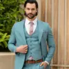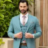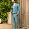 Εξαιρετικής ποιότητας δίκουμπο ανδρικό κοστούμι Tessuti σε σιέλ χρώμα της συλλογής μας SS24.
