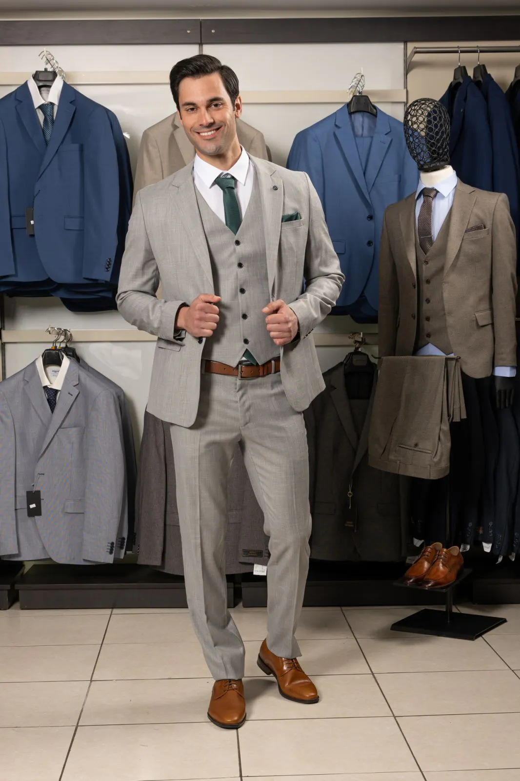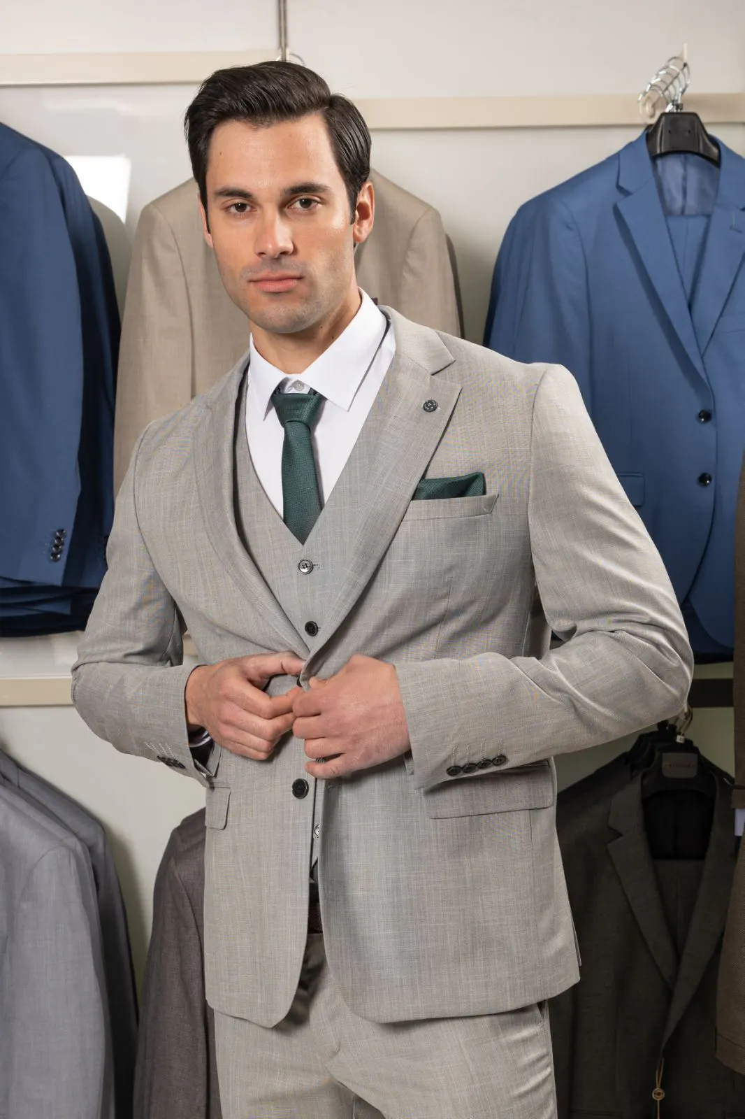 Κοστούμι slim fit με γιλέκο σε γκρι χρώμα