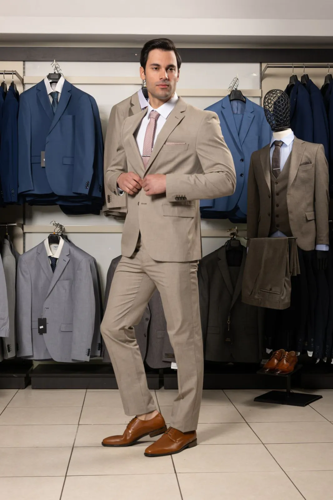Κοστούμι Μπεζ στενής γραμμής #128