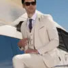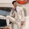 Ένα υπέροχο κοστούμι στην πιο γλυκιάαπόχρωση του μπεζ. Η γραμμή είναι μοντέρνα slim fit και η τιμή αφορά σακάκι, παντελόνι και γιλέκο.
