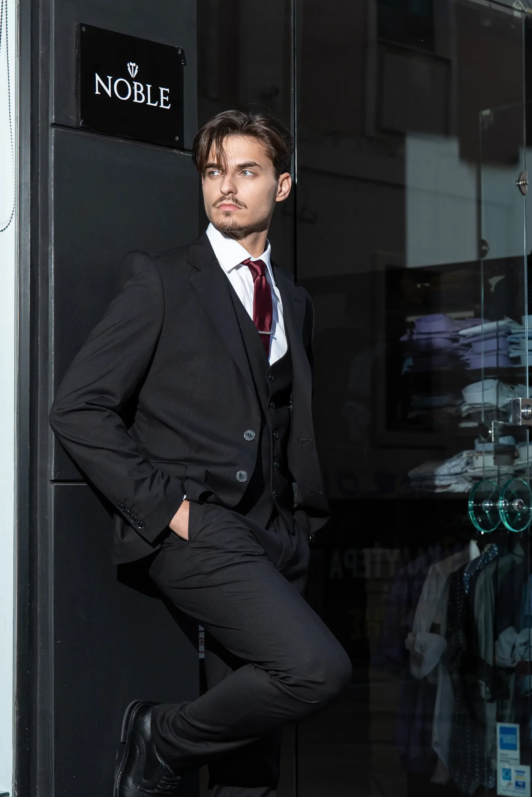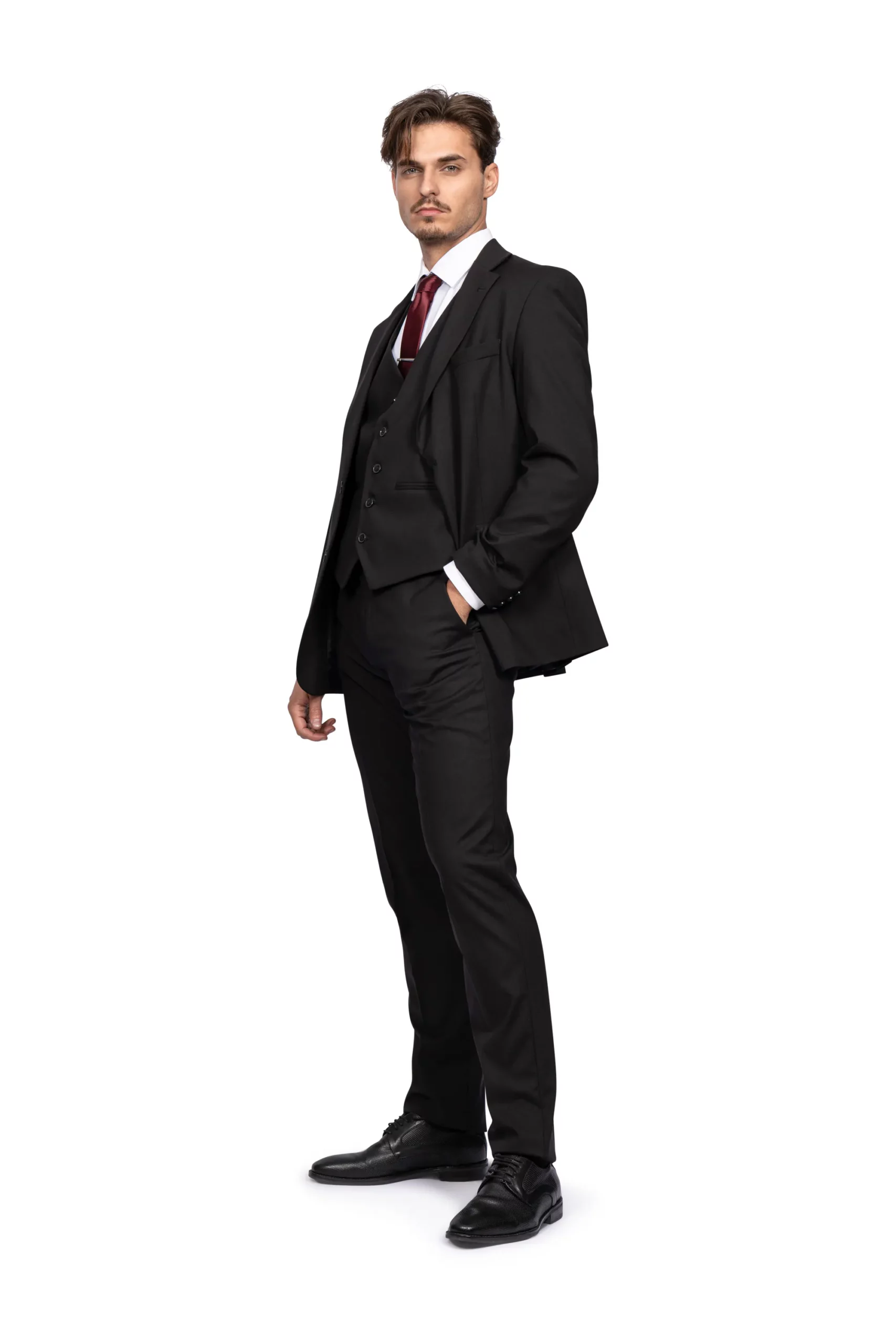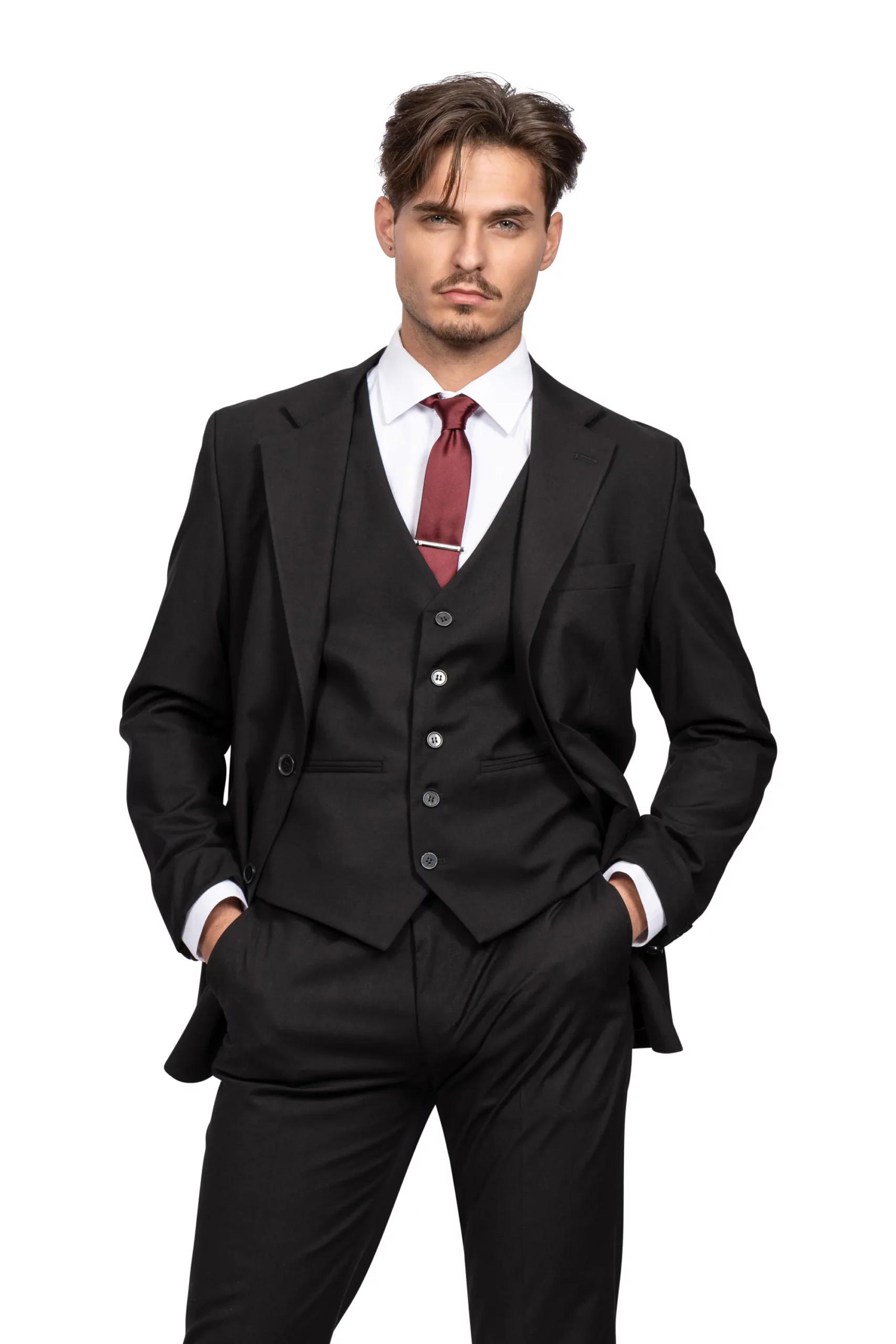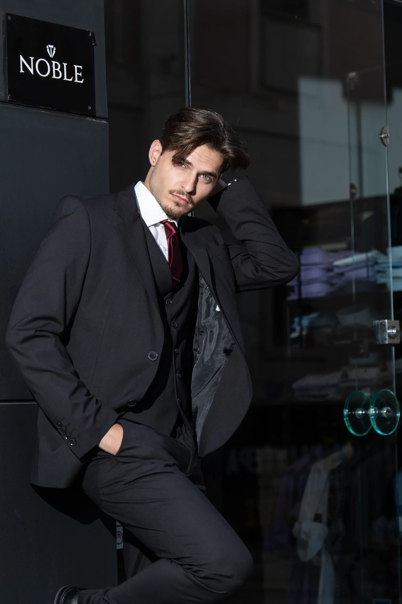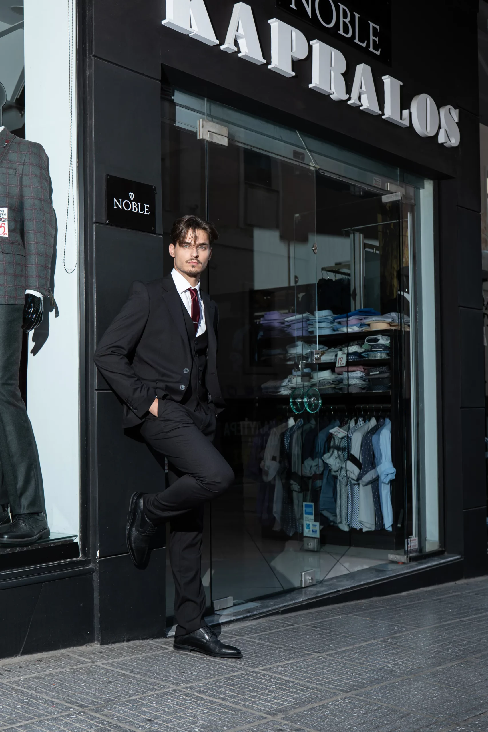 Κοστούμι Ανδρικό Μαύρο Με Μαύρο Γιλέκο 153