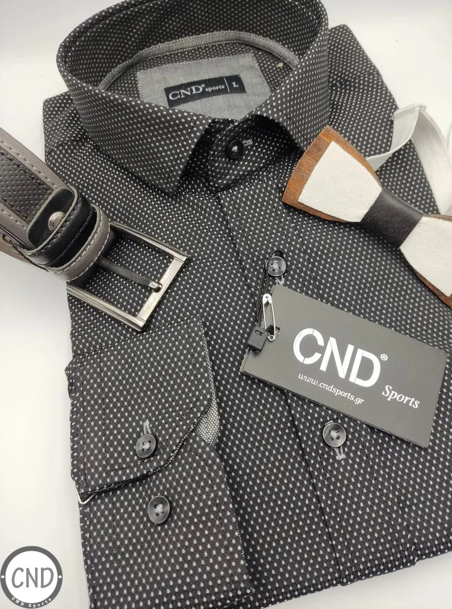 Ανδρικό Πουκάμισο της σειράς CND Sports από Canadian Country σε γραμμή Slim Fit και χρώμα Μαύρο Πουά, από 100% βαμβάκι.