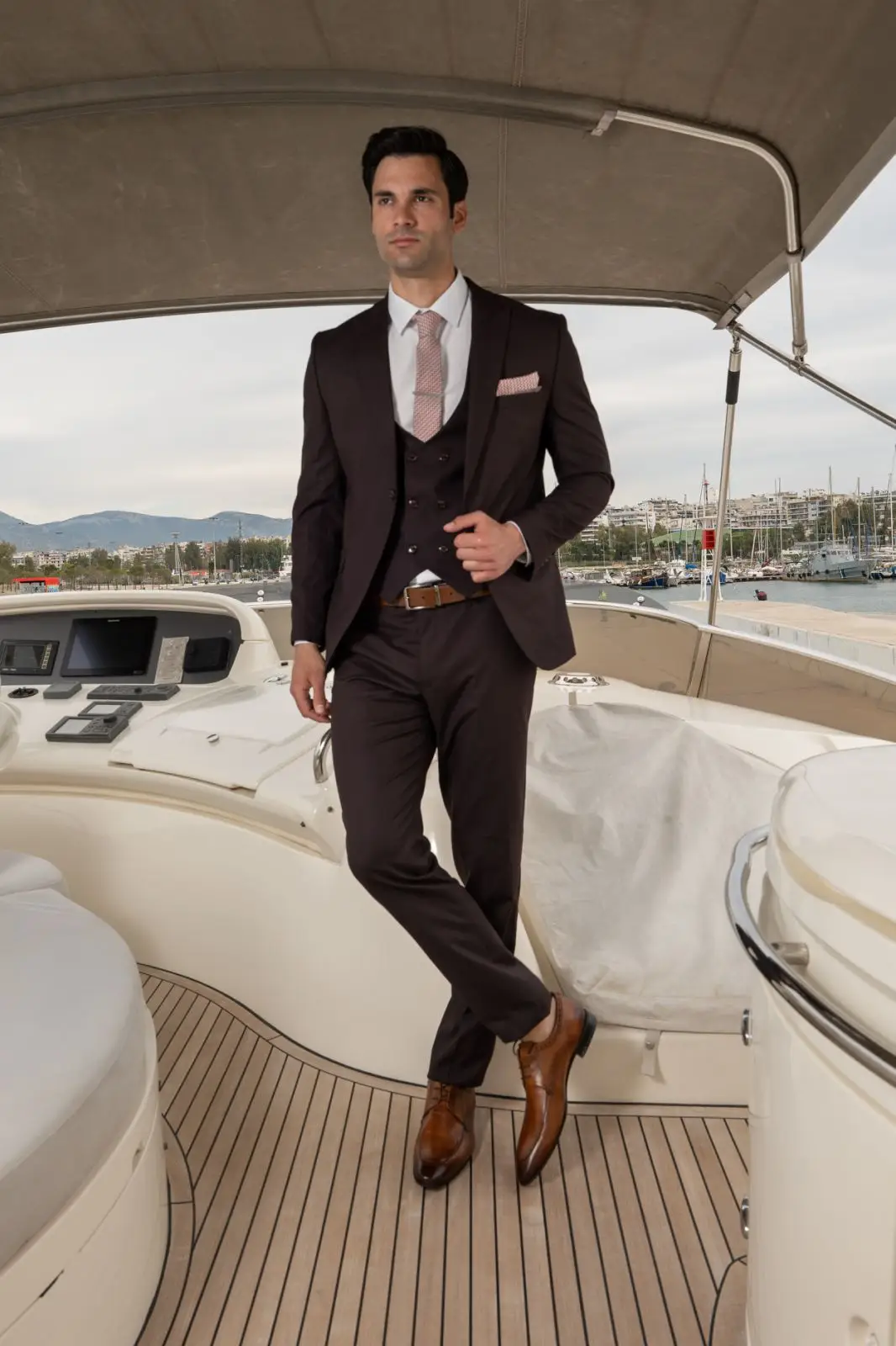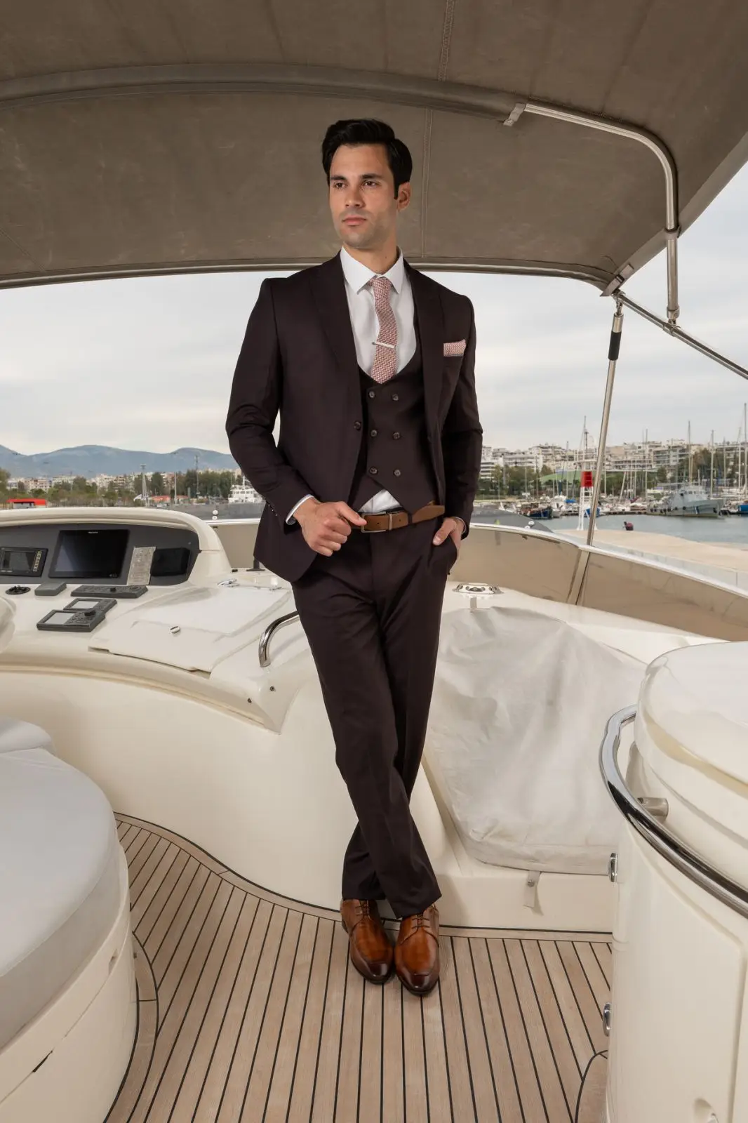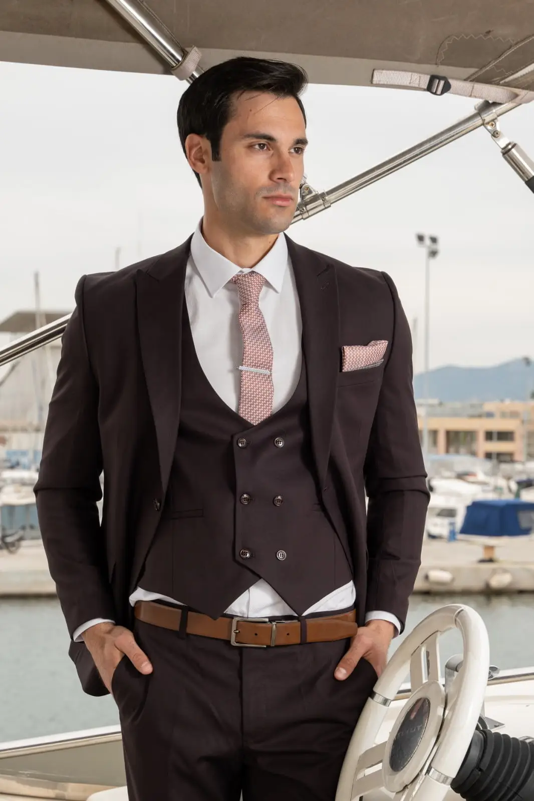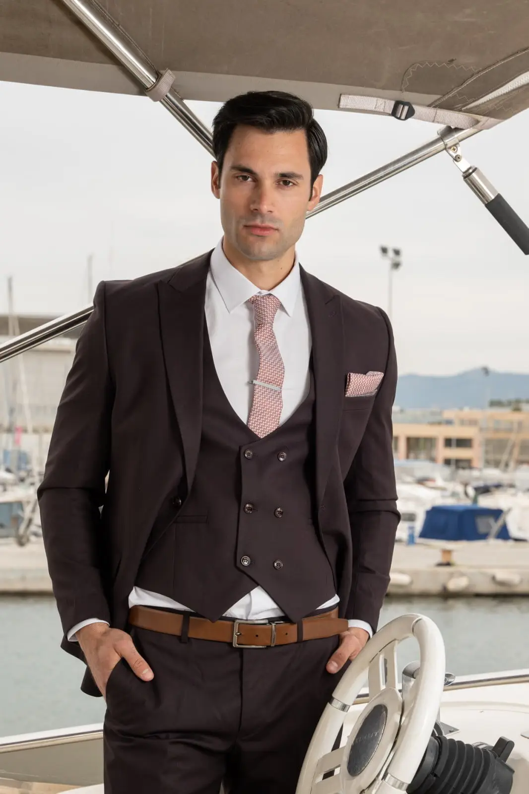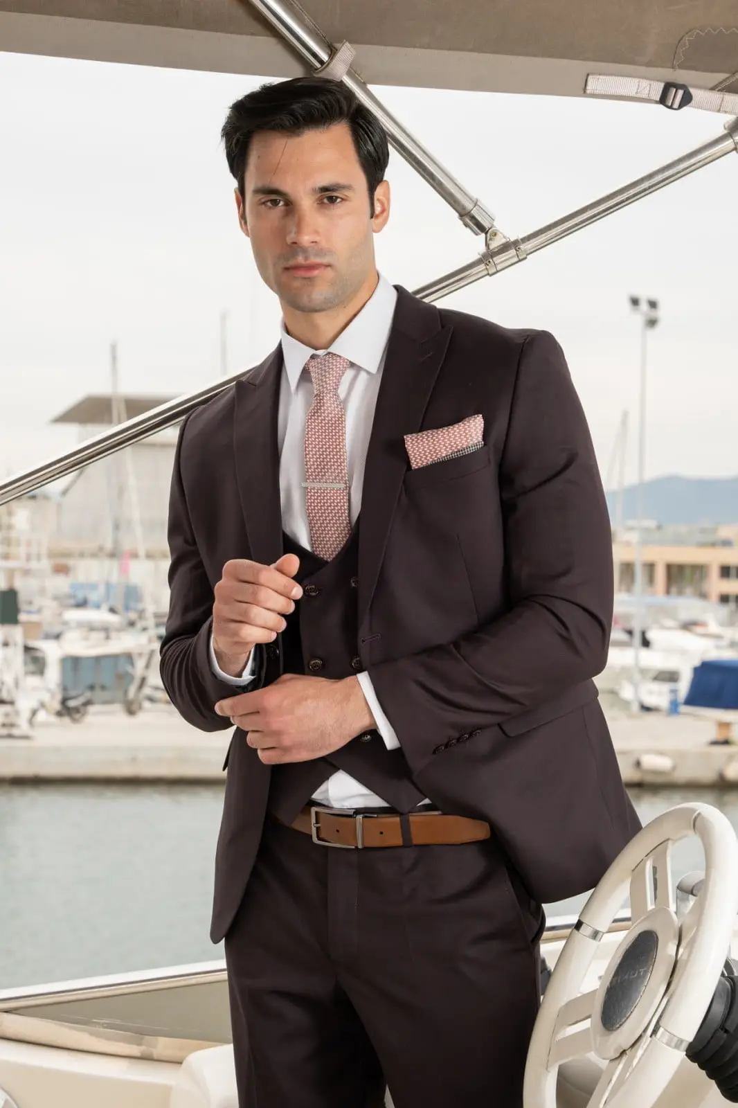 Men's Bordeaux Suit with Vest Senso Diverso S24-45