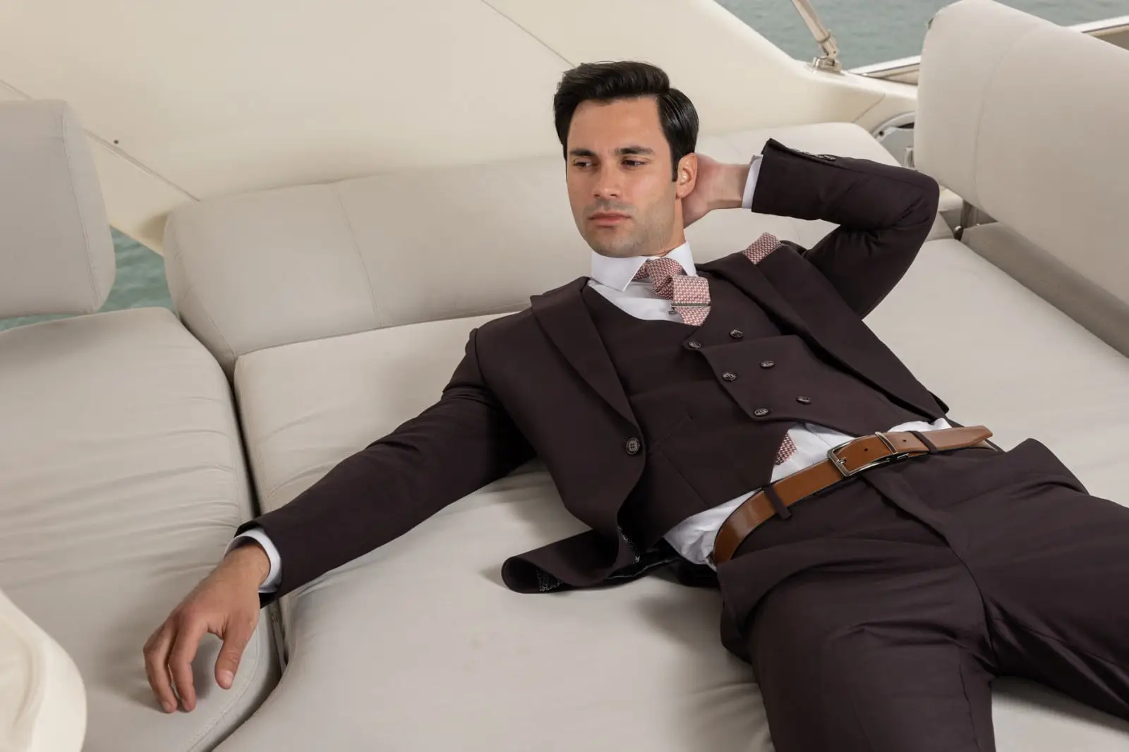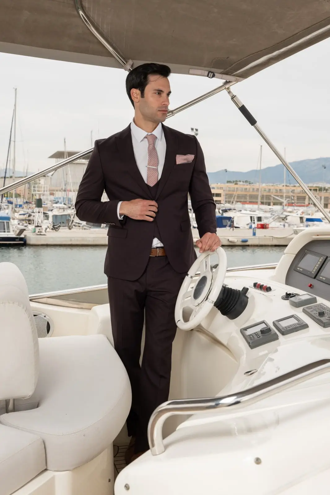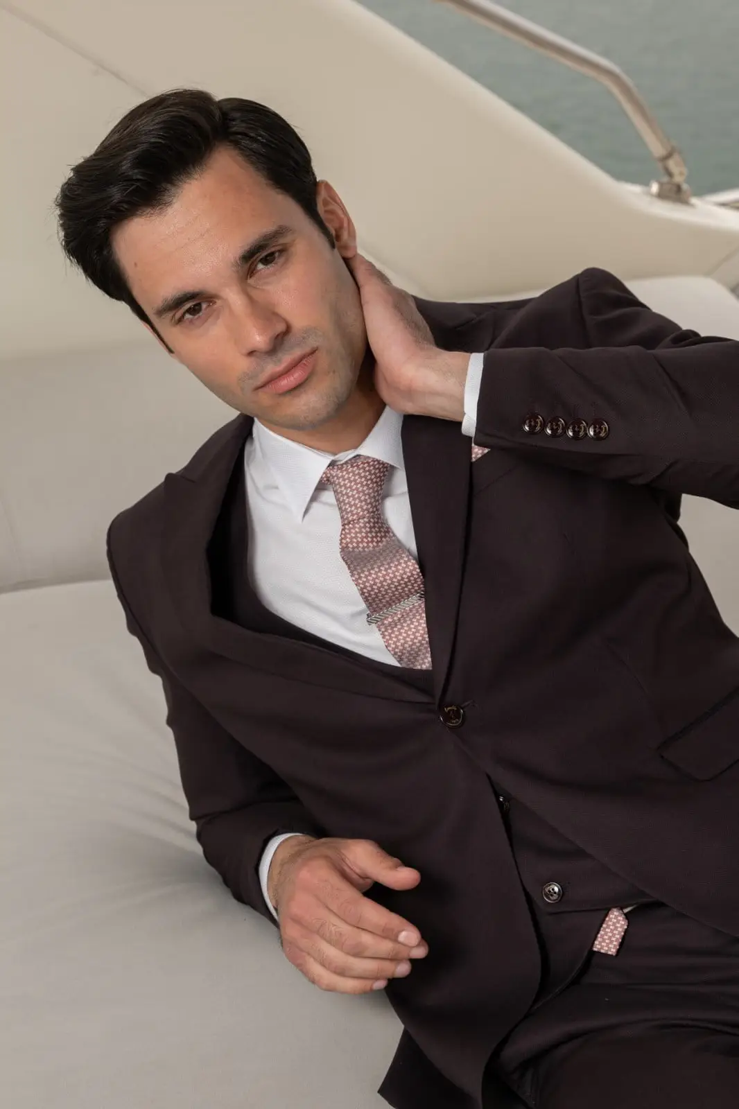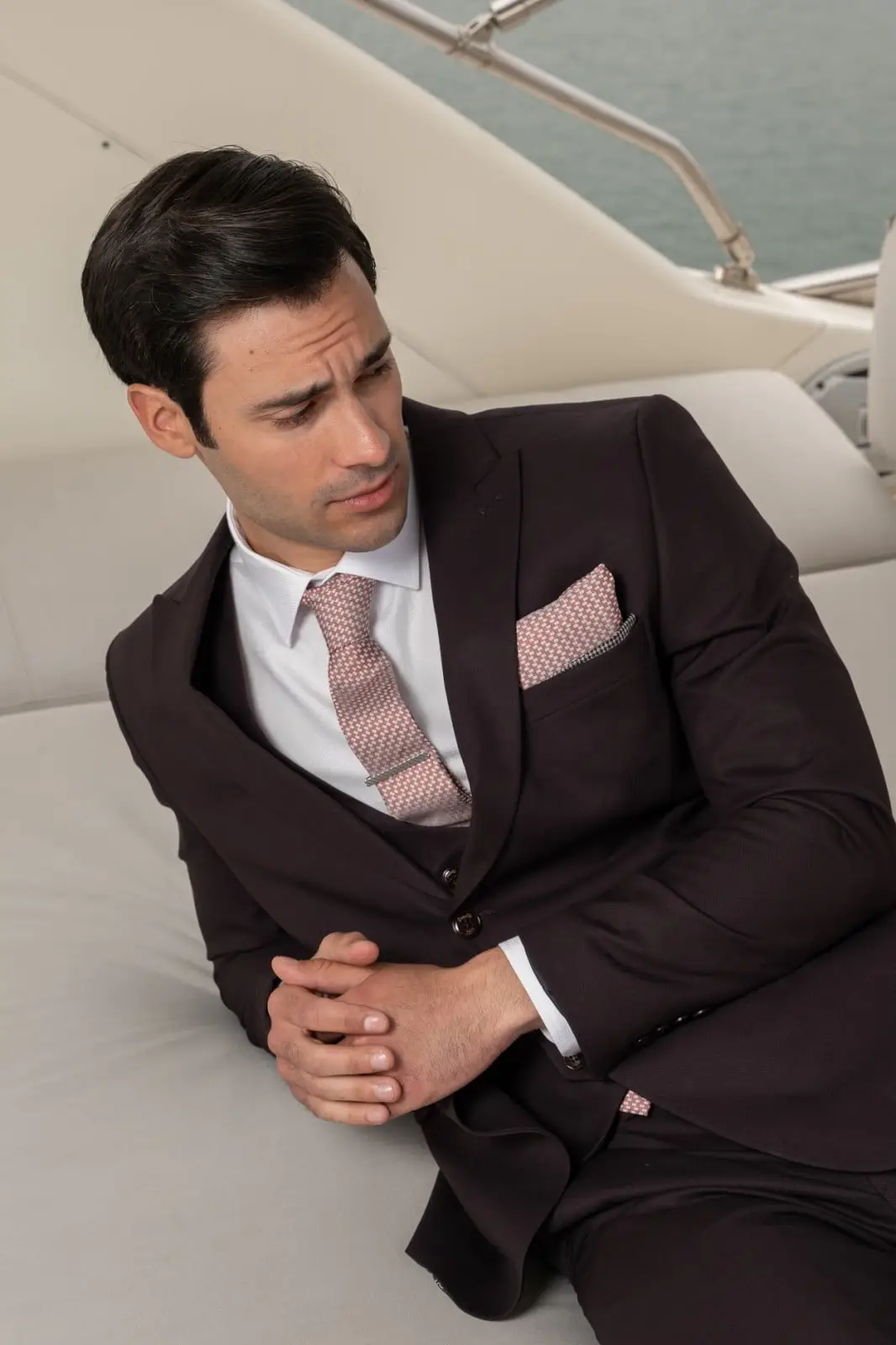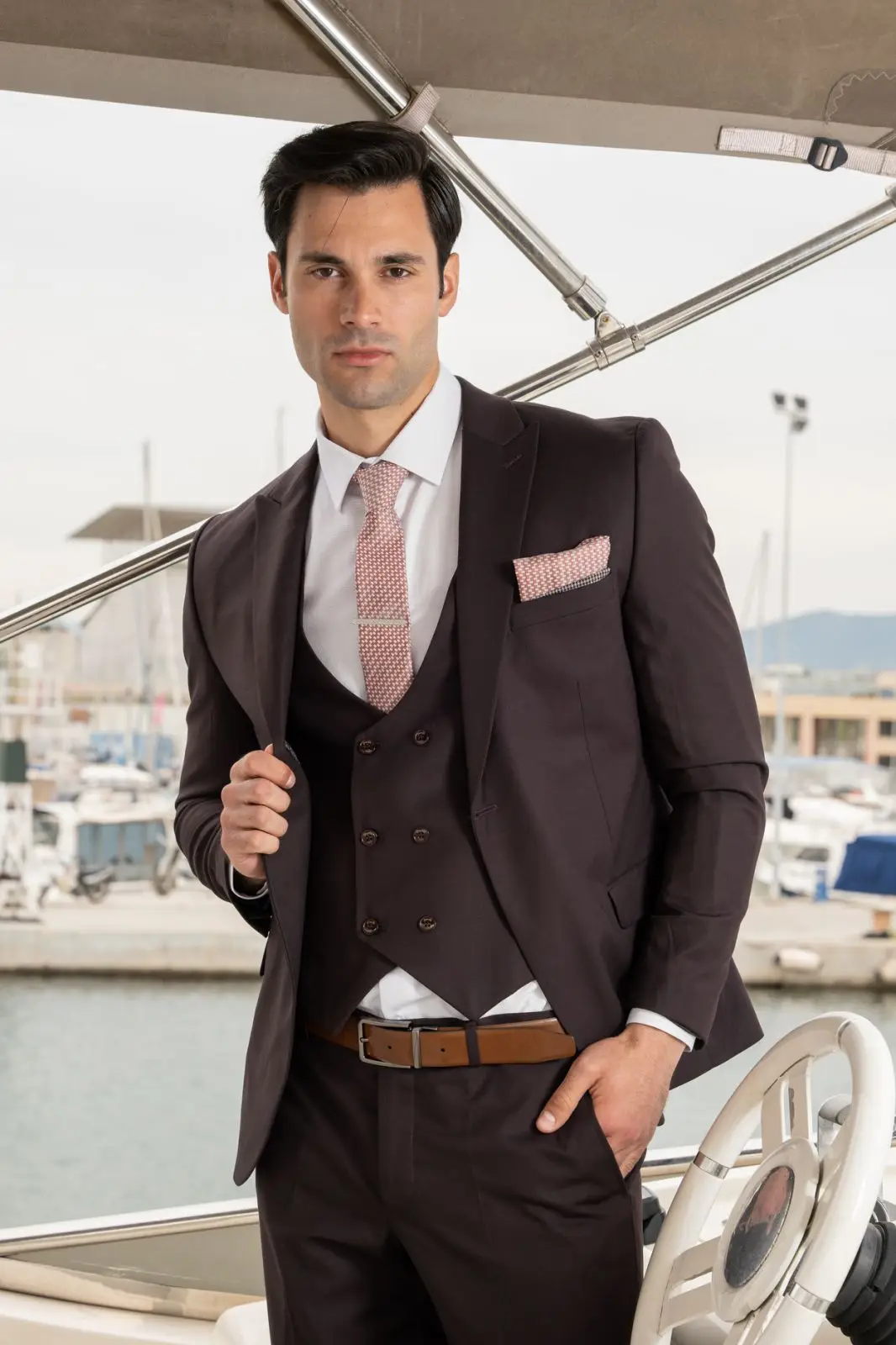 Men's Bordeaux Suit with Vest Senso Diverso S24-45
