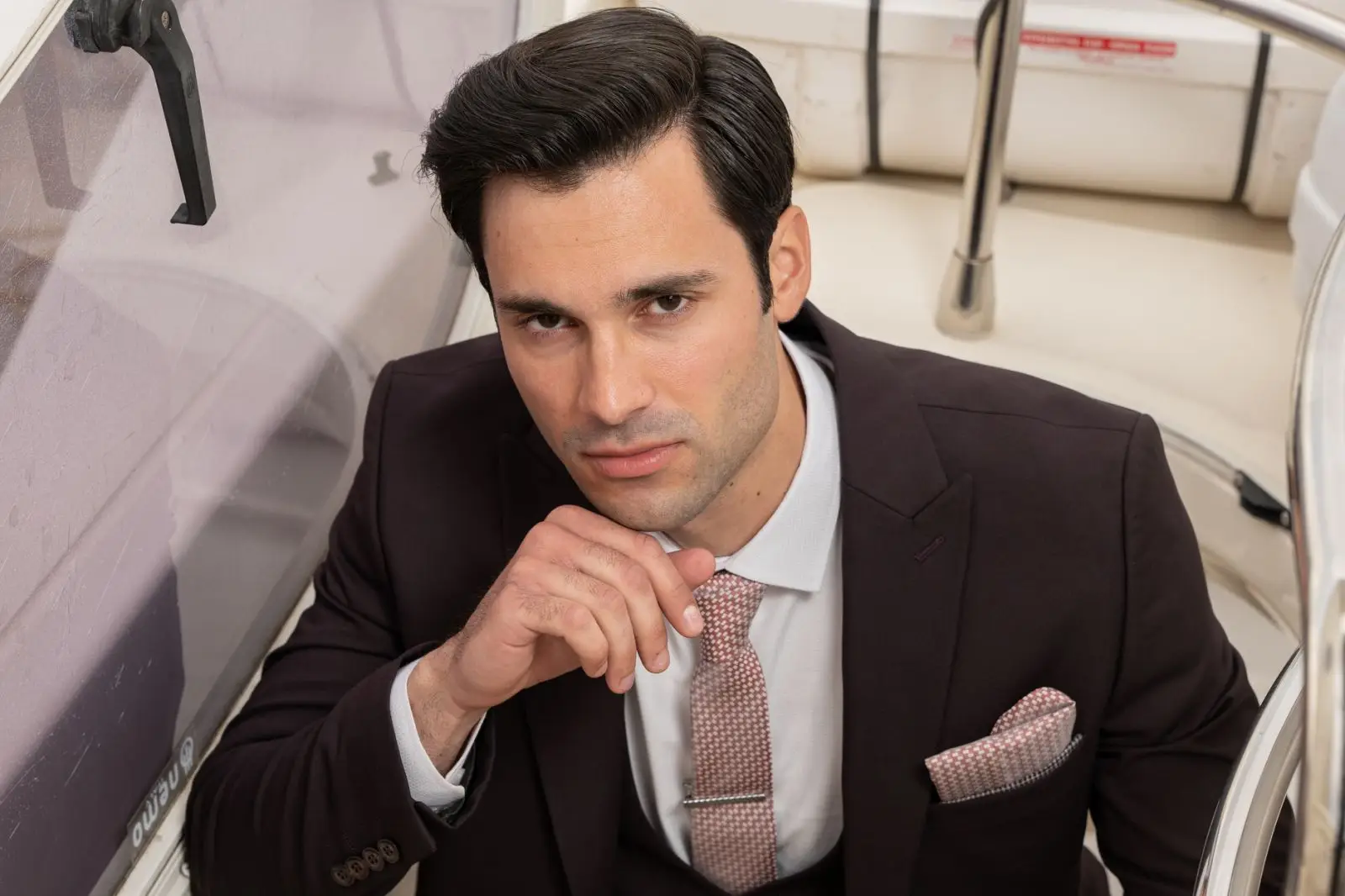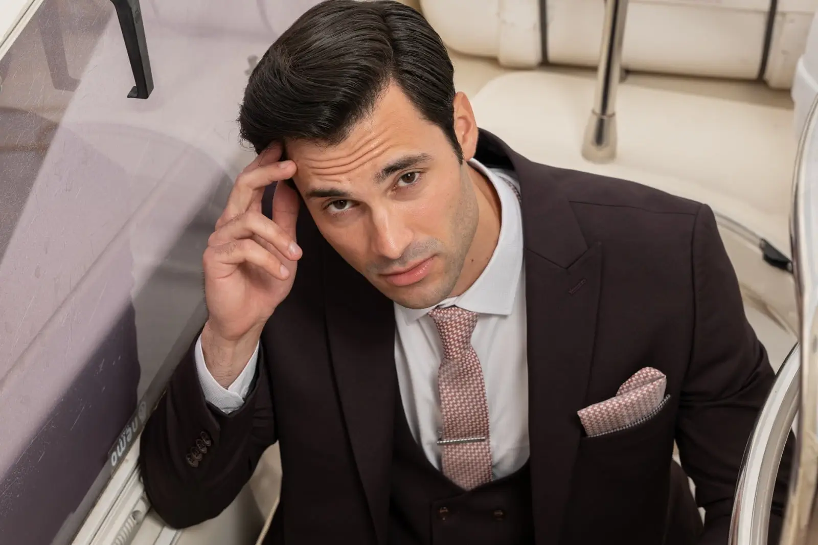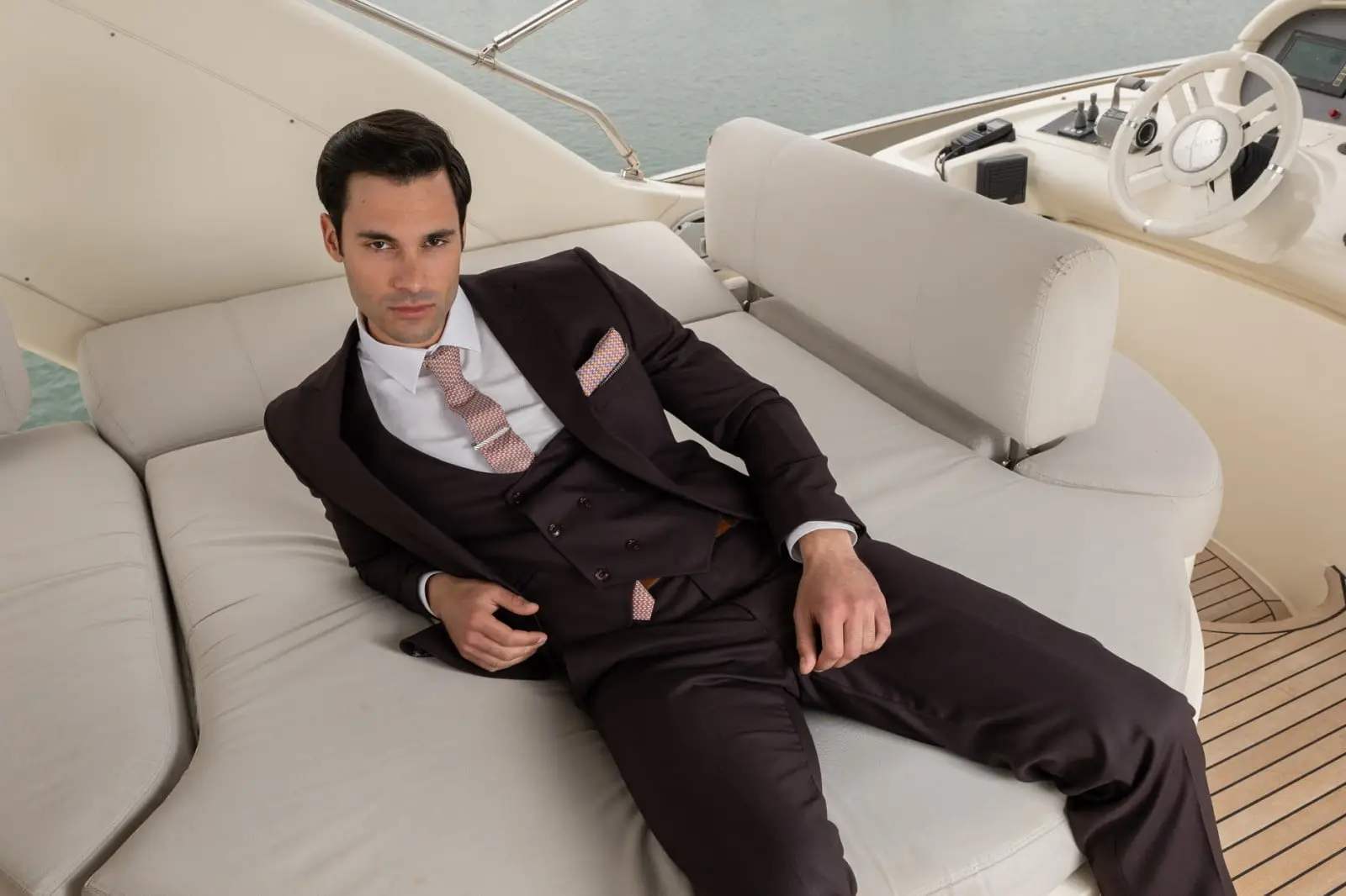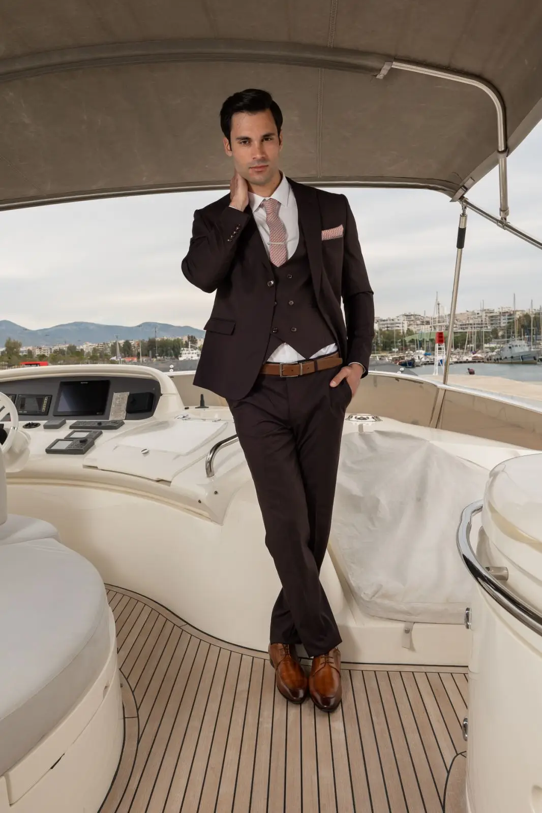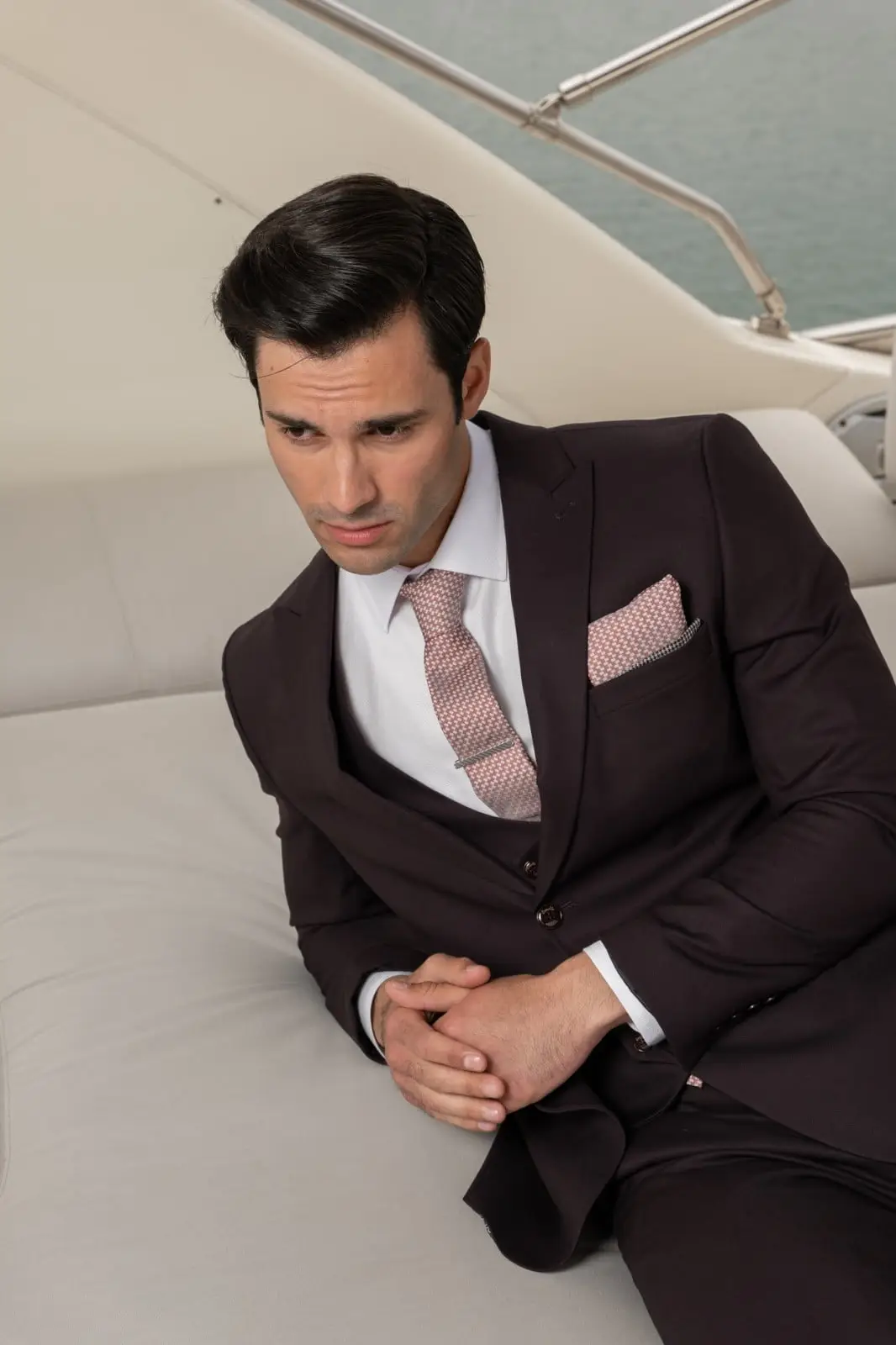 Men's Bordeaux Suit with Vest Senso Diverso S24-45