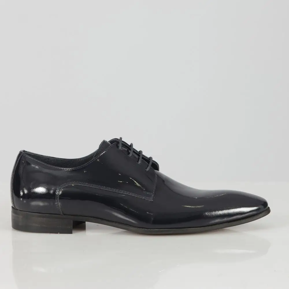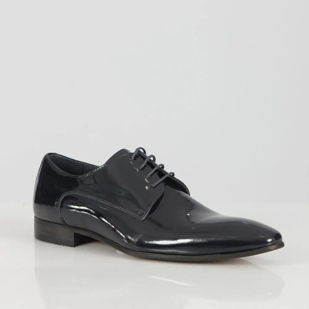 Men's Leather Derby Shoes Black Blue Patent Leather Derby Shoes 150115-1