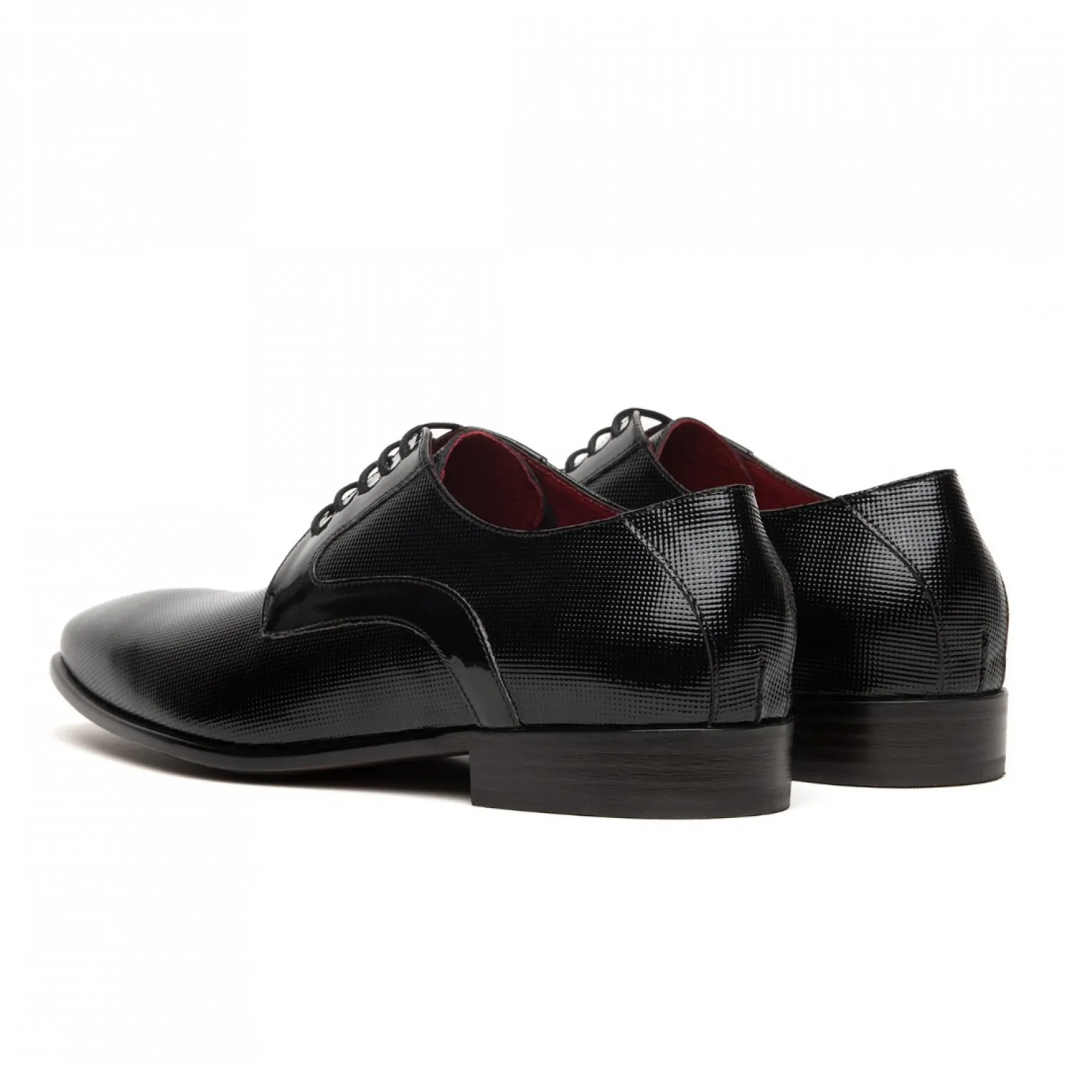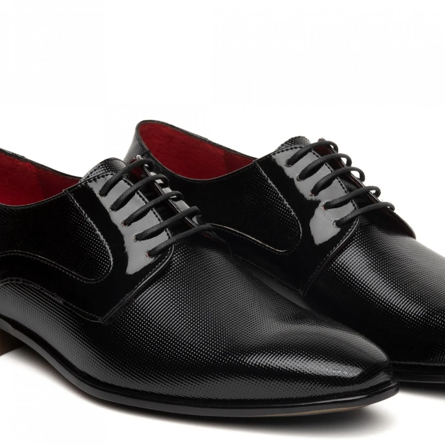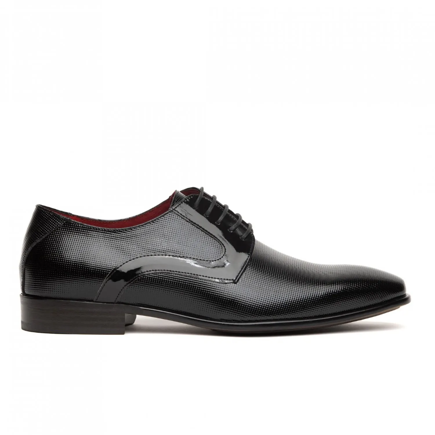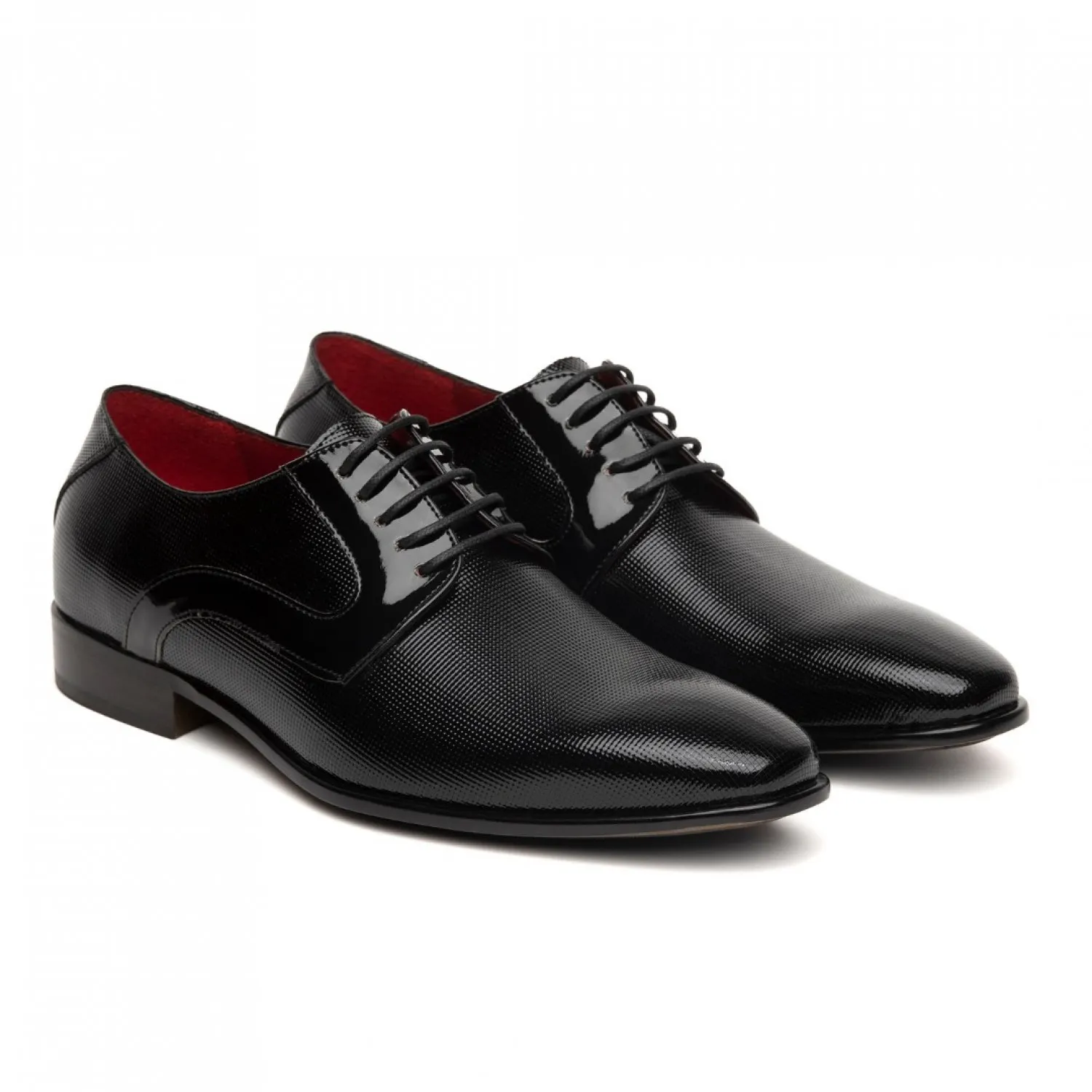 Ανδρικά Luxury παπούτσια Raymont. Κατασκευασμένο από ιταλικά δέρματα με δερμάτινη φόδρα και συνθετική σόλα. Διατίθεται σε χρώμα Μαύρο Λουστρίνι.