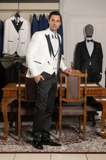 Ανδρικό Κοστούμι Λευκό Μαύρο Πέτο Στενή Γραμμή Kapralos Noble 3505