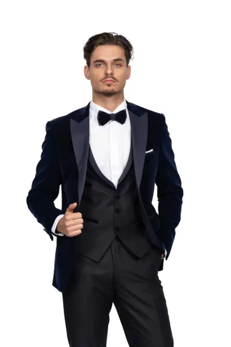 Ανδρικό Γαμπριάτικο Κοστούμι Μπλε Slim Fit Με Αφαιρούμενα Πέτα SU-14