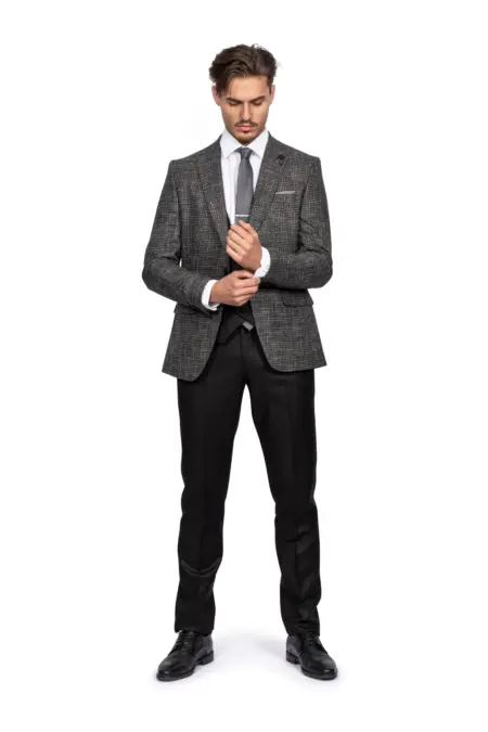 Κοστούμι Ανδρικό Καρό Με Μαύρο Γιλέκο 163