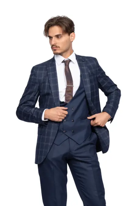 Κοστούμι Ανδρικό Καρό Μπλε Με Μπλε Γιλέκο 160