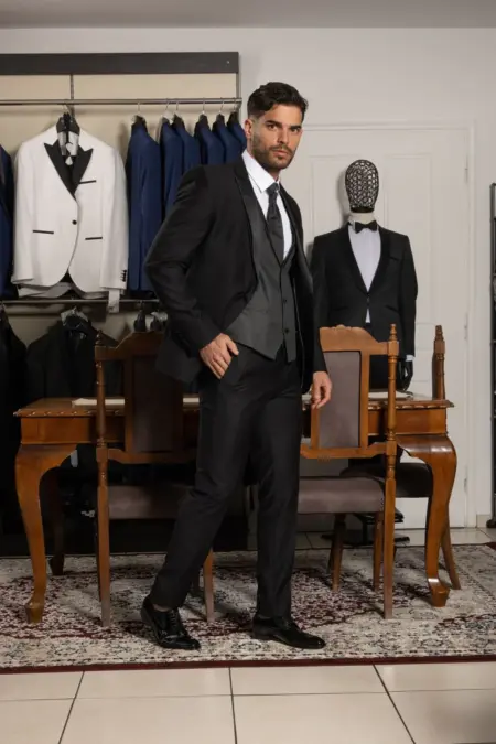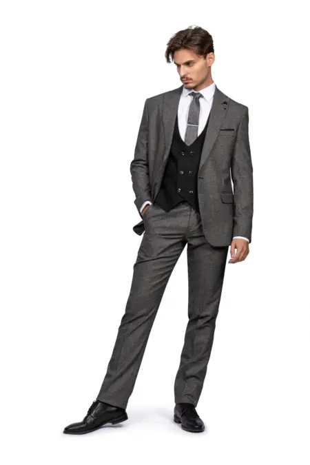 Κοστούμι Ανδρικό Γκρι Με Μαύρο Γιλέκο 154
