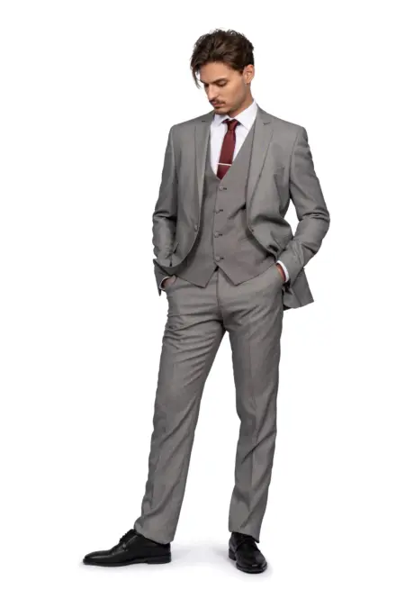 Κοστούμι slim fit με γιλέκο σε γκρι χρώμα