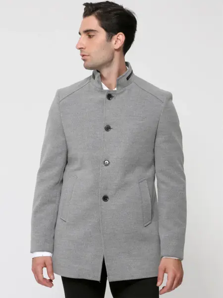 Παλτό Μαύρο Πικέ Όρθιος Γιακάς 8431