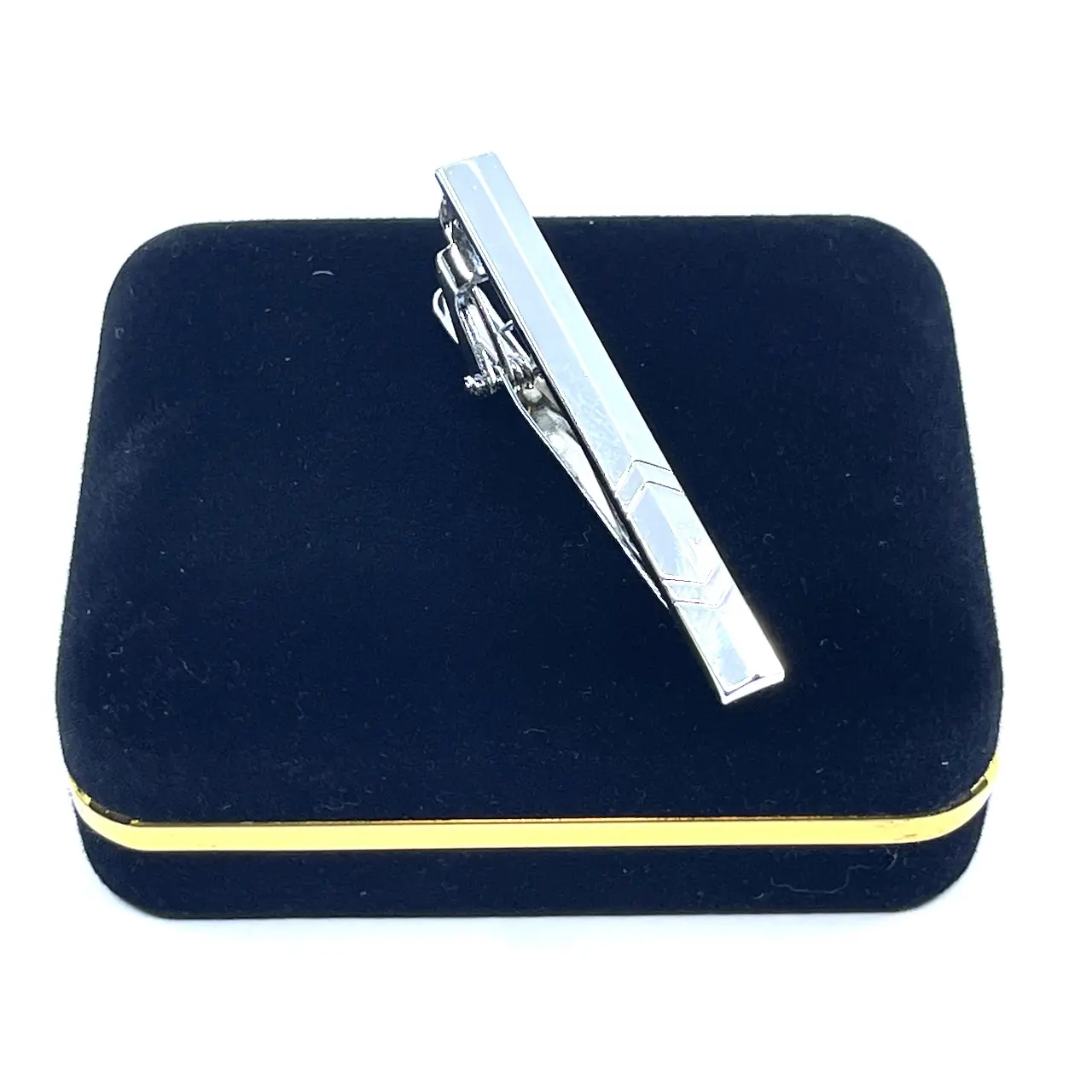 Clips γραβάτας χρώμα Ασημί, σε βελούδινο κουτάκι πολυτελείας.