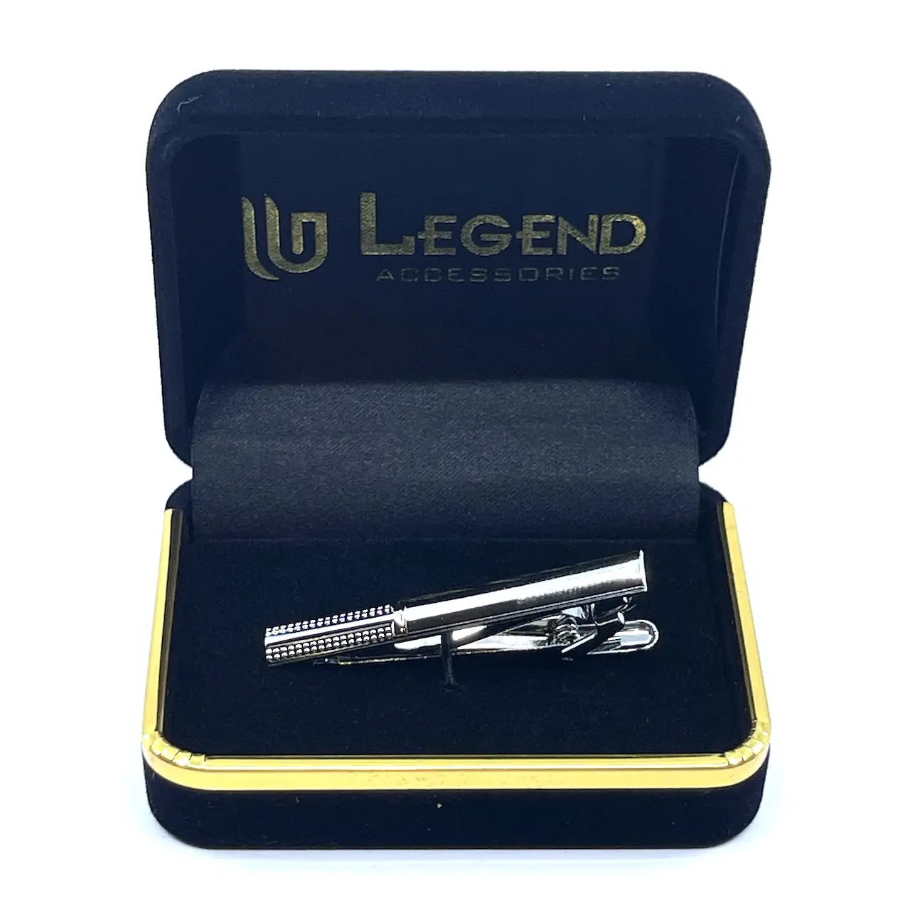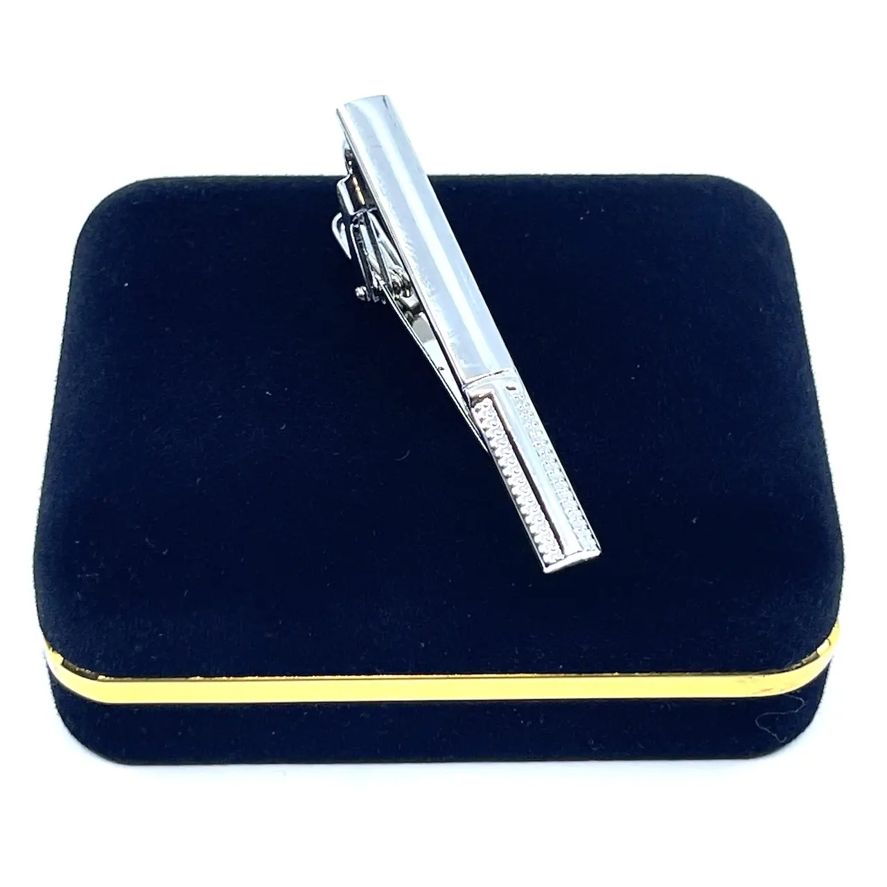 Clips γραβάτας χρώμα Ασημί, σε βελούδινο κουτάκι πολυτελείας.