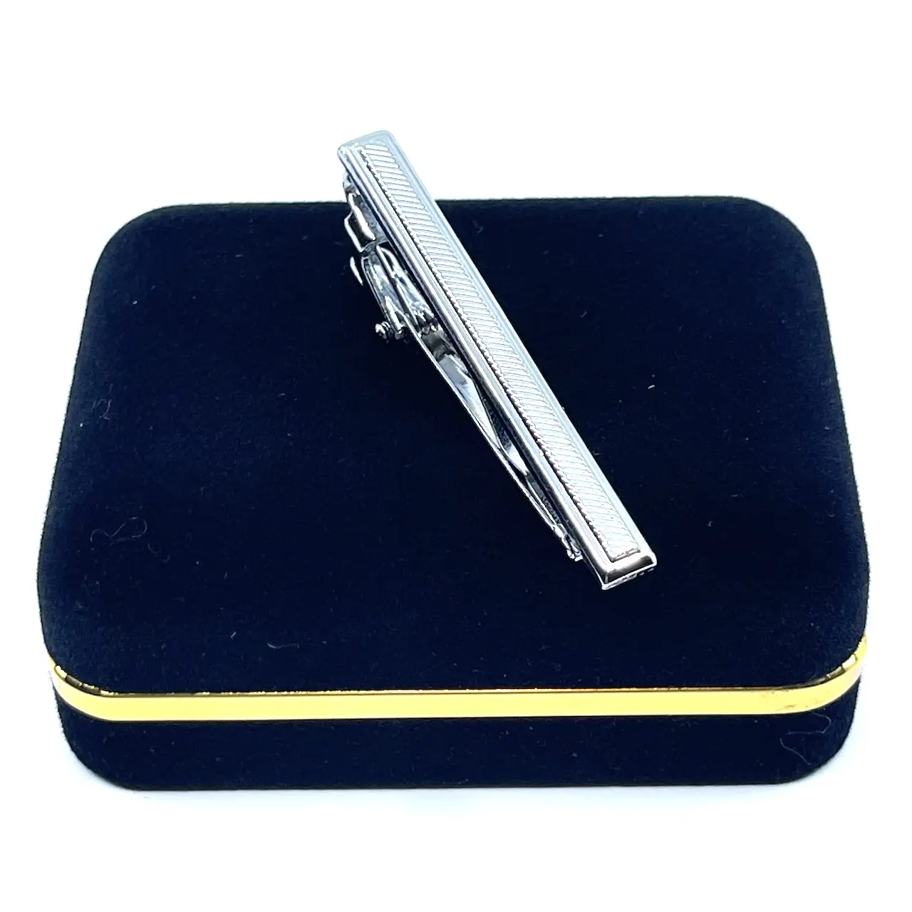 Clips γραβάτας χρώμα Ασημί, σε βελούδινο κουτάκι πολυτελείας.