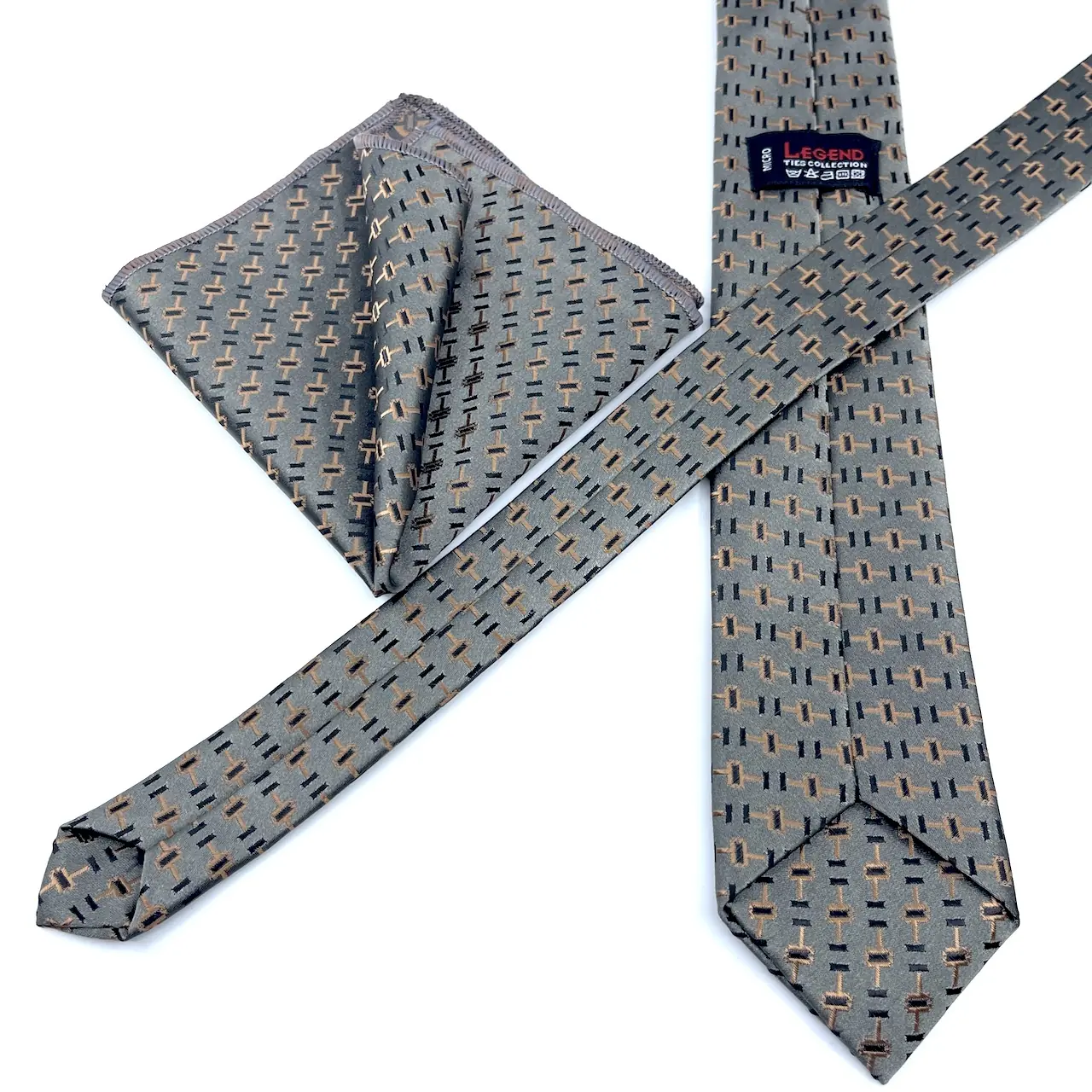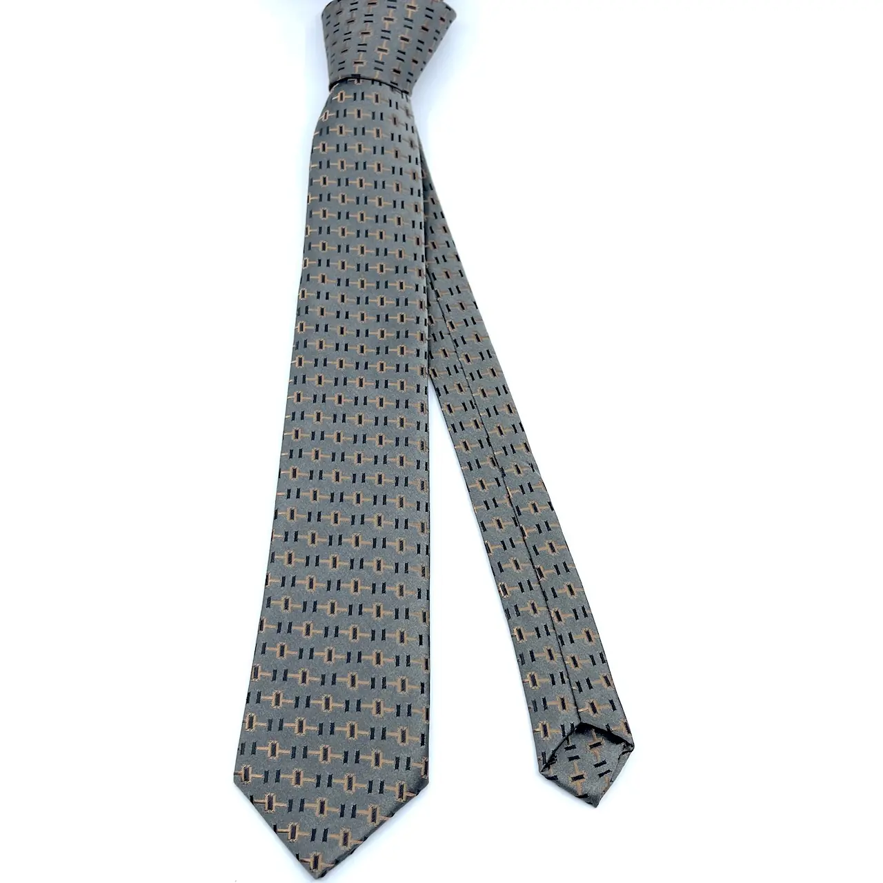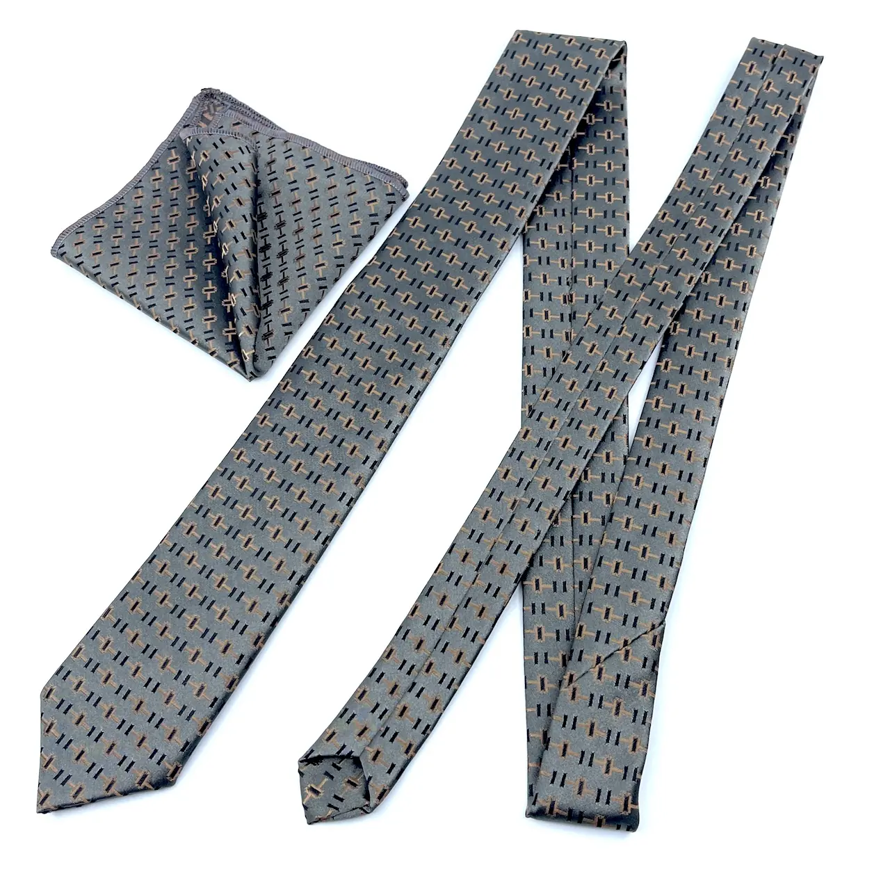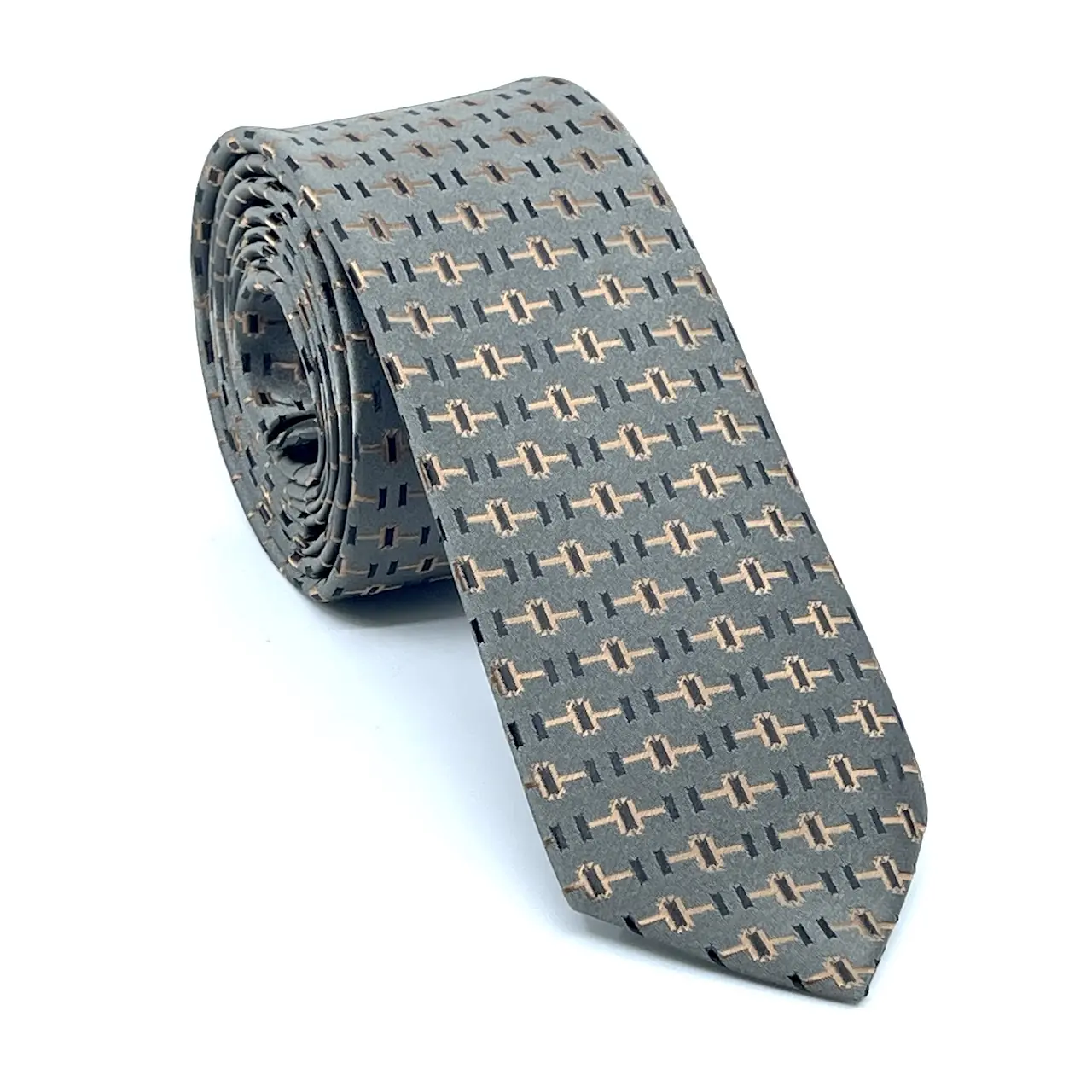 Σχεδιαστική γραβάτα με απαλό ύφασμα microfiber, σε Γκρί με Μπέζ σχέδιο.
