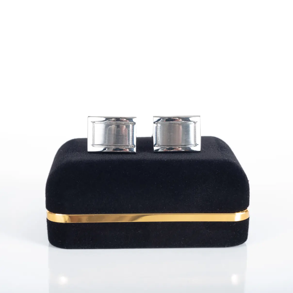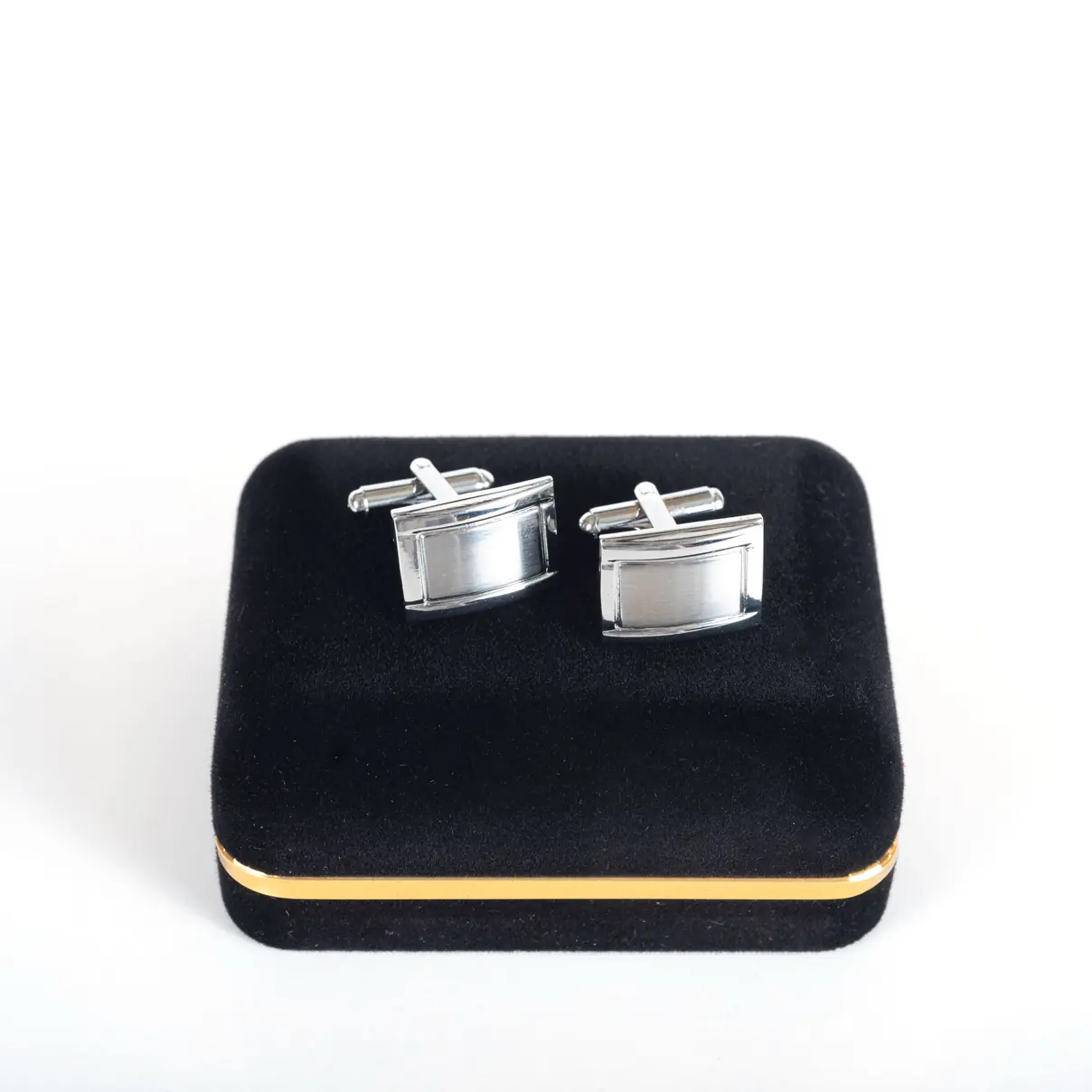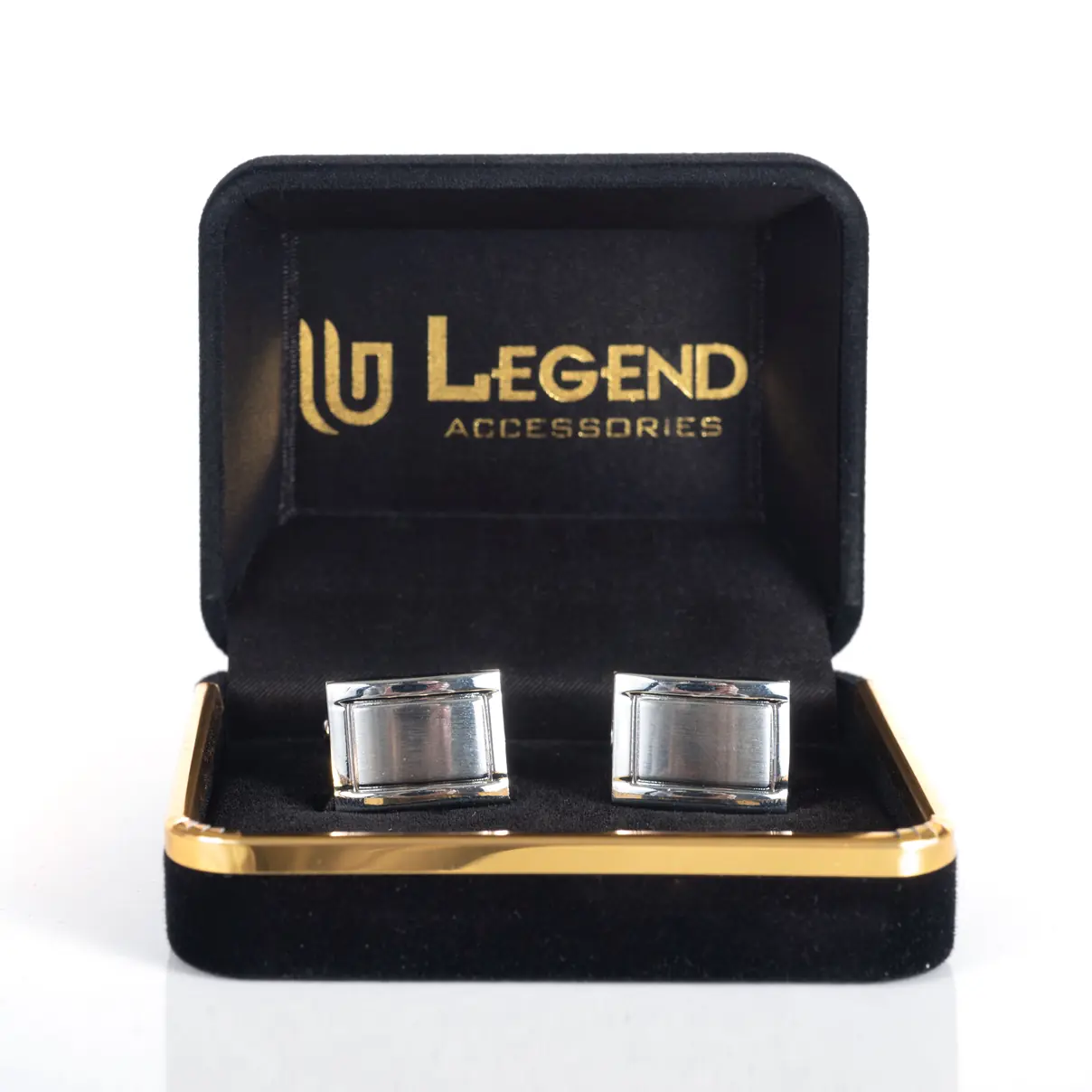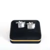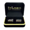 Κλασσικά μεταλλικά μανικετόκουμπα Legend Accessories, συσκευασμένα σε βελούδινο κουτάκι πολυτελείας.