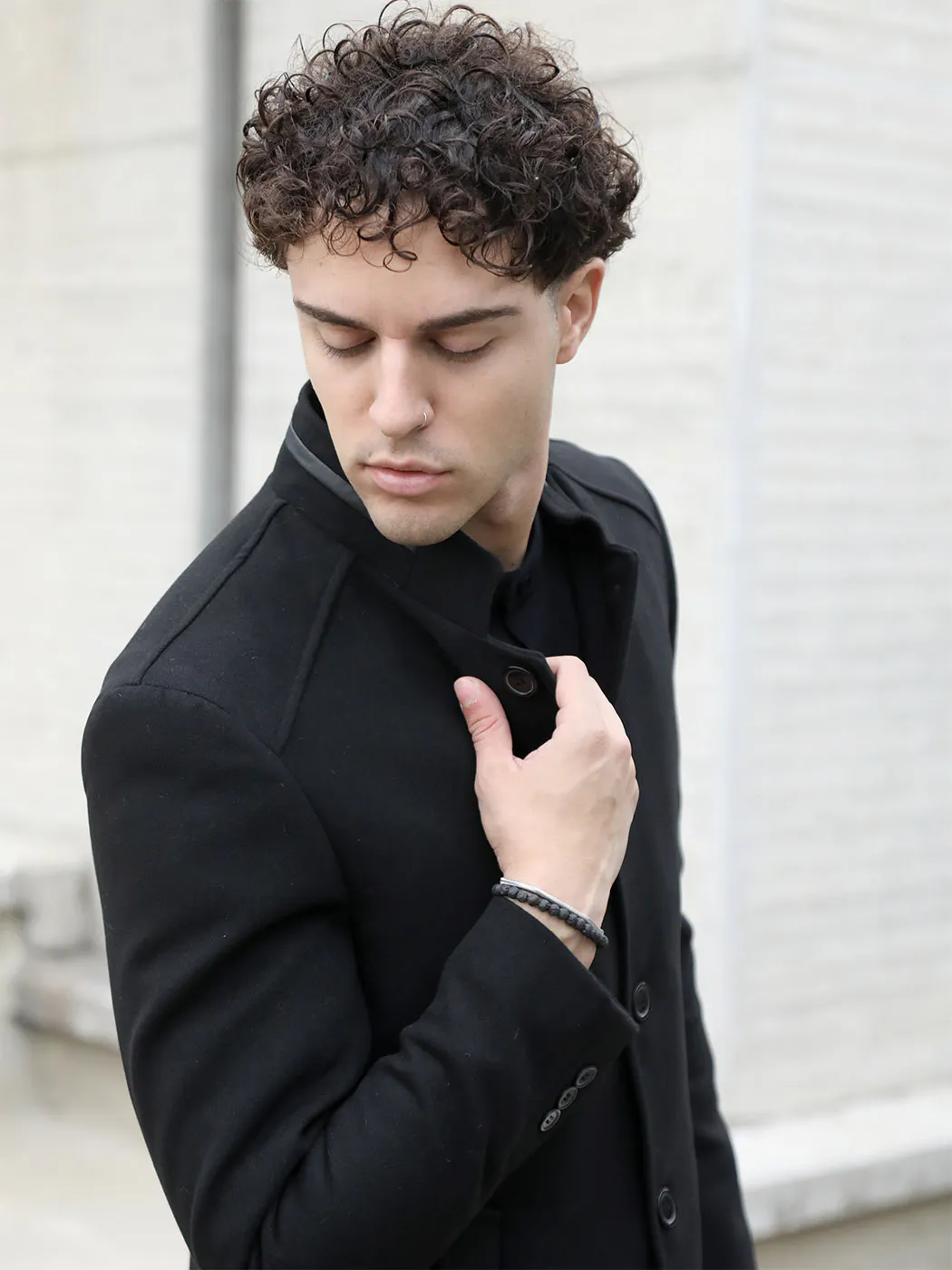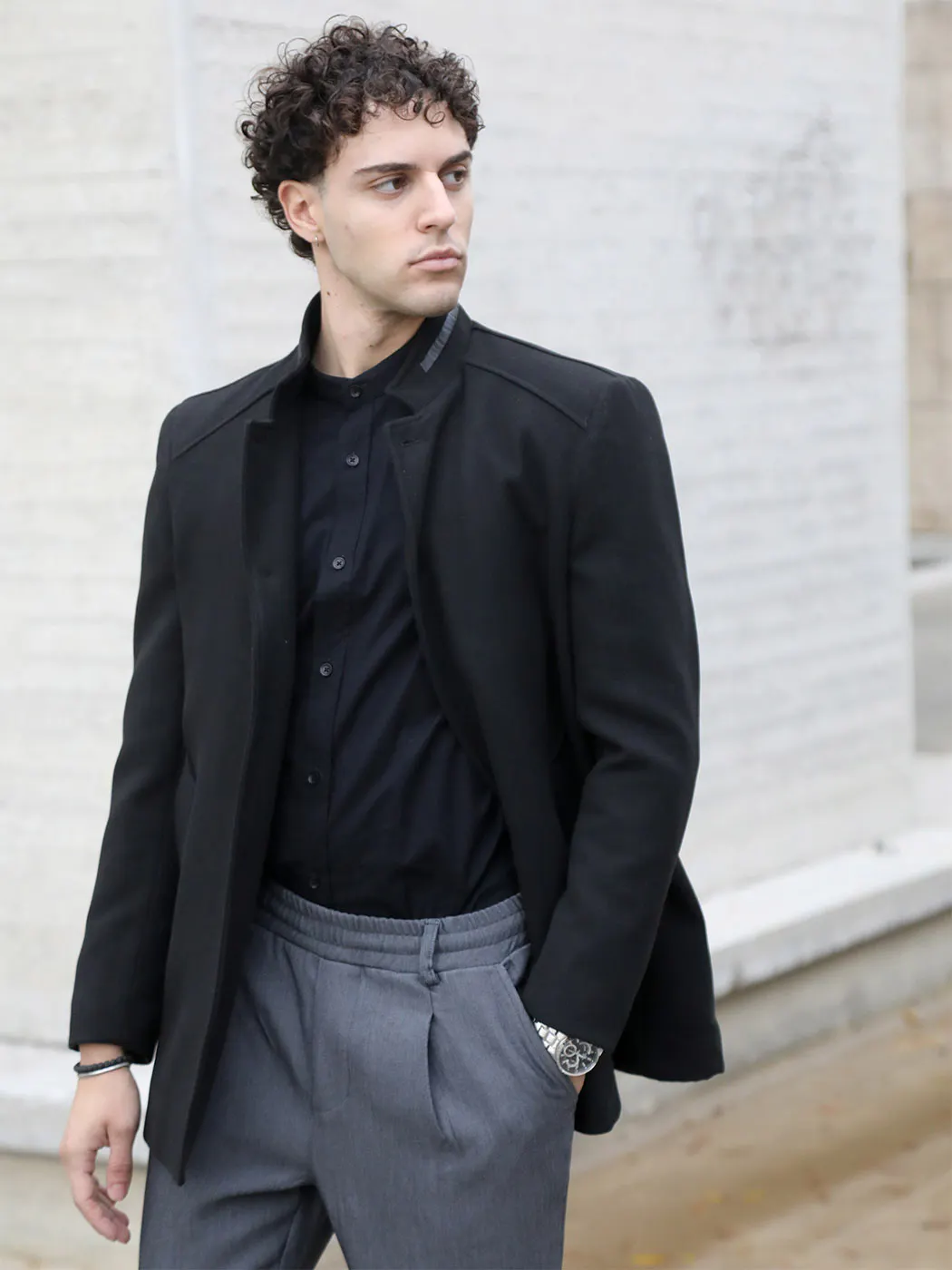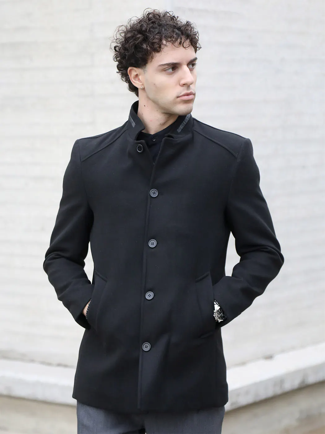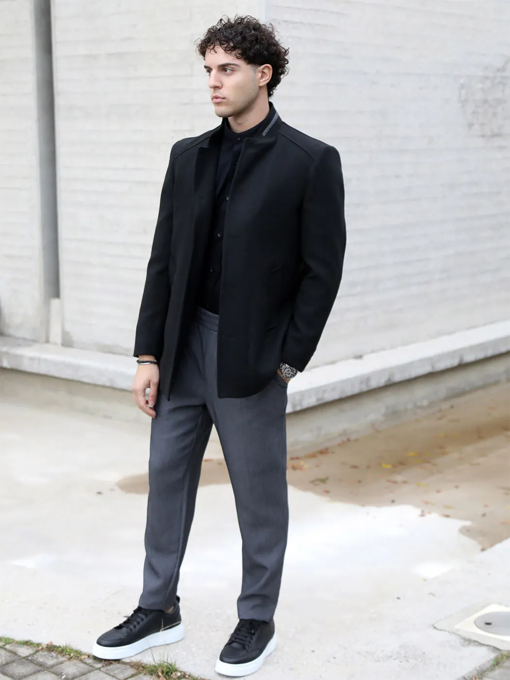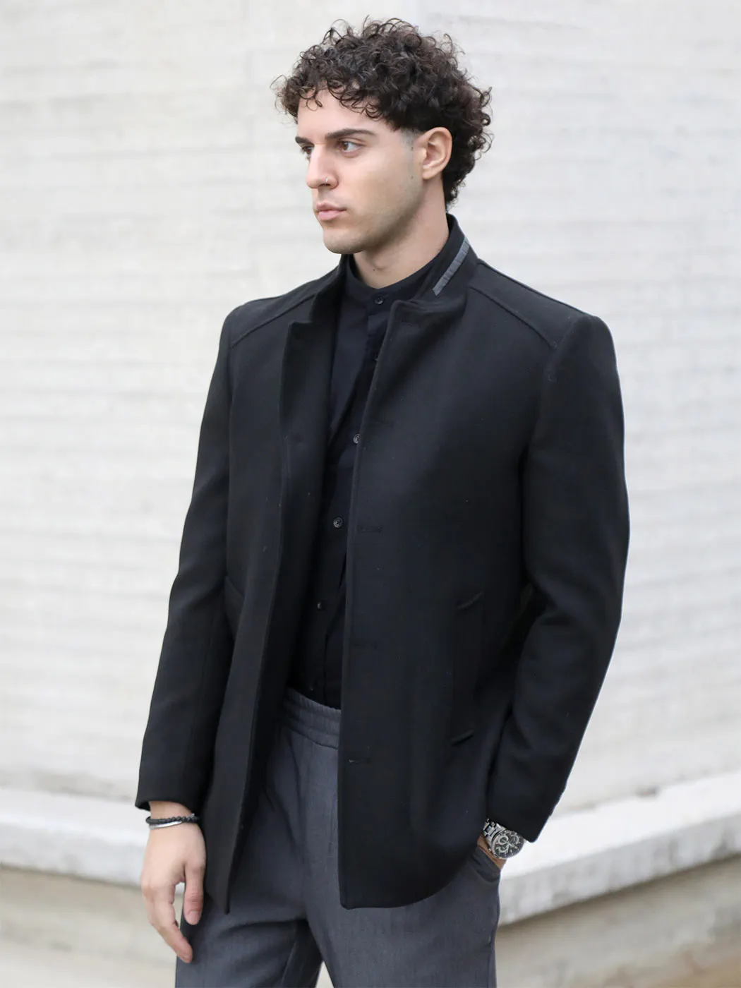 Ανδρικό Παλτό σε μαύρο χρώμα από ένα καταπληκτικό ύφασμα με τέλεια υφή και εξαιρετικό στρώσιμο στον κάθε άνδρα.
