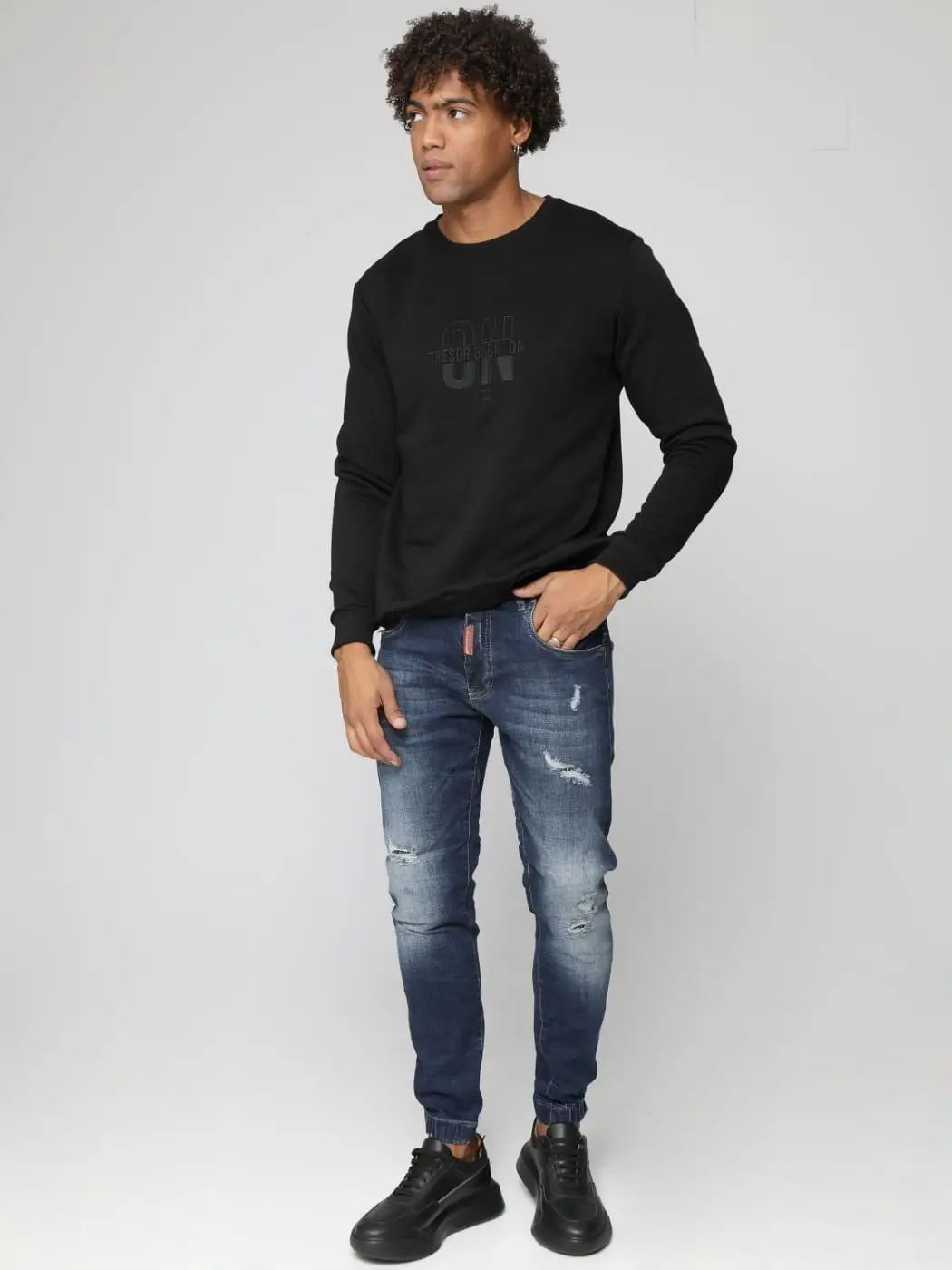 Ανδρικό παντελόνι jean LONDON ελαστικό με λάστιχο στο κάτω μέρος. Διαθέτει κλείσιμο με φερμουάρ και κουμπί. Ένα jean που μπορεί να φορεθεί από το πρωί έως το βράδυ. Σύνθεση: 97% Cottton, 3% Lycra
