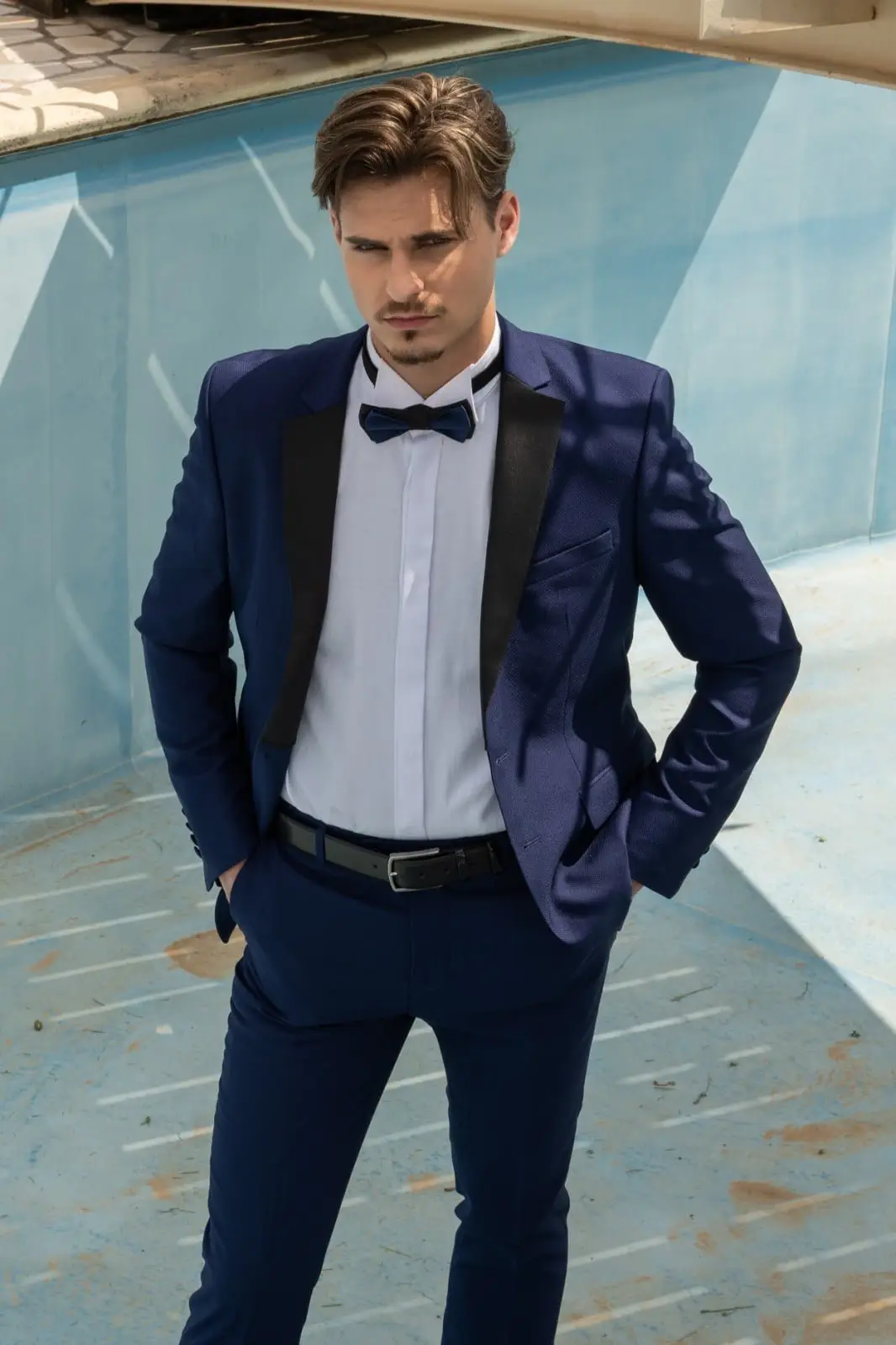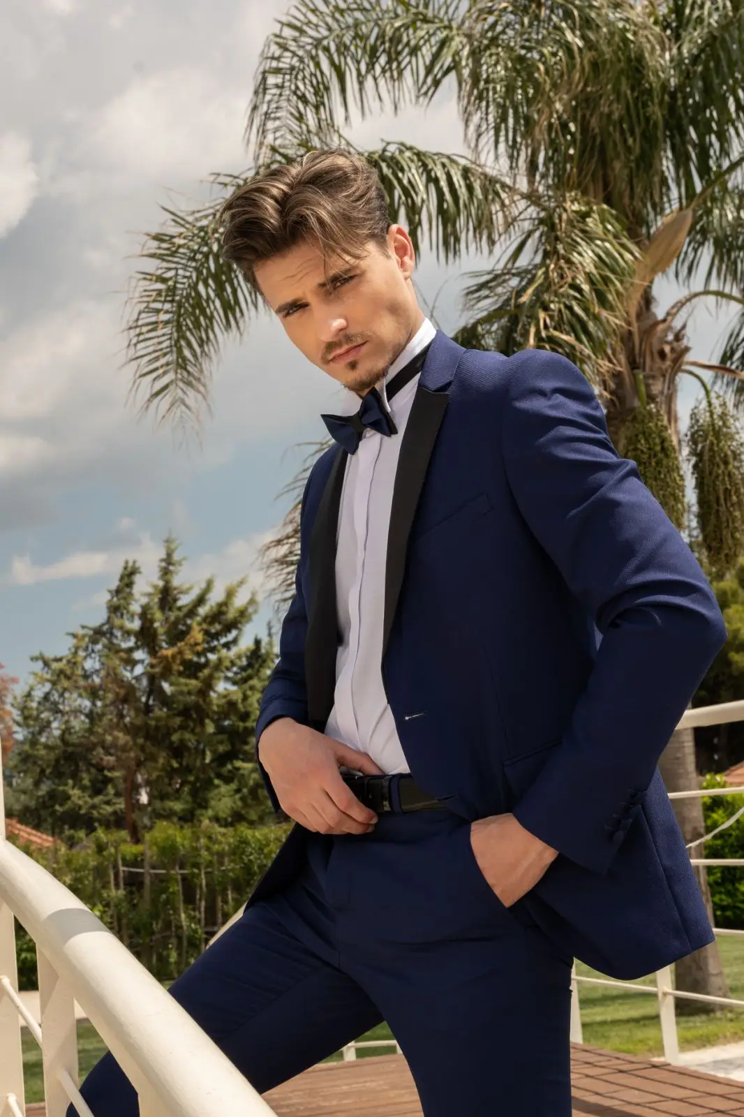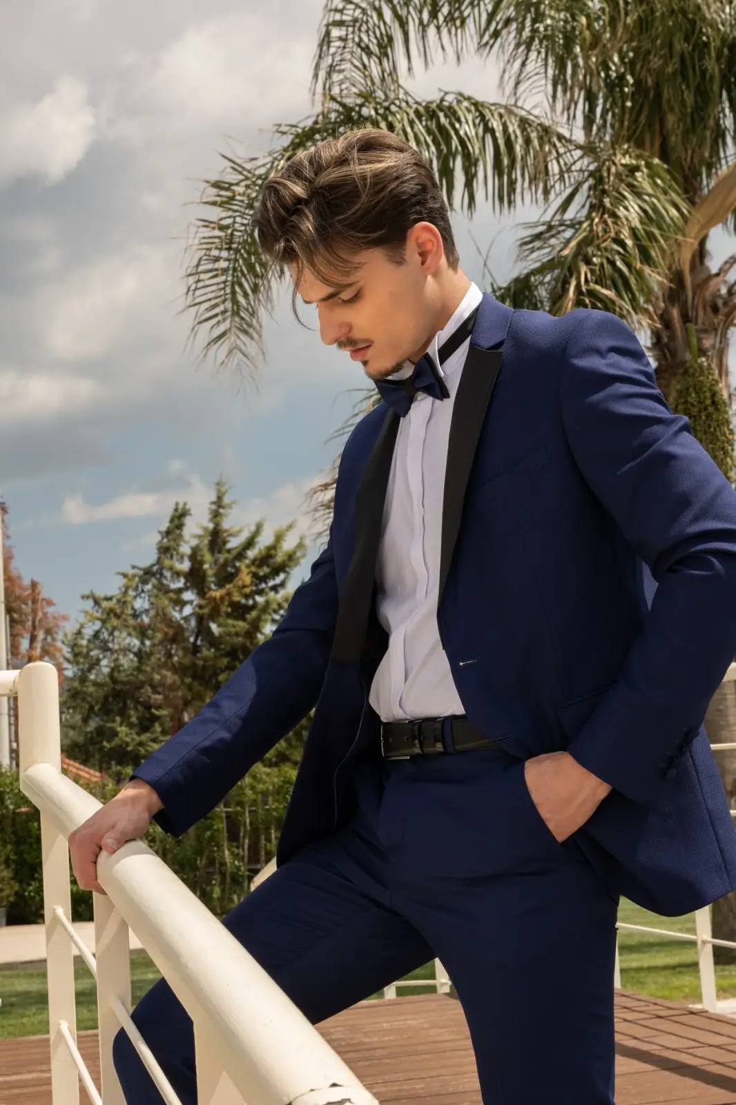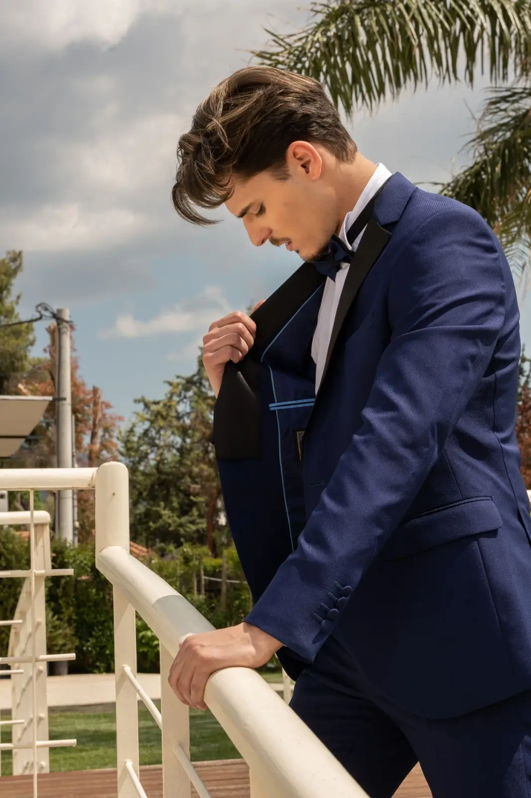 Ανδρικό Γαμπριάτικο Κοστούμι Μπλε Slim Fit Με Αφαιρούμενα Πέτα SU-14