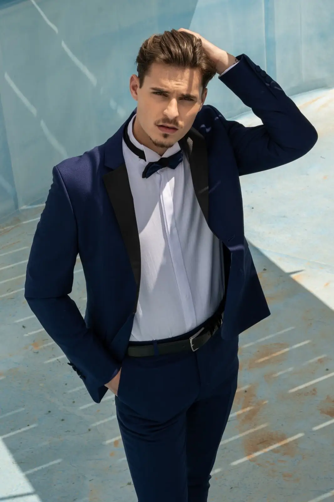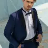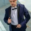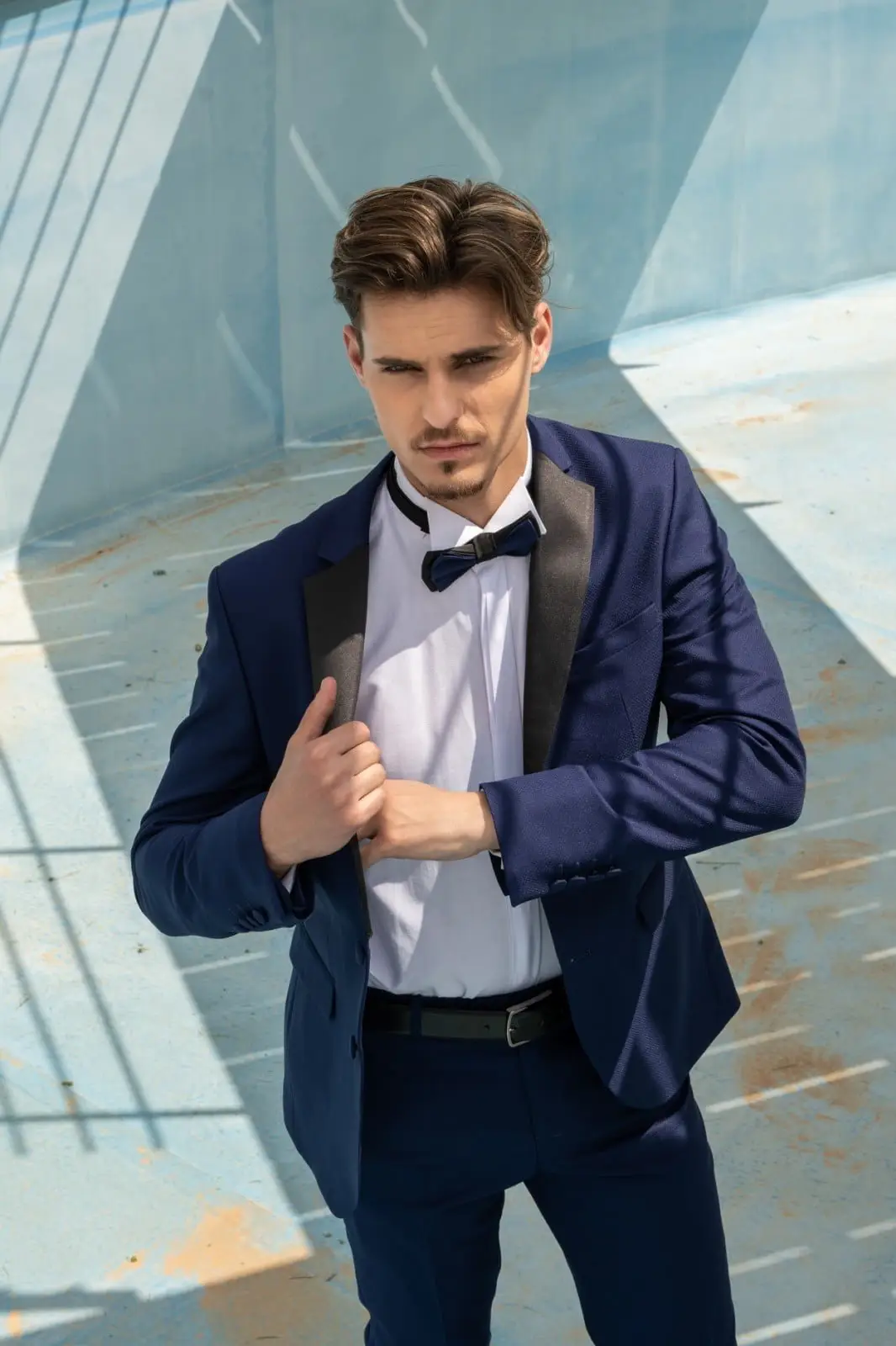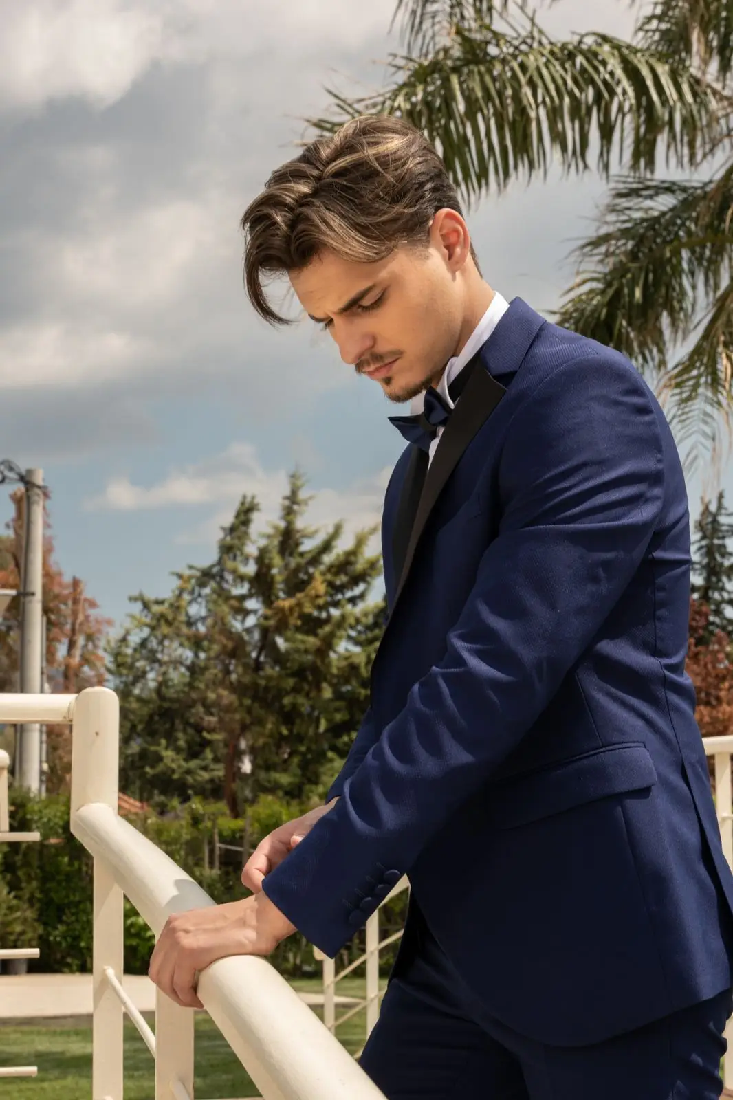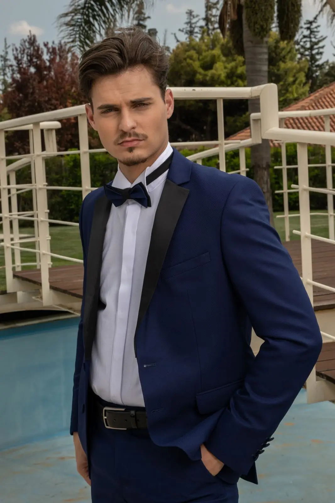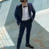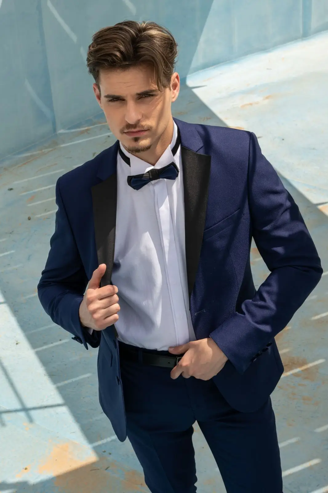 Ανδρικό Γαμπριάτικο Κοστούμι Μπλε Slim Fit Με Αφαιρούμενα Πέτα SU-14